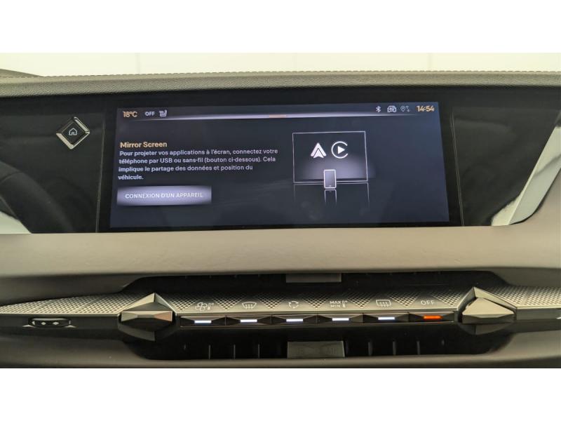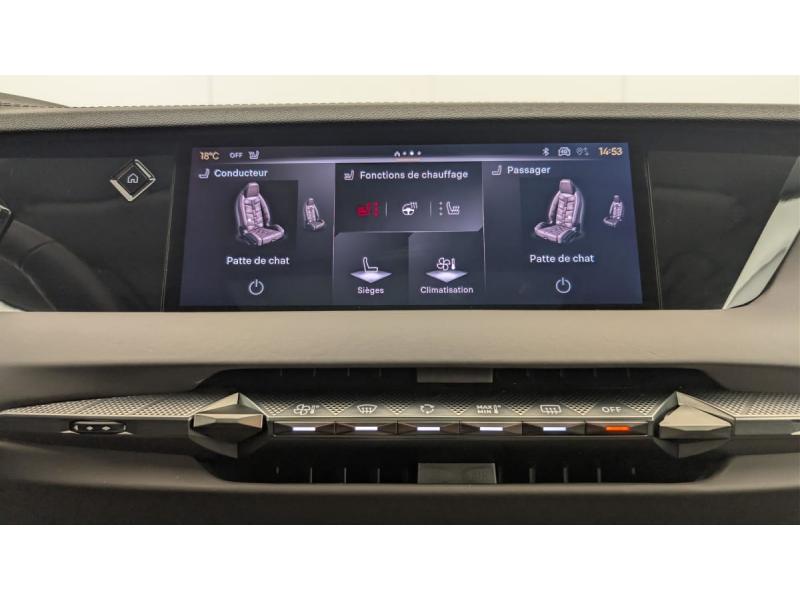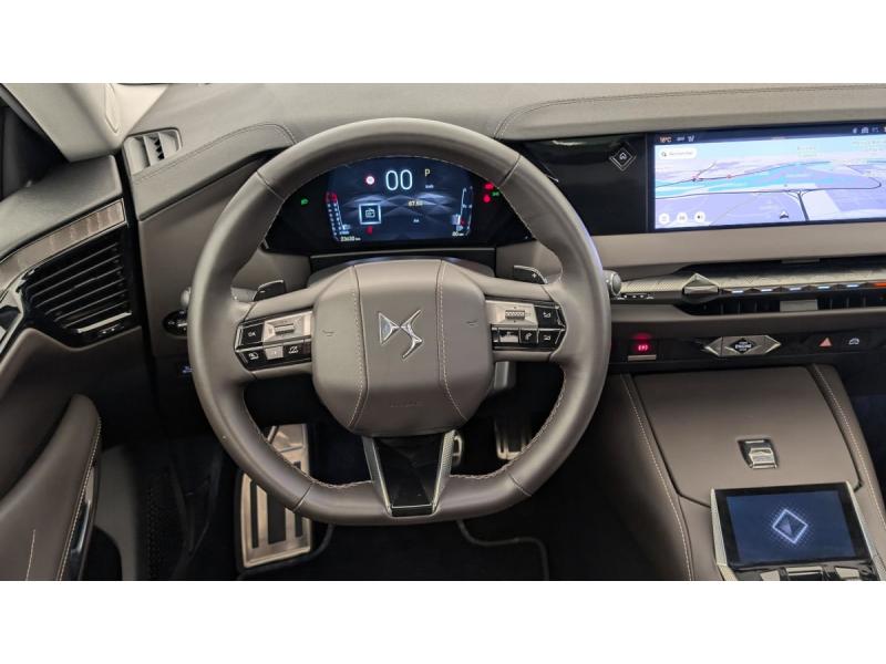 ABS avec répartiteur électronique de freinage (REF) et Aide au Freinage d'Urgence (AFU) + Aide au démarrage en penteAccès et démarrage mains libres ProximityAccoudoir central AR avec trappe à skiAide au stationnement AV/AR et 360 VisionAirbags frontaux (passager déconnectable), latéraux AV, rideaux aux places AV/AR et central entre les places AVAllumage automatique des feuxBanquette AR 2/3 - 1/3 avec 3 appuie-têteChargeur sans fil pour smartphoneClimatisation automatique bi-zoneCombiné numérique 7"Commutation automatique des feuxCondamnation automatique des portes et du coffre en roulantConsole centrale avec rangement ferméContrôle dynamique de stabilité (ESP) avec antipatinage des roues (ASR) + Contrôle de stabilité de l'attelageDétection de sous-gonflageDS Drive Assist et Pack Détection Trafic AR : Lane Positioning Assist Surveillance d'angles morts longue distance Alerte de Trafic AR Freinage d'urgence automatique piloté par caméra et radar Adaptive Cruise Control Stop&GoDS e-toggle (Sélecteur de vitesses)DS EXTENDED HEAD UP DISPLAYDS IRIS SYSTEMDS MATRIX LED VISIONEclairage d'ambiance à LEDEclairage de boîte à gants, d'accoudoir central AV et de coffre à LEDEclairage de cave à pieds à LEDEcran tactile capacitif 10" HDEssuie-vitre AV à déclenchement et cadencement automatiques + Buses de lavageFeux AR Full LED effet 3D avec traitement écaillesFixations ISOFIX à la place passager AV et aux places latérales ARFrein de stationnement électrique automatiqueFreinage d'urgence automatique piloté par caméra et radarHayon motorisé avec accès bras chargésJantes alliage 19" SEVILLAKit de dépannage provisoire de pneumatiquesLève-vitres AV/AR électriques, séquentiels et antipincementMirror Screen sans fil via Wifi Compatible Apple CarPlay et Android AutoPédalier en aluminiumPack Sièges Electriques avec sièges AV chauffants, massants et ventilés : Sièges AV avec réglages lombaires électriques Sièges AV chauffants Sièges AV massants et ventilés Siège conducteur avec nez de coussin réglable Si&ePalettes au volantPare-brise teinté acoustiquePare-soleil avec miroirs de courtoisie occultables éclairés à LEDRétroviseur intérieur électrochrome sans cadreRétroviseurs extérieurs électriques, dégivrants, rabattables électriquement Avec éclairage d'accueilRadio numérique terrestre (DAB) Inclut le BluetoothReconnaissance des panneaux de vitesse et préconisationSellerie en Cuir Nappa Brun Criollo confection BraceletSOSToit ouvrant électrique Entrebaillant, ouvrant, occulteur manuelVitres AR et lunette AR surteintéesVitres latérales feuilletées acoustiquesVolant réglable en hauteur et profondeur