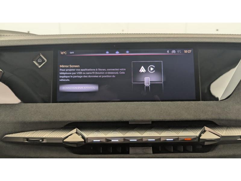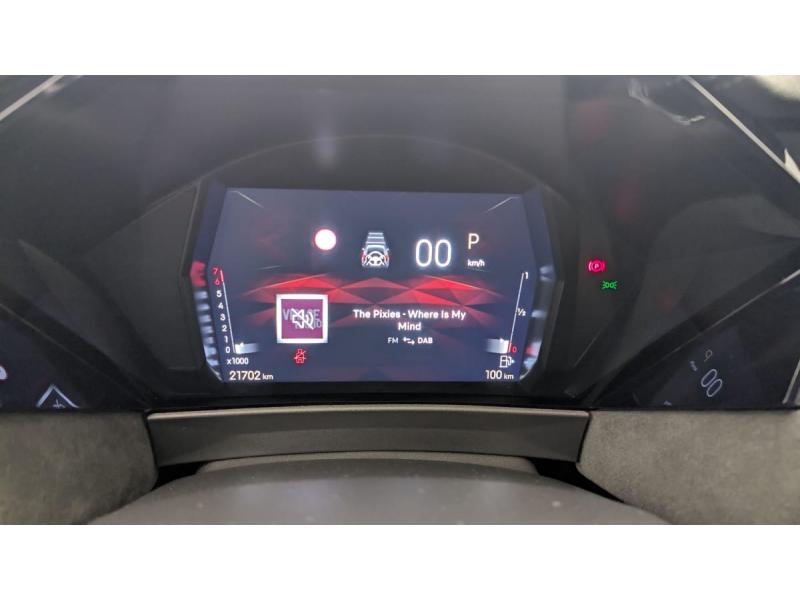 ABS avec répartiteur électronique de freinage (REF) et Aide au Freinage d'Urgence (AFU) + Aide au démarrage en penteAccès et démarrage mains libres ProximityAccoudoir central AR avec 2 porte-gobeletsAdaptive Cruise Control Stop&GoAide au stationnement AV/AR avec Caméra de reculAirbags frontaux (passager déconnectable), latéraux AV, rideaux aux places AV/AR et central entre les places AVAlerte Attention ConducteurAlerte de franchissement involontaire de ligneAllumage automatique des feuxAvertisseur de risque de collisionBanquette AR 2/3 - 1/3 avec 3 appuie-têteBoîte à gantsClimatisation automatique bi-zoneCombiné numérique 7"Condamnation automatique des portes et du coffre en roulantContrôle dynamique de stabilité (ESP) avec antipatinage des roues (ASR) + Contrôle de stabilité de l'attelageDétection de sous-gonflageDS EXTENDED HEAD UP DISPLAYDS IRIS SYSTEMDS MATRIX LED VISIONEclairage d'ambiance à LEDEclairage de boîte à gants, d'accoudoir central AV et de coffre à LEDEclairage de cave à pieds à LEDEcran tactile capacitif 10" HDEssuie-vitre AV à déclenchement et cadencement automatiques + Buses de lavageFeux AR Full LED effet 3D avec traitement écaillesFixations ISOFIX à la place passager AV et aux places latérales ARFrein de stationnement électrique automatiqueFreinage d'urgence automatique piloté par caméra et radarIntérieur Tissu Tressé Basalte avec Alcantara : Planche de bord en alcantara Panneaux de portes en alcantara Console centrale en alcantara Sellerie en Tissu Tressé Basalte avec Alcantara et toile DS Décors de panneaux de porte Chrome guilloché Volant en cuir fleurJantes alliage 19" MINNEAPOLISKit de dépannage provisoire de pneumatiquesLève-vitres AV/AR électriques, séquentiels et antipincementLunette AR chauffanteMirror Screen sans fil via Wifi Compatible Apple CarPlay et Android AutoPack Style : Pédalier en aluminium Vitres AR et lunette AR surteintéesPalettes au volantPare-brise teinté acoustiquePare-soleil avec miroirs de courtoisie occultables éclairés à LEDRétroviseur intérieur électrochrome sans cadreRétroviseurs extérieurs électriques, dégivrants, rabattables électriquement Avec éclairage d'accueilRadio numérique terrestre (DAB) Inclut le BluetoothReconnaissance étendue des panneaux de circulationReconnaissance des panneaux de vitesse et préconisationVitres AR et lunette AR surteintéesVolant réglable en hauteur et profondeur