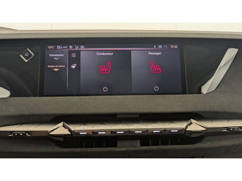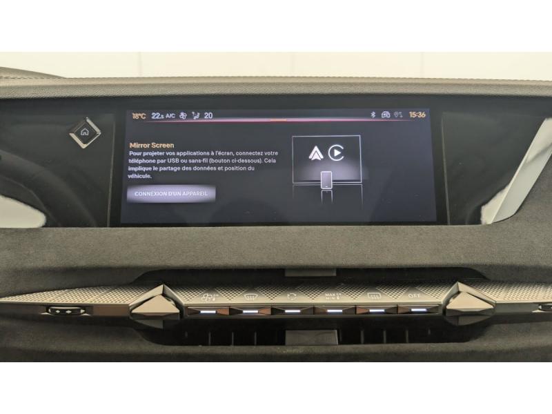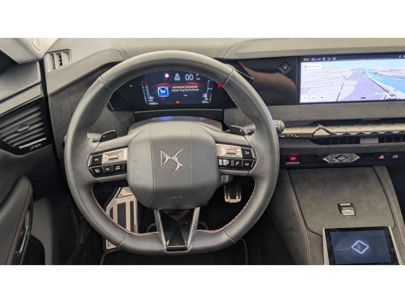 ABS avec répartiteur électronique de freinage (REF) et Aide au Freinage d'Urgence (AFU) + Aide au démarrage en penteAccès et démarrage mains libres ProximityAccoudoir central AR avec 2 porte-gobeletsAdaptive Cruise Control Stop&GoAide au stationnement AV/AR avec Caméra de reculAirbags frontaux (passager déconnectable), latéraux AV, rideaux aux places AV/AR et central entre les places AVAlerte Attention ConducteurAlerte de franchissement involontaire de ligneAllumage automatique des feuxAvertisseur de risque de collisionBanquette AR 2/3 - 1/3 avec 3 appuie-têteBoîte à gantsClimatisation automatique bi-zoneCombiné numérique 7"Condamnation automatique des portes et du coffre en roulantContrôle dynamique de stabilité (ESP) avec antipatinage des roues (ASR) + Contrôle de stabilité de l'attelageDétection de sous-gonflageDS EXTENDED HEAD UP DISPLAYDS IRIS SYSTEMDS MATRIX LED VISIONEclairage d'ambiance à LEDEclairage de boîte à gants, d'accoudoir central AV et de coffre à LEDEclairage de cave à pieds à LEDEcran tactile capacitif 10" HDEssuie-vitre AV à déclenchement et cadencement automatiques + Buses de lavageFeux AR Full LED effet 3D avec traitement écaillesFixations ISOFIX à la place passager AV et aux places latérales ARFrein de stationnement électrique automatiqueFreinage d'urgence automatique piloté par caméra et radarIntérieur Tissu Tressé Basalte avec Alcantara : Planche de bord en alcantara Panneaux de portes en alcantara Console centrale en alcantara Sellerie en Tissu Tressé Basalte avec Alcantara et toile DS Décors de panneaux de porte Chrome guilloché Volant en cuir fleurJantes alliage 19" MINNEAPOLISKit de dépannage provisoire de pneumatiquesLève-vitres AV/AR électriques, séquentiels et antipincementLunette AR chauffanteMirror Screen sans fil via Wifi Compatible Apple CarPlay et Android AutoPack Style : Pédalier en aluminium Vitres AR et lunette AR surteintéesPalettes au volantPare-brise teinté acoustiquePare-soleil avec miroirs de courtoisie occultables éclairés à LEDRétroviseur intérieur électrochrome sans cadreRétroviseurs extérieurs électriques, dégivrants, rabattables électriquement Avec éclairage d'accueilRadio numérique terrestre (DAB) Inclut le BluetoothReconnaissance étendue des panneaux de circulationReconnaissance des panneaux de vitesse et préconisationVitres AR et lunette AR surteintéesVolant réglable en hauteur et profondeur