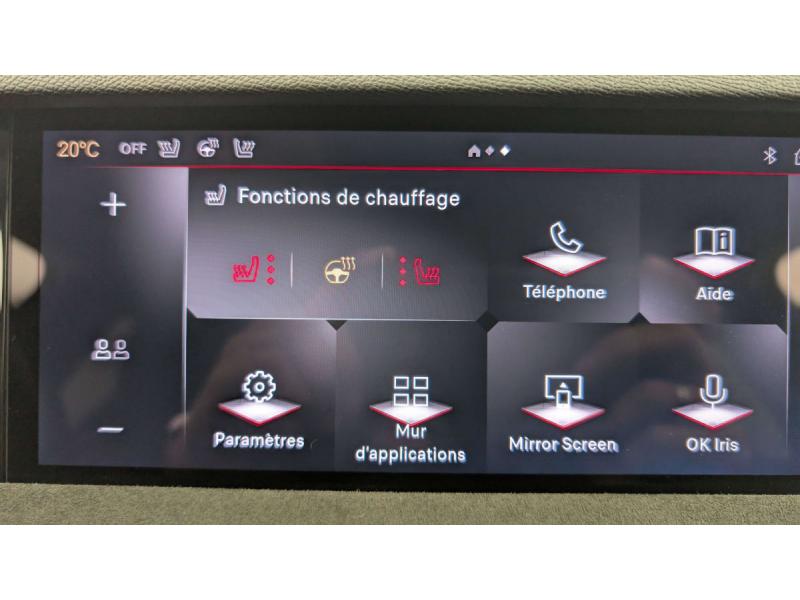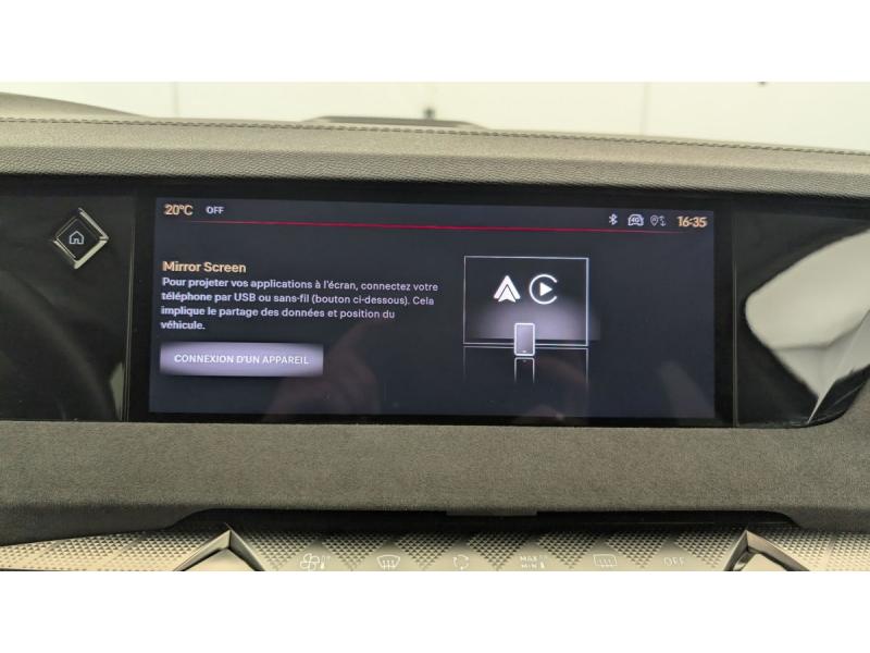 ABS avec répartiteur électronique de freinage (REF) et Aide au Freinage d'Urgence (AFU) + Aide au démarrage en penteAccès et démarrage mains libres ProximityAccoudoir central AR avec 2 porte-gobeletsAdaptive Cruise Control Stop&GoAide au stationnement AV/AR avec Caméra de reculAirbags frontaux (passager déconnectable), latéraux AV, rideaux aux places AV/AR et central entre les places AVAlerte Attention ConducteurAlerte de franchissement involontaire de ligneAllumage automatique des feuxAvertisseur de risque de collisionBanquette AR 2/3 - 1/3 avec 3 appuie-têteBoîte à gantsClimatisation automatique bi-zoneCombiné numérique 7"Condamnation automatique des portes et du coffre en roulantContrôle dynamique de stabilité (ESP) avec antipatinage des roues (ASR) + Contrôle de stabilité de l'attelageDétection de sous-gonflageDS EXTENDED HEAD UP DISPLAYDS IRIS SYSTEMDS MATRIX LED VISIONEclairage d'ambiance à LEDEclairage de boîte à gants, d'accoudoir central AV et de coffre à LEDEclairage de cave à pieds à LEDEcran tactile capacitif 10" HDEssuie-vitre AV à déclenchement et cadencement automatiques + Buses de lavageFeux AR Full LED effet 3D avec traitement écaillesFixations ISOFIX à la place passager AV et aux places latérales ARFrein de stationnement électrique automatiqueFreinage d'urgence automatique piloté par caméra et radarIntérieur Tissu Tressé Basalte avec Alcantara : Planche de bord en alcantara Panneaux de portes en alcantara Console centrale en alcantara Sellerie en Tissu Tressé Basalte avec Alcantara et toile DS Décors de panneaux de porte Chrome guilloché Volant en cuir fleurJantes alliage 19" MINNEAPOLISKit de dépannage provisoire de pneumatiquesLève-vitres AV/AR électriques, séquentiels et antipincementLunette AR chauffanteMirror Screen sans fil via Wifi Compatible Apple CarPlay et Android AutoPack Style : Pédalier en aluminium Vitres AR et lunette AR surteintéesPalettes au volantPare-brise teinté acoustiquePare-soleil avec miroirs de courtoisie occultables éclairés à LEDRétroviseur intérieur électrochrome sans cadreRétroviseurs extérieurs électriques, dégivrants, rabattables électriquement Avec éclairage d'accueilRadio numérique terrestre (DAB) Inclut le BluetoothReconnaissance étendue des panneaux de circulationReconnaissance des panneaux de vitesse et préconisationVitres AR et lunette AR surteintéesVolant réglable en hauteur et profondeur