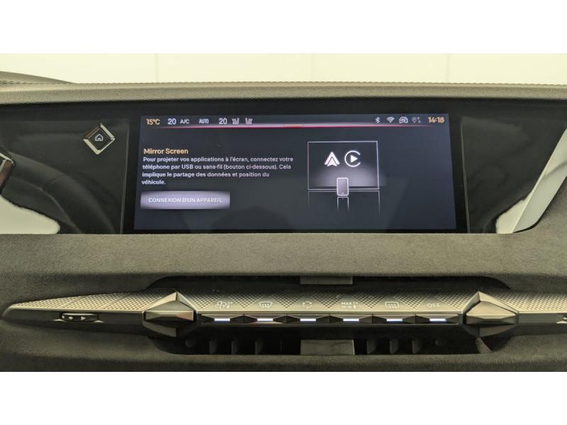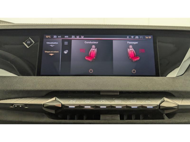 ABS avec répartiteur électronique de freinage (REF) et Aide au Freinage d'Urgence (AFU) + Aide au démarrage en penteAccès et démarrage mains libres ProximityAccoudoir central AR avec 2 porte-gobeletsAdaptive Cruise Control Stop&GoAide au stationnement AV/AR avec Caméra de reculAirbags frontaux (passager déconnectable), latéraux AV, rideaux aux places AV/AR et central entre les places AVAlerte Attention ConducteurAlerte de franchissement involontaire de ligneAllumage automatique des feuxAvertisseur de risque de collisionBanquette AR 2/3 - 1/3 avec 3 appuie-têteBoîte à gantsClimatisation automatique bi-zoneCombiné numérique 7"Condamnation automatique des portes et du coffre en roulantContrôle dynamique de stabilité (ESP) avec antipatinage des roues (ASR) + Contrôle de stabilité de l'attelageDétection de sous-gonflageDS EXTENDED HEAD UP DISPLAYDS IRIS SYSTEMDS MATRIX LED VISIONEclairage d'ambiance à LEDEclairage de boîte à gants, d'accoudoir central AV et de coffre à LEDEclairage de cave à pieds à LEDEcran tactile capacitif 10" HDEssuie-vitre AV à déclenchement et cadencement automatiques + Buses de lavageFeux AR Full LED effet 3D avec traitement écaillesFixations ISOFIX à la place passager AV et aux places latérales ARFrein de stationnement électrique automatiqueFreinage d'urgence automatique piloté par caméra et radarIntérieur Tissu Tressé Basalte avec Alcantara : Planche de bord en alcantara Panneaux de portes en alcantara Console centrale en alcantara Sellerie en Tissu Tressé Basalte avec Alcantara et toile DS Décors de panneaux de porte Chrome guilloché Volant en cuir fleurJantes alliage 19" MINNEAPOLISKit de dépannage provisoire de pneumatiquesLève-vitres AV/AR électriques, séquentiels et antipincementLunette AR chauffanteMirror Screen sans fil via Wifi Compatible Apple CarPlay et Android AutoPack Style : Pédalier en aluminium Vitres AR et lunette AR surteintéesPalettes au volantPare-brise teinté acoustiquePare-soleil avec miroirs de courtoisie occultables éclairés à LEDRétroviseur intérieur électrochrome sans cadreRétroviseurs extérieurs électriques, dégivrants, rabattables électriquement Avec éclairage d'accueilRadio numérique terrestre (DAB) Inclut le BluetoothReconnaissance étendue des panneaux de circulationReconnaissance des panneaux de vitesse et préconisationVitres AR et lunette AR surteintéesVolant réglable en hauteur et profondeur