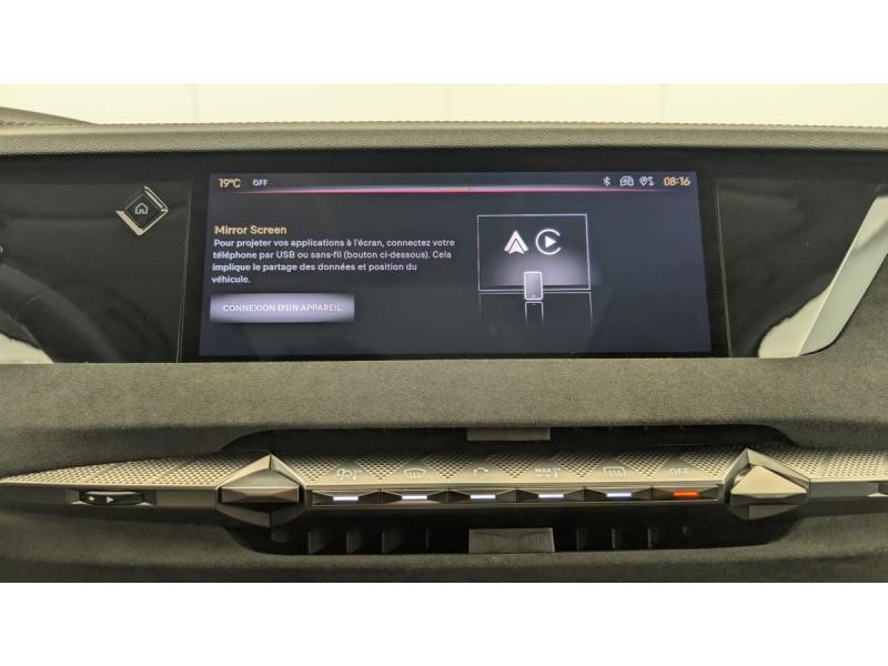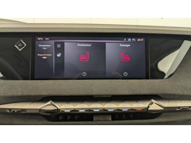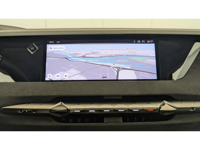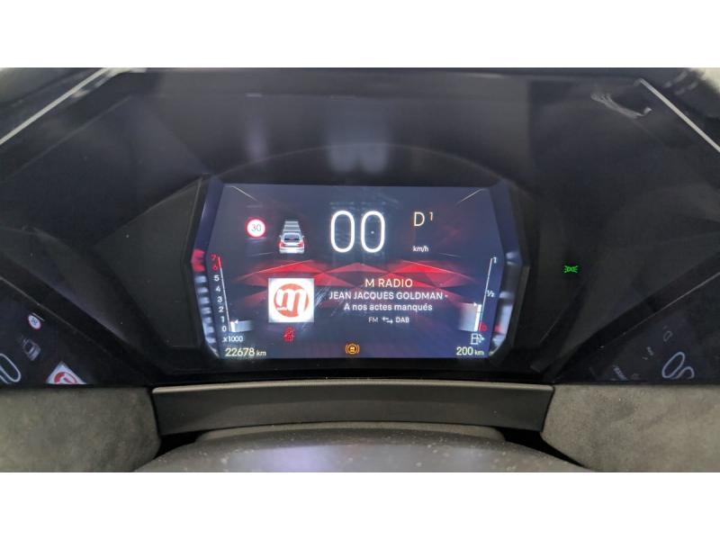 ABS avec répartiteur électronique de freinage (REF) et Aide au Freinage d'Urgence (AFU) + Aide au démarrage en penteAccès et démarrage mains libres ProximityAccoudoir central AR avec 2 porte-gobeletsAdaptive Cruise Control Stop&GoAide au stationnement AV/AR avec Caméra de reculAirbags frontaux (passager déconnectable), latéraux AV, rideaux aux places AV/AR et central entre les places AVAlerte Attention ConducteurAlerte de franchissement involontaire de ligneAllumage automatique des feuxAvertisseur de risque de collisionBanquette AR 2/3 - 1/3 avec 3 appuie-têteBoîte à gantsClimatisation automatique bi-zoneCombiné numérique 7"Condamnation automatique des portes et du coffre en roulantContrôle dynamique de stabilité (ESP) avec antipatinage des roues (ASR) + Contrôle de stabilité de l'attelageDétection de sous-gonflageDS EXTENDED HEAD UP DISPLAYDS IRIS SYSTEMDS MATRIX LED VISIONEclairage d'ambiance à LEDEclairage de boîte à gants, d'accoudoir central AV et de coffre à LEDEclairage de cave à pieds à LEDEcran tactile capacitif 10" HDEssuie-vitre AV à déclenchement et cadencement automatiques + Buses de lavageFeux AR Full LED effet 3D avec traitement écaillesFixations ISOFIX à la place passager AV et aux places latérales ARFrein de stationnement électrique automatiqueFreinage d'urgence automatique piloté par caméra et radarIntérieur Tissu Tressé Basalte avec Alcantara : Planche de bord en alcantara Panneaux de portes en alcantara Console centrale en alcantara Sellerie en Tissu Tressé Basalte avec Alcantara et toile DS Décors de panneaux de porte Chrome guilloché Volant en cuir fleurJantes alliage 19" MINNEAPOLISKit de dépannage provisoire de pneumatiquesLève-vitres AV/AR électriques, séquentiels et antipincementLunette AR chauffanteMirror Screen sans fil via Wifi Compatible Apple CarPlay et Android AutoPack Style : Pédalier en aluminium Vitres AR et lunette AR surteintéesPalettes au volantPare-brise teinté acoustiquePare-soleil avec miroirs de courtoisie occultables éclairés à LEDRétroviseur intérieur électrochrome sans cadreRétroviseurs extérieurs électriques, dégivrants, rabattables électriquement Avec éclairage d'accueilRadio numérique terrestre (DAB) Inclut le BluetoothReconnaissance étendue des panneaux de circulationReconnaissance des panneaux de vitesse et préconisationVitres AR et lunette AR surteintéesVolant réglable en hauteur et profondeur
