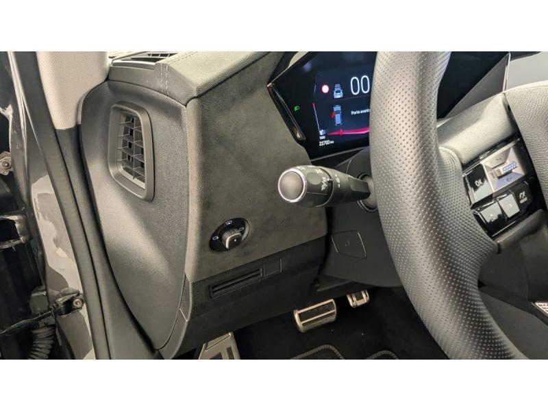 ABS avec répartiteur électronique de freinage (REF) et Aide au Freinage d'Urgence (AFU) + Aide au démarrage en penteAccès et démarrage mains libres ProximityAccoudoir central AR avec 2 porte-gobeletsAdaptive Cruise Control Stop&GoAide au stationnement AV/AR avec Caméra de reculAirbags frontaux (passager déconnectable), latéraux AV, rideaux aux places AV/AR et central entre les places AVAlerte Attention ConducteurAlerte de franchissement involontaire de ligneAllumage automatique des feuxAvertisseur de risque de collisionBanquette AR 2/3 - 1/3 avec 3 appuie-têteBoîte à gantsClimatisation automatique bi-zoneCombiné numérique 7"Condamnation automatique des portes et du coffre en roulantContrôle dynamique de stabilité (ESP) avec antipatinage des roues (ASR) + Contrôle de stabilité de l'attelageDétection de sous-gonflageDS EXTENDED HEAD UP DISPLAYDS IRIS SYSTEMDS MATRIX LED VISIONEclairage d'ambiance à LEDEclairage de boîte à gants, d'accoudoir central AV et de coffre à LEDEclairage de cave à pieds à LEDEcran tactile capacitif 10" HDEssuie-vitre AV à déclenchement et cadencement automatiques + Buses de lavageFeux AR Full LED effet 3D avec traitement écaillesFixations ISOFIX à la place passager AV et aux places latérales ARFrein de stationnement électrique automatiqueFreinage d'urgence automatique piloté par caméra et radarIntérieur Tissu Tressé Basalte avec Alcantara : Planche de bord en alcantara Panneaux de portes en alcantara Console centrale en alcantara Sellerie en Tissu Tressé Basalte avec Alcantara et toile DS Décors de panneaux de porte Chrome guilloché Volant en cuir fleurJantes alliage 19" MINNEAPOLISKit de dépannage provisoire de pneumatiquesLève-vitres AV/AR électriques, séquentiels et antipincementLunette AR chauffanteMirror Screen sans fil via Wifi Compatible Apple CarPlay et Android AutoPack Style : Pédalier en aluminium Vitres AR et lunette AR surteintéesPalettes au volantPare-brise teinté acoustiquePare-soleil avec miroirs de courtoisie occultables éclairés à LEDRétroviseur intérieur électrochrome sans cadreRétroviseurs extérieurs électriques, dégivrants, rabattables électriquement Avec éclairage d'accueilRadio numérique terrestre (DAB) Inclut le BluetoothReconnaissance étendue des panneaux de circulationReconnaissance des panneaux de vitesse et préconisationVitres AR et lunette AR surteintéesVolant réglable en hauteur et profondeur