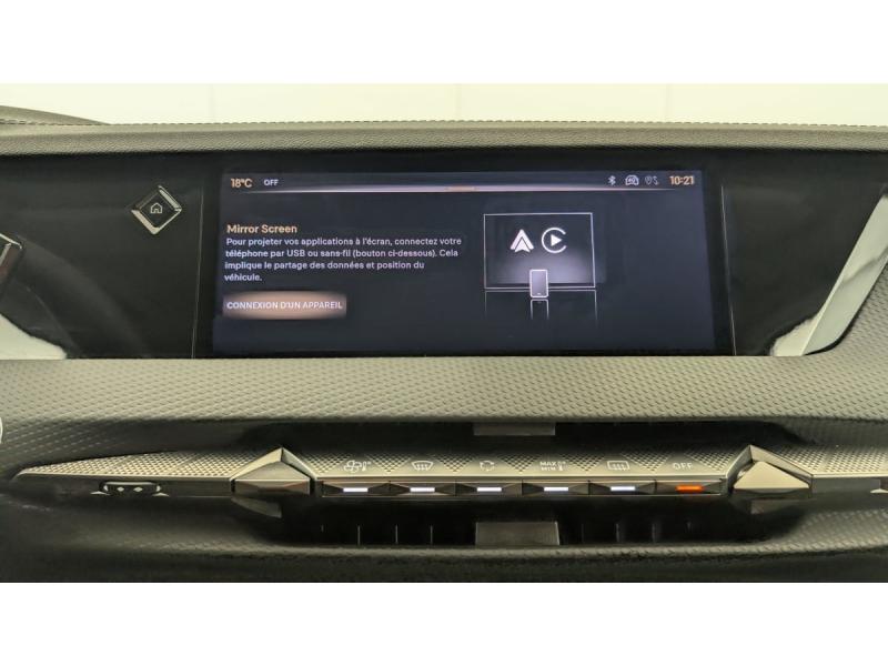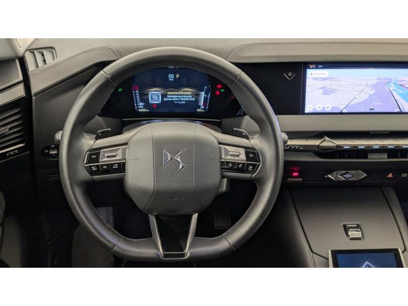 ABS avec répartiteur électronique de freinage (REF) et Aide au Freinage d'Urgence (AFU) + Aide au démarrage en penteAccès et démarrage mains libres ProximityAccoudoir central ARAide au stationnement AV et AR et Caméra de reculAirbags frontaux (passager déconnectable), latéraux AV, rideaux aux places AV/AR et central entre les places AVAllumage automatique des feuxAntenne "aileron de requin"Avertisseur de risque de collisionBanquette AR 2/3 - 1/3 avec 3 appuie-têteClimatisation automatique bi-zoneCombiné numérique 7"Commutation automatique des feuxCondamnation automatique des portes et du coffre en roulantConsole centrale avec rangement ferméContrôle dynamique de stabilité (ESP) avec antipatinage des roues (ASR) + Contrôle de stabilité de l'attelageDétection de sous-gonflageDS Drive Assist et Pack Détection Trafic AR : Surveillance d'angles morts longue distance Alerte de Trafic ARDS e-toggle (Sélecteur de vitesses)DS EXTENDED HEAD UP DISPLAY Affichage tete haute étenduDS IRIS SYSTEMDS MATRIX LED VISIONEclairage d'ambiance à LEDEclairage de boîte à gants, d'accoudoir central AV et de coffre à LEDEclairage de cave à pieds à LEDEcran tactile capacitif 10" HDEssuie-vitre AV à déclenchement et cadencement automatiques + Buses de lavageFeux AR Full LED effet 3D avec traitement écaillesFixations ISOFIX à la place passager AV et aux places latérales ARFrein de stationnement électrique automatiqueFreinage d'urgence automatique piloté par caméra et radarIntérieur Cuir grainé Noir Basalte et Toile DS : Ciel de pavillon clair Décors de panneaux de porte Chrome guilloché Volant en cuir fleur Mistral Console centrale en Toile DS Mistral Planche de bord en toile DS Noir Basalte façon écaille Panneaux de portes Jantes alliage 19" SEVILLAKit de dépannage provisoire de pneumatiquesLève-vitres AV/AR électriques, séquentiels et antipincementLunette AR chauffanteMirror Screen sans fil via Wifi Compatible Apple CarPlay et Android AutoPack Sièges mécaniques avec réglages lombaires conducteur et passagerPalettes au volantPare-brise teinté acoustiquePare-soleil avec miroirs de courtoisie occultables éclairés à LEDRégulateur/Limiteur de vitesseRétroviseur intérieur électrochrome sans cadreRétroviseurs extérieurs électriques, dégivrants, rabattables électriquement Avec éclairage d'accueilRadio numérique terrestre (DAB) Inclut le BluetoothReconnaissance des panneaux de vitesse et préconisationSOSVitres AR et lunette AR surteintéesVolant réglable en hauteur et profondeur