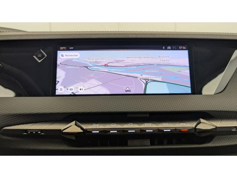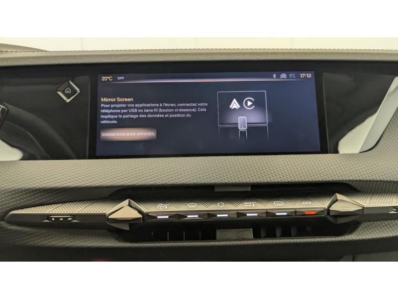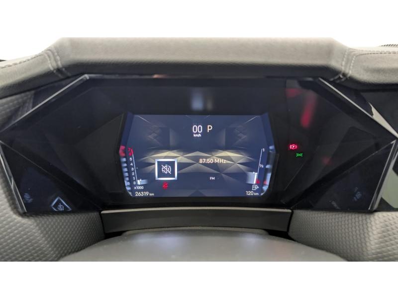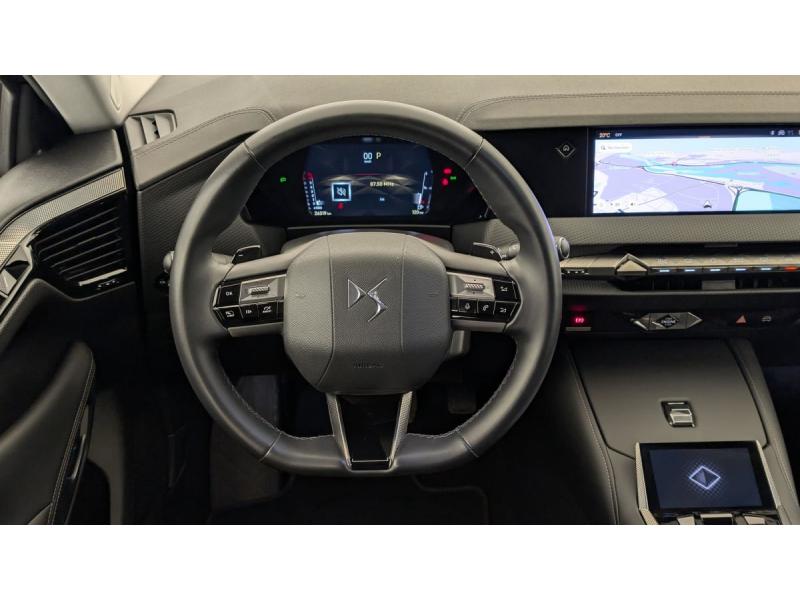 ABS avec répartiteur électronique de freinage (REF) et Aide au Freinage d'Urgence (AFU) + Aide au démarrage en penteAccès et démarrage mains libres ProximityAccoudoir central ARAide au stationnement AV et AR et Caméra de reculAirbags frontaux (passager déconnectable), latéraux AV, rideaux aux places AV/AR et central entre les places AVAllumage automatique des feuxAntenne "aileron de requin"Avertisseur de risque de collisionBanquette AR 2/3 - 1/3 avec 3 appuie-têteClimatisation automatique bi-zoneCombiné numérique 7"Commutation automatique des feuxCondamnation automatique des portes et du coffre en roulantConsole centrale avec rangement ferméContrôle dynamique de stabilité (ESP) avec antipatinage des roues (ASR) + Contrôle de stabilité de l'attelageDétection de sous-gonflageDS Drive Assist et Pack Détection Trafic AR : Surveillance d'angles morts longue distance Alerte de Trafic ARDS e-toggle (Sélecteur de vitesses)DS EXTENDED HEAD UP DISPLAY Affichage tete haute étenduDS IRIS SYSTEMDS MATRIX LED VISIONEclairage d'ambiance à LEDEclairage de boîte à gants, d'accoudoir central AV et de coffre à LEDEclairage de cave à pieds à LEDEcran tactile capacitif 10" HDEssuie-vitre AV à déclenchement et cadencement automatiques + Buses de lavageFeux AR Full LED effet 3D avec traitement écaillesFixations ISOFIX à la place passager AV et aux places latérales ARFrein de stationnement électrique automatiqueFreinage d'urgence automatique piloté par caméra et radarIntérieur Cuir grainé Noir Basalte et Toile DS : Ciel de pavillon clair Décors de panneaux de porte Chrome guilloché Volant en cuir fleur Mistral Console centrale en Toile DS Mistral Planche de bord en toile DS Noir Basalte façon écaille Panneaux de portes Jantes alliage 19" SEVILLAKit de dépannage provisoire de pneumatiquesLève-vitres AV/AR électriques, séquentiels et antipincementLunette AR chauffanteMirror Screen sans fil via Wifi Compatible Apple CarPlay et Android AutoPack Sièges mécaniques avec réglages lombaires conducteur et passagerPalettes au volantPare-brise teinté acoustiquePare-soleil avec miroirs de courtoisie occultables éclairés à LEDRégulateur/Limiteur de vitesseRétroviseur intérieur électrochrome sans cadreRétroviseurs extérieurs électriques, dégivrants, rabattables électriquement Avec éclairage d'accueilRadio numérique terrestre (DAB) Inclut le BluetoothReconnaissance des panneaux de vitesse et préconisationSOSVitres AR et lunette AR surteintéesVolant réglable en hauteur et profondeur
