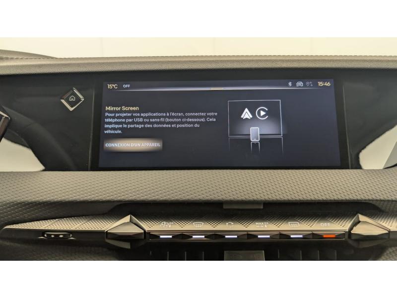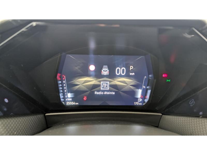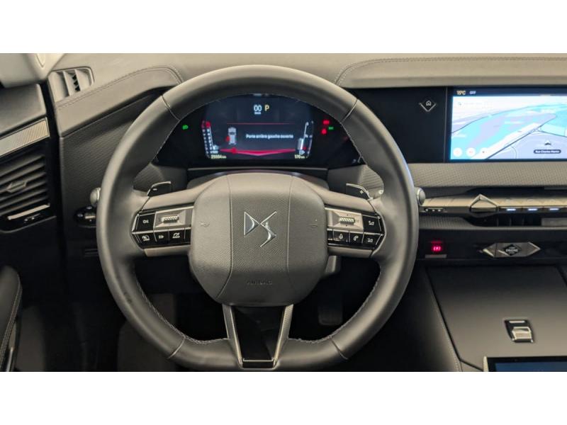 ABS avec répartiteur électronique de freinage (REF) et Aide au Freinage d'Urgence (AFU) + Aide au démarrage en penteAccès et démarrage mains libres ProximityAccoudoir central ARAide au stationnement AV et AR et Caméra de reculAirbags frontaux (passager déconnectable), latéraux AV, rideaux aux places AV/AR et central entre les places AVAllumage automatique des feuxAntenne "aileron de requin"Avertisseur de risque de collisionBanquette AR 2/3 - 1/3 avec 3 appuie-têteClimatisation automatique bi-zoneCombiné numérique 7"Commutation automatique des feuxCondamnation automatique des portes et du coffre en roulantConsole centrale avec rangement ferméContrôle dynamique de stabilité (ESP) avec antipatinage des roues (ASR) + Contrôle de stabilité de l'attelageDétection de sous-gonflageDS Drive Assist et Pack Détection Trafic AR : Surveillance d'angles morts longue distance Alerte de Trafic ARDS e-toggle (Sélecteur de vitesses)DS EXTENDED HEAD UP DISPLAY Affichage tete haute étenduDS IRIS SYSTEMDS MATRIX LED VISIONEclairage d'ambiance à LEDEclairage de boîte à gants, d'accoudoir central AV et de coffre à LEDEclairage de cave à pieds à LEDEcran tactile capacitif 10" HDEssuie-vitre AV à déclenchement et cadencement automatiques + Buses de lavageFeux AR Full LED effet 3D avec traitement écaillesFixations ISOFIX à la place passager AV et aux places latérales ARFrein de stationnement électrique automatiqueFreinage d'urgence automatique piloté par caméra et radarIntérieur Cuir grainé Noir Basalte et Toile DS : Ciel de pavillon clair Décors de panneaux de porte Chrome guilloché Volant en cuir fleur Mistral Console centrale en Toile DS Mistral Planche de bord en toile DS Noir Basalte façon écaille Panneaux de portes Jantes alliage 19" SEVILLAKit de dépannage provisoire de pneumatiquesLève-vitres AV/AR électriques, séquentiels et antipincementLunette AR chauffanteMirror Screen sans fil via Wifi Compatible Apple CarPlay et Android AutoPack Sièges mécaniques avec réglages lombaires conducteur et passagerPalettes au volantPare-brise teinté acoustiquePare-soleil avec miroirs de courtoisie occultables éclairés à LEDRégulateur/Limiteur de vitesseRétroviseur intérieur électrochrome sans cadreRétroviseurs extérieurs électriques, dégivrants, rabattables électriquement Avec éclairage d'accueilRadio numérique terrestre (DAB) Inclut le BluetoothReconnaissance des panneaux de vitesse et préconisationSOSVitres AR et lunette AR surteintéesVolant réglable en hauteur et profondeur
