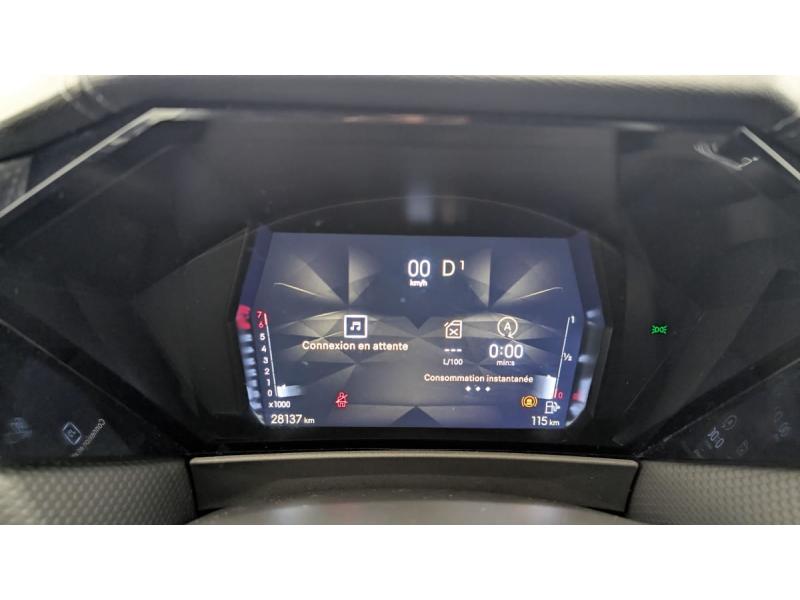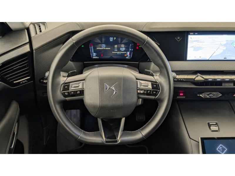 ABS avec répartiteur électronique de freinage (REF) et Aide au Freinage d'Urgence (AFU) + Aide au démarrage en penteAccès et démarrage mains libres ProximityAccoudoir central AR avec 2 porte-gobeletsAide au stationnement AV et AR et Caméra de reculAirbags frontaux (passager déconnectable), latéraux AV, rideaux aux places AV/AR et central entre les places AVAlerte Attention ConducteurAlerte de franchissement involontaire de ligneAllumage automatique des feuxAvertisseur de risque de collisionBanquette AR 2/3 - 1/3 avec 3 appuie-têteClimatisation automatique bi-zoneCombiné numérique 7"Commutation automatique des feuxCondamnation automatique des portes et du coffre en roulantConsole centrale avec rangement ferméContrôle dynamique de stabilité (ESP) avec antipatinage des roues (ASR) + Contrôle de stabilité de l'attelageDétection de sous-gonflageDS Drive Assist et Pack Détection Trafic AR : Adaptive Cruise Control Stop & Go Surveillance d'angles morts longue distance Alerte de Trafic AR Lane Positioning Assist afin de gérer la conduite de manière semi-autonomeDS EXTENDED HEAD UP DISPLAY Affichage tete haute étenduDS IRIS SYSTEMDS MATRIX LED VISIONEclairage d'ambiance à LEDEclairage de boîte à gants, d'accoudoir central AV et de coffre à LEDEclairage de cave à pieds à LEDEcran tactile capacitif 10" HDEnjoliveurs supérieurs des vitres latérales chromésEssuie-vitre AV à déclenchement et cadencement automatiques + Buses de lavageFeux AR Full LED effet 3D avec traitement écaillesFixations ISOFIX à la place passager AV et aux places latérales ARFrein de stationnement électrique automatiqueFreinage d'urgence automatique piloté par caméra et radarFreinage multi-collisionIntérieur Cuir grainé Noir Basalte et Toile DS : Ciel de pavillon clair Décors de panneaux de porte Chrome guilloché Volant en cuir fleur Mistral Console centrale en Toile DS Mistral Planche de bord en toile DS Noir Basalte façon écaille Panneaux de portes Jantes alliage 19" SEVILLAKit de dépannage provisoire de pneumatiquesLève-vitres AV/AR électriques, séquentiels et antipincementLunette AR chauffanteMirror Screen sans fil via Wifi Compatible Apple CarPlay et Android AutoPack Sièges mécaniques avec réglages lombaires conducteur et passagerPalettes au volantPare-brise teinté acoustiquePare-soleil avec miroirs de courtoisie occultables éclairés à LEDRétroviseur intérieur électrochrome sans cadreRétroviseurs extérieurs électriques, dégivrants, rabattables électriquement Avec éclairage d'accueilRadio numérique terrestre (DAB) Inclut le BluetoothReconnaissance étendue des panneaux de circulationReconnaissance des panneaux de vitesse et préconisationVitres AR et lunette AR surteintéesVolant réglable en hauteur et profondeur