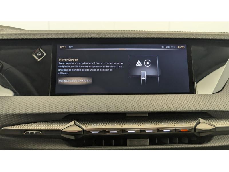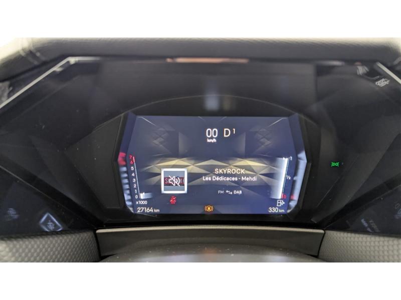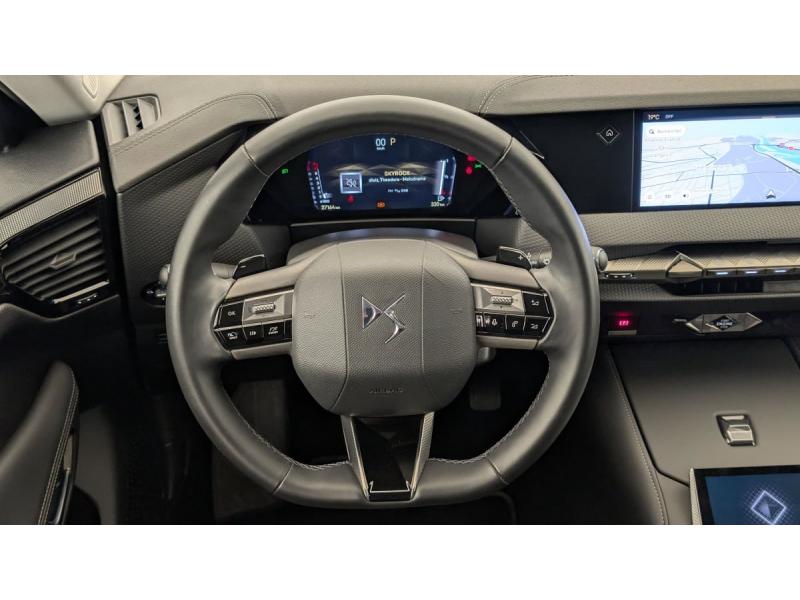 ABS avec répartiteur électronique de freinage (REF) et Aide au Freinage d'Urgence (AFU) + Aide au démarrage en penteAccès et démarrage mains libres ProximityAccoudoir central ARAide au stationnement AV et AR et Caméra de reculAirbags frontaux (passager déconnectable), latéraux AV, rideaux aux places AV/AR et central entre les places AVAllumage automatique des feuxAntenne "aileron de requin"Avertisseur de risque de collisionBanquette AR 2/3 - 1/3 avec 3 appuie-têteClimatisation automatique bi-zoneCombiné numérique 7"Commutation automatique des feuxCondamnation automatique des portes et du coffre en roulantConsole centrale avec rangement ferméContrôle dynamique de stabilité (ESP) avec antipatinage des roues (ASR) + Contrôle de stabilité de l'attelageDétection de sous-gonflageDS Drive Assist et Pack Détection Trafic AR : Surveillance d'angles morts longue distance Alerte de Trafic ARDS e-toggle (Sélecteur de vitesses)DS EXTENDED HEAD UP DISPLAY Affichage tete haute étenduDS IRIS SYSTEMDS MATRIX LED VISIONEclairage d'ambiance à LEDEclairage de boîte à gants, d'accoudoir central AV et de coffre à LEDEclairage de cave à pieds à LEDEcran tactile capacitif 10" HDEssuie-vitre AV à déclenchement et cadencement automatiques + Buses de lavageFeux AR Full LED effet 3D avec traitement écaillesFixations ISOFIX à la place passager AV et aux places latérales ARFrein de stationnement électrique automatiqueFreinage d'urgence automatique piloté par caméra et radarIntérieur Cuir grainé Noir Basalte et Toile DS : Ciel de pavillon clair Décors de panneaux de porte Chrome guilloché Volant en cuir fleur Mistral Console centrale en Toile DS Mistral Planche de bord en toile DS Noir Basalte façon écaille Panneaux de portes Jantes alliage 19" SEVILLAKit de dépannage provisoire de pneumatiquesLève-vitres AV/AR électriques, séquentiels et antipincementLunette AR chauffanteMirror Screen sans fil via Wifi Compatible Apple CarPlay et Android AutoPack Sièges mécaniques avec réglages lombaires conducteur et passagerPalettes au volantPare-brise teinté acoustiquePare-soleil avec miroirs de courtoisie occultables éclairés à LEDRégulateur/Limiteur de vitesseRétroviseur intérieur électrochrome sans cadreRétroviseurs extérieurs électriques, dégivrants, rabattables électriquement Avec éclairage d'accueilRadio numérique terrestre (DAB) Inclut le BluetoothReconnaissance des panneaux de vitesse et préconisationSOSVitres AR et lunette AR surteintéesVolant réglable en hauteur et profondeur