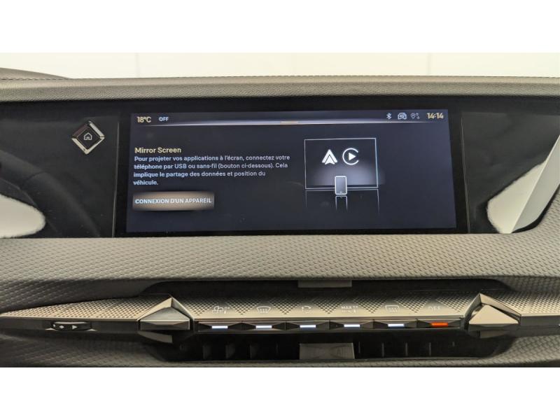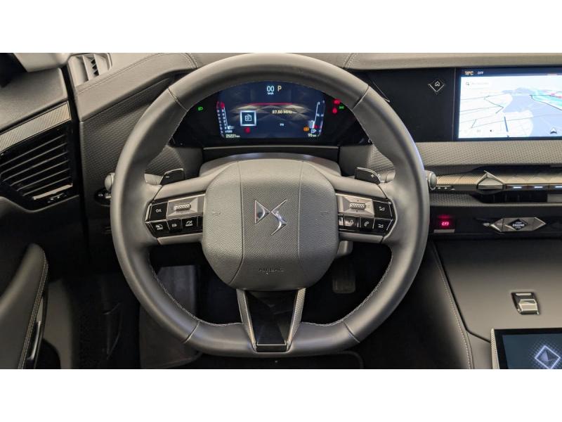 ABS avec répartiteur électronique de freinage (REF) et Aide au Freinage d'Urgence (AFU) + Aide au démarrage en penteAccès et démarrage mains libres ProximityAccoudoir central ARAccoudoir central AVAide au stationnement AV et AR et Caméra de reculAirbags frontaux (passager déconnectable), latéraux AV, rideaux aux places AV/AR et central entre les places AVAlerte de franchissement involontaire de ligneAllumage automatique des feuxBanquette AR 2/3 - 1/3 avec 3 appuie-têteClean Cabin avec Air Quality SystemClimatisation automatique bi-zoneCombiné numérique 7"Commutation automatique des feuxCondamnation automatique des portes et du coffre en roulantContrôle dynamique de stabilité (ESP) avec antipatinage des roues (ASR) + Contrôle de stabilité de l'attelageDétection de sous-gonflageDS Drive Assist et Pack Détection Trafic AR : Adaptive Cruise Control Stop & Go Surveillance d'angles morts longue distance Alerte de Trafic AR Lane Positioning Assist afin de gérer la conduite de manière semi-autonomeDS e-toggle (Sélecteur de vitesses)DS EXTENDED HEAD UP DISPLAY Affichage tete haute étenduDS IRIS SYSTEMDS MATRIX LED VISIONEclairage d'ambiance à LEDEclairage de boîte à gants, d'accoudoir central AV et de coffre à LEDEclairage de cave à pieds à LEDEcran tactile capacitif 10" HDEssuie-vitre AV à déclenchement et cadencement automatiques + Buses de lavageFeux AR Full LED effet 3D avec traitement écaillesFixations ISOFIX à la place passager AV et aux places latérales ARFrein de stationnement électrique automatiqueFreinage d'urgence automatique piloté par caméra et radarIntérieur Cuir grainé Noir Basalte et Toile DS : Ciel de pavillon clair Décors de panneaux de porte Chrome guilloché Volant en cuir fleur Mistral Console centrale en Toile DS Mistral Planche de bord en toile DS Noir Basalte façon écaille Panneaux de portes Jantes alliage 19" SEVILLAKit de dépannage provisoire de pneumatiquesLève-vitres AV/AR électriques, séquentiels et antipincementLunette AR chauffanteMirror Screen sans fil via Wifi Compatible Apple CarPlay et Android AutoPack Sièges mécaniques avec réglages lombaires conducteur et passagerPalettes au volantPare-brise teinté acoustiquePare-soleil avec miroirs de courtoisie occultables éclairés à LEDRétroviseur intérieur électrochrome sans cadreRétroviseurs extérieurs électriques, dégivrants, rabattables électriquement Avec éclairage d'accueilRadio numérique terrestre (DAB) Inclut le BluetoothReconnaissance des panneaux de vitesse et préconisationSOSVitres AR et lunette AR surteintéesVolant réglable en hauteur et profondeur
