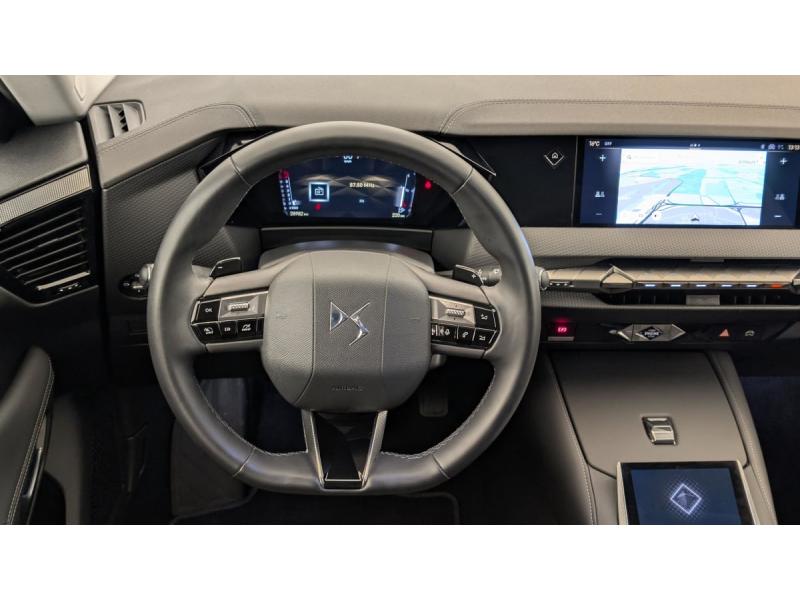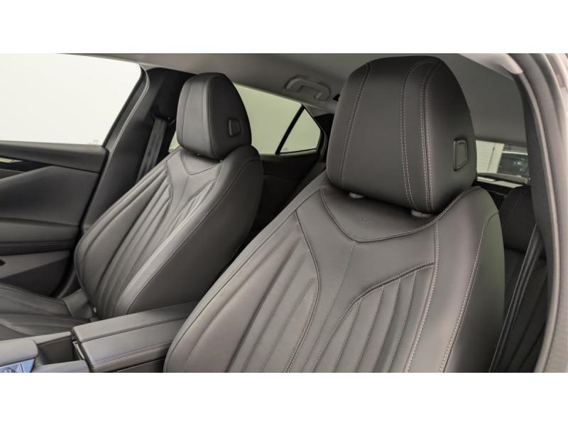 ABS avec répartiteur électronique de freinage (REF) et Aide au Freinage d'Urgence (AFU) + Aide au démarrage en penteAccès et démarrage mains libres ProximityAccoudoir central ARAide au stationnement AV et AR et Caméra de reculAirbags frontaux (passager déconnectable), latéraux AV, rideaux aux places AV/AR et central entre les places AVAllumage automatique des feuxAntenne "aileron de requin"Avertisseur de risque de collisionBanquette AR 2/3 - 1/3 avec 3 appuie-têteClimatisation automatique bi-zoneCombiné numérique 7"Commutation automatique des feuxCondamnation automatique des portes et du coffre en roulantConsole centrale avec rangement ferméContrôle dynamique de stabilité (ESP) avec antipatinage des roues (ASR) + Contrôle de stabilité de l'attelageDétection de sous-gonflageDS Drive Assist et Pack Détection Trafic AR : Surveillance d'angles morts longue distance Alerte de Trafic ARDS e-toggle (Sélecteur de vitesses)DS EXTENDED HEAD UP DISPLAY Affichage tete haute étenduDS IRIS SYSTEMDS MATRIX LED VISIONEclairage d'ambiance à LEDEclairage de boîte à gants, d'accoudoir central AV et de coffre à LEDEclairage de cave à pieds à LEDEcran tactile capacitif 10" HDEssuie-vitre AV à déclenchement et cadencement automatiques + Buses de lavageFeux AR Full LED effet 3D avec traitement écaillesFixations ISOFIX à la place passager AV et aux places latérales ARFrein de stationnement électrique automatiqueFreinage d'urgence automatique piloté par caméra et radarIntérieur Cuir grainé Noir Basalte et Toile DS : Ciel de pavillon clair Décors de panneaux de porte Chrome guilloché Volant en cuir fleur Mistral Console centrale en Toile DS Mistral Planche de bord en toile DS Noir Basalte façon écaille Panneaux de portes Jantes alliage 19" SEVILLAKit de dépannage provisoire de pneumatiquesLève-vitres AV/AR électriques, séquentiels et antipincementLunette AR chauffanteMirror Screen sans fil via Wifi Compatible Apple CarPlay et Android AutoPack Sièges mécaniques avec réglages lombaires conducteur et passagerPalettes au volantPare-brise teinté acoustiquePare-soleil avec miroirs de courtoisie occultables éclairés à LEDRégulateur/Limiteur de vitesseRétroviseur intérieur électrochrome sans cadreRétroviseurs extérieurs électriques, dégivrants, rabattables électriquement Avec éclairage d'accueilRadio numérique terrestre (DAB) Inclut le BluetoothReconnaissance des panneaux de vitesse et préconisationSOSVitres AR et lunette AR surteintéesVolant réglable en hauteur et profondeur