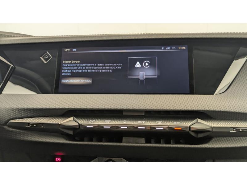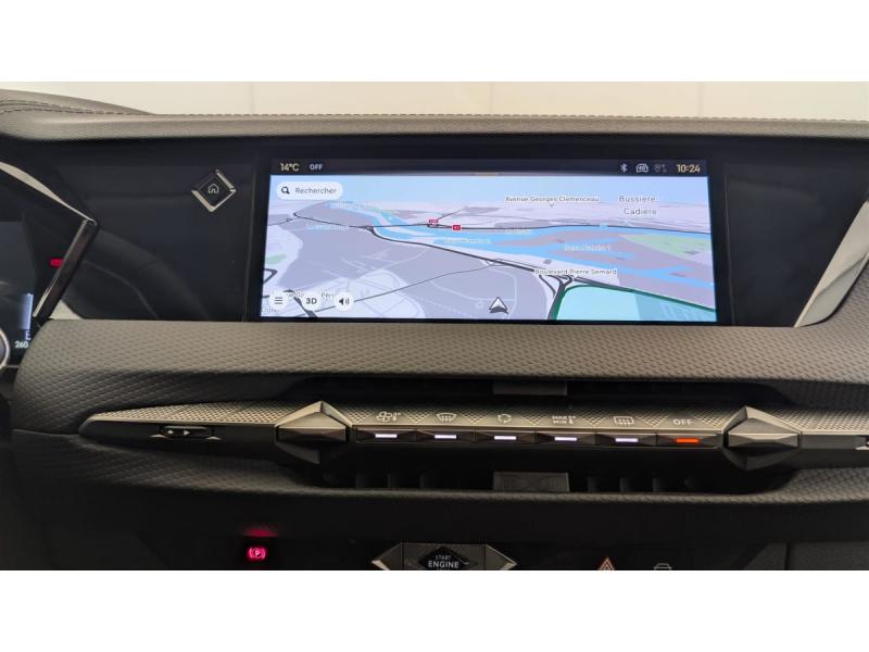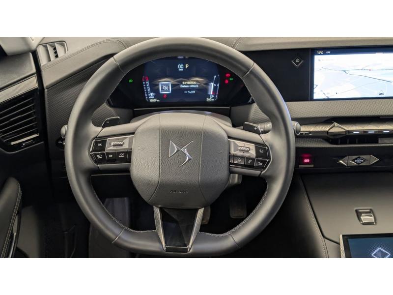 ABS avec répartiteur électronique de freinage (REF) et Aide au Freinage d'Urgence (AFU) + Aide au démarrage en penteAccès et démarrage mains libres ProximityAccoudoir central ARAccoudoir central AVAide au stationnement AV et AR et Caméra de reculAirbags frontaux (passager déconnectable), latéraux AV, rideaux aux places AV/AR et central entre les places AVAlerte de franchissement involontaire de ligneAllumage automatique des feuxBanquette AR 2/3 - 1/3 avec 3 appuie-têteClean Cabin avec Air Quality SystemClimatisation automatique bi-zoneCombiné numérique 7"Commutation automatique des feuxCondamnation automatique des portes et du coffre en roulantContrôle dynamique de stabilité (ESP) avec antipatinage des roues (ASR) + Contrôle de stabilité de l'attelageDétection de sous-gonflageDS Drive Assist et Pack Détection Trafic AR : Adaptive Cruise Control Stop & Go Surveillance d'angles morts longue distance Alerte de Trafic AR Lane Positioning Assist afin de gérer la conduite de manière semi-autonomeDS e-toggle (Sélecteur de vitesses)DS EXTENDED HEAD UP DISPLAY Affichage tete haute étenduDS IRIS SYSTEMDS MATRIX LED VISIONEclairage d'ambiance à LEDEclairage de boîte à gants, d'accoudoir central AV et de coffre à LEDEclairage de cave à pieds à LEDEcran tactile capacitif 10" HDEssuie-vitre AV à déclenchement et cadencement automatiques + Buses de lavageFeux AR Full LED effet 3D avec traitement écaillesFixations ISOFIX à la place passager AV et aux places latérales ARFrein de stationnement électrique automatiqueFreinage d'urgence automatique piloté par caméra et radarIntérieur Cuir grainé Noir Basalte et Toile DS : Ciel de pavillon clair Décors de panneaux de porte Chrome guilloché Volant en cuir fleur Mistral Console centrale en Toile DS Mistral Planche de bord en toile DS Noir Basalte façon écaille Panneaux de portes Jantes alliage 19" SEVILLAKit de dépannage provisoire de pneumatiquesLève-vitres AV/AR électriques, séquentiels et antipincementLunette AR chauffanteMirror Screen sans fil via Wifi Compatible Apple CarPlay et Android AutoPack Sièges mécaniques avec réglages lombaires conducteur et passagerPalettes au volantPare-brise teinté acoustiquePare-soleil avec miroirs de courtoisie occultables éclairés à LEDRétroviseur intérieur électrochrome sans cadreRétroviseurs extérieurs électriques, dégivrants, rabattables électriquement Avec éclairage d'accueilRadio numérique terrestre (DAB) Inclut le BluetoothReconnaissance des panneaux de vitesse et préconisationSOSVitres AR et lunette AR surteintéesVolant réglable en hauteur et profondeur