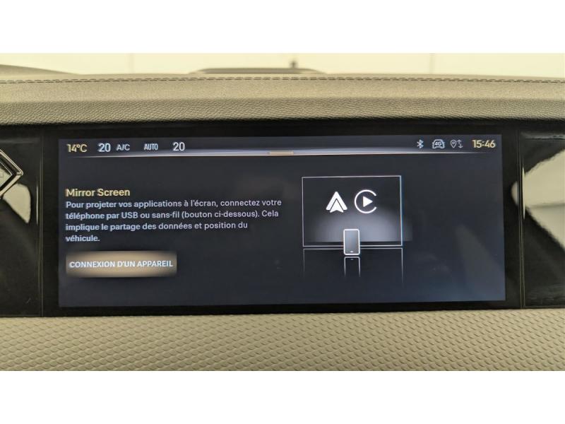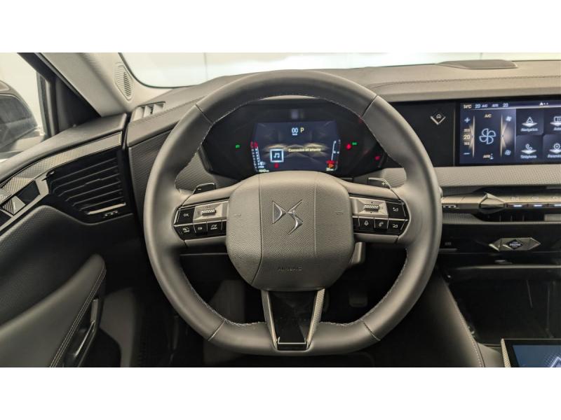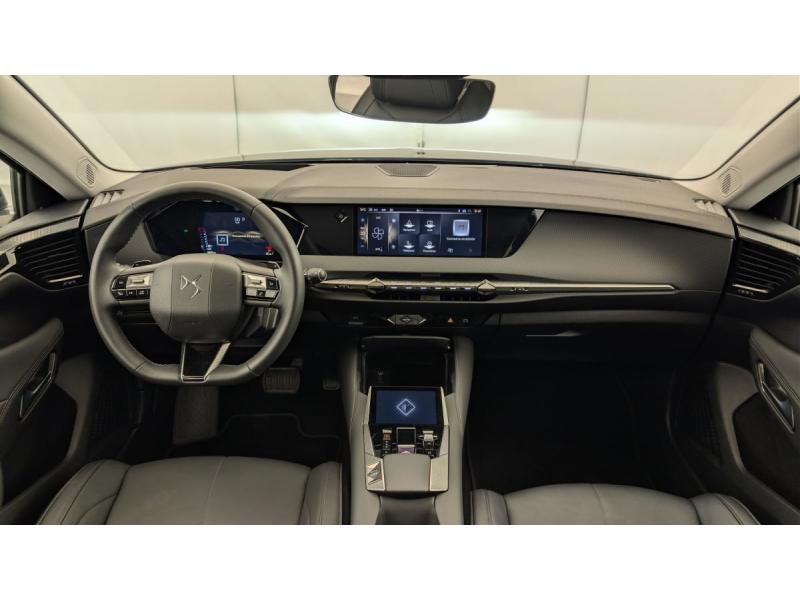 ABS avec répartiteur électronique de freinage (REF) et Aide au Freinage d'Urgence (AFU) + Aide au démarrage en penteAccès et démarrage mains libres ProximityAccoudoir central AR avec trappe à ski et 2 porte-gobeletsAccoudoir central AV réfrigéré et éclairéAirbags frontaux (passager déconnectable), latéraux AV, rideaux aux places AV/AR et central entre les places AVAlerte Attention ConducteurAlerte de franchissement involontaire de ligneAllumage automatique des feuxAntenne "aileron de requin"Avertisseur de risque de collisionBanquette AR 2/3 - 1/3 avec 3 appuie-têteClean Cabin avec Air Quality SystemClimatisation automatique bi-zoneCombiné numérique 7"Commutation automatique des feuxCondamnation automatique des portes et du coffre en roulantConsole centrale avec rangement ferméContrôle dynamique de stabilité (ESP) avec antipatinage des roues (ASR) + Contrôle de stabilité de l'attelageCoques de rétroviseurs extérieurs noir brillantDétection de sous-gonflageDS Drive Assist et Pack Détection Trafic AR : Adaptive Cruise Control Stop & Go Surveillance d'angles morts longue distance Alerte de Trafic AR Lane Positioning Assist afin de gérer la conduite de manière semi-autonomeDS e-toggle (Sélecteur de vitesses)DS EXTENDED HEAD UP DISPLAY Affichage tete haute étenduDS IRIS SYSTEMDS MATRIX LED VISIONEclairage d'ambiance à LEDEclairage de boîte à gants, d'accoudoir central AV et de coffre à LEDEclairage de cave à pieds à LEDEcran tactile capacitif 10" HDEssuie-vitre AV à déclenchement et cadencement automatiquesFeux AR Full LED effet 3D avec traitement écaillesFixations ISOFIX à la place passager AV et aux places latérales ARFrein de stationnement électrique automatiqueFreinage d'urgence automatiqueFreinage multi-collisionGrille de calandre noir brillant avec pampilles chroméesIntérieur Cuir grainé Noir Basalte et Toile DS : Ciel de pavillon clair Décors de panneaux de porte Chrome guilloché Volant en cuir fleur Mistral Console centrale en Toile DS Mistral Planche de bord en toile DS Noir Basalte façon écaille Panneaux de portes Jantes alliage 19" SEVILLAJonc de volet chroméLève-vitres AV/AR électriques, séquentiels et antipincementMirror Screen sans fil via Wifi Compatible Apple CarPlay et Android AutoPack Sièges mécaniques avec réglages lombaires conducteur et passagerPalettes au volantPare-brise teinté acoustiquePare-soleil avec miroirs de courtoisie occultables éclairés à LEDPoignées extérieures affleurantes chroméesPrédisposition pour roue de secours galettePrises 12 V 1 prise AV et 1 prise dans le coffrePrises USB 1 prise USB-C sous l'accoudoir central AV, 1 prise USB-C dans la console et 2 prises USB-C pour les passagers ARRégulateur/Limiteur de vitesseRétroviseur intérieur électrochrome sans cadreRétroviseurs extérieurs électriques, dégivrants, rabattables électriquement Avec éclairage d'accueilRadio numérique terrestre (DAB) Inclut le BluetoothReconnaissance des panneaux de vitesse et préconisationSOSVéhicule sans roue de secours ni kit de dépannageVérins d'ouverture et de maintien du capot moteurVitres AR et lunette AR surteintéesVolant réglable en hauteur et profondeur