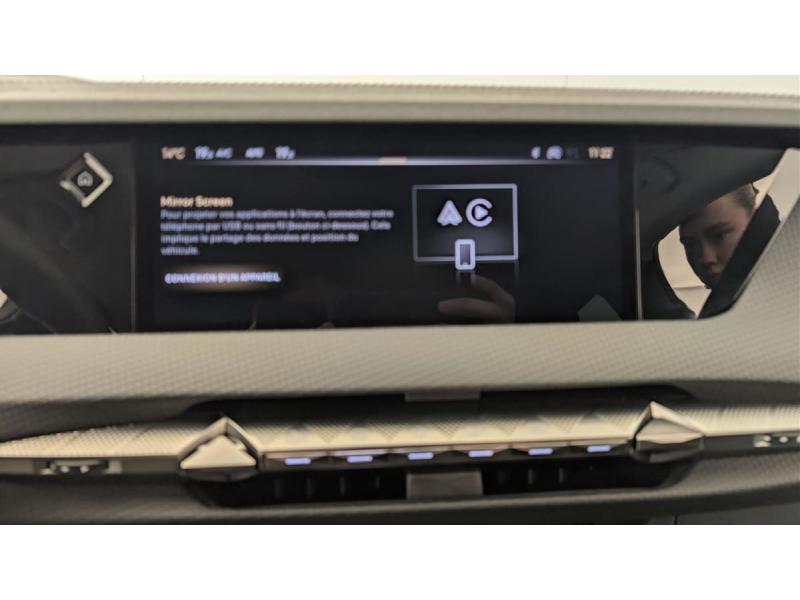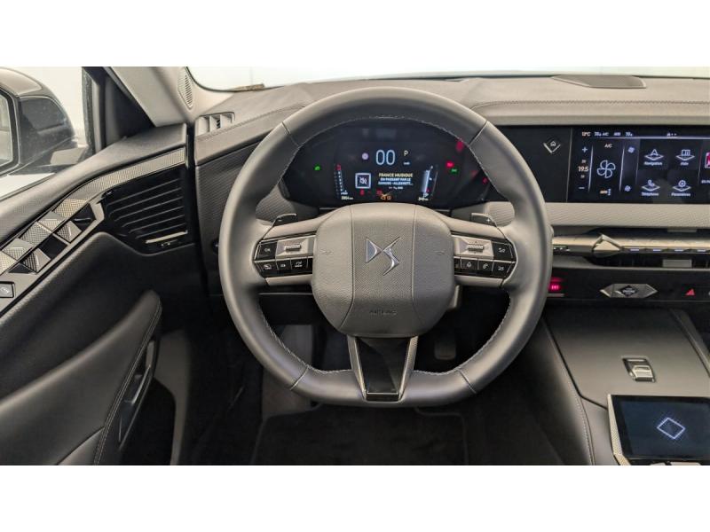 ABS avec répartiteur électronique de freinage (REF) et Aide au Freinage d'Urgence (AFU) + Aide au démarrage en penteAccès et démarrage mains libres ProximityAccoudoir central AR avec trappe à ski et 2 porte-gobeletsAccoudoir central AV réfrigéré et éclairéAide au stationnement AV et AR et Caméra de reculAirbags frontaux (passager déconnectable), latéraux AV, rideaux aux places AV/AR et central entre les places AVAlerte Attention ConducteurAlerte de franchissement involontaire de ligneAllumage automatique des feuxAvertisseur de risque de collisionBanquette AR 2/3 - 1/3 avec 3 appuie-têteBanquette AR avec trappe à skisClean Cabin avec Air Quality SystemClimatisation automatique bi-zoneCombiné numérique 7"Commutation automatique des feuxCondamnation automatique des portes et du coffre en roulantConsole centrale avec rangement ferméContrôle dynamique de stabilité (ESP) avec antipatinage des roues (ASR) + Contrôle de stabilité de l'attelageCoques de rétroviseurs extérieurs noir brillantDétection de sous-gonflageDS Drive Assist et Pack Détection Trafic AR : Adaptive Cruise Control Stop & Go Surveillance d'angles morts longue distance Alerte de Trafic AR Lane Positioning Assist afin de gérer la conduite de manière semi-autonomeDS EXTENDED HEAD UP DISPLAY Affichage tete haute étenduDS IRIS SYSTEMDS MATRIX LED VISIONDS SMART TOUCHDS Wings chroméesEclairage d'ambiance à LEDEclairage de cave à pieds à LEDEcran tactile capacitif 10" HDEnjoliveurs supérieurs des vitres latérales chromésEssuie-vitre AV à déclenchement et cadencement automatiquesFeux AR Full LED effet 3D avec traitement écaillesFixations ISOFIX à la place passager AV et aux places latérales ARFrein de stationnement électrique automatiqueFreinage d'urgence automatiqueIntérieur Cuir grainé Noir Basalte et Toile DS : Ciel de pavillon clair Décors de panneaux de porte Chrome guilloché Volant en cuir fleur Mistral Console centrale en Toile DS Mistral Planche de bord en toile DS Noir Basalte façon écaille Panneaux de portes Jantes alliage 19" SEVILLAKit de dépannage provisoire de pneumatiquesLève-vitres AV/AR électriques, séquentiels et antipincementLunette AR chauffanteMirror Screen sans fil via Wifi Compatible Apple CarPlay et Android AutoPack Sièges mécaniques avec réglages lombaires conducteur et passagerPalettes au volantPare-brise teinté acoustiquePare-soleil avec miroirs de courtoisie occultables éclairés à LEDPoignées extérieures affleurantes chroméesPrédisposition pour roue de secours galetteRégulateur/Limiteur de vitesseRétroviseur intérieur électrochrome sans cadreRétroviseurs extérieurs électriques, dégivrants, rabattables électriquement Avec éclairage d'accueilRadio numérique terrestre (DAB) Inclut le BluetoothReconnaissance étendue des panneaux de circulationReconnaissance des panneaux de vitesse et préconisationSeuil de coffre aluminiumSOSVitres AR et lunette AR surteintéesVolant réglable en hauteur et profondeur