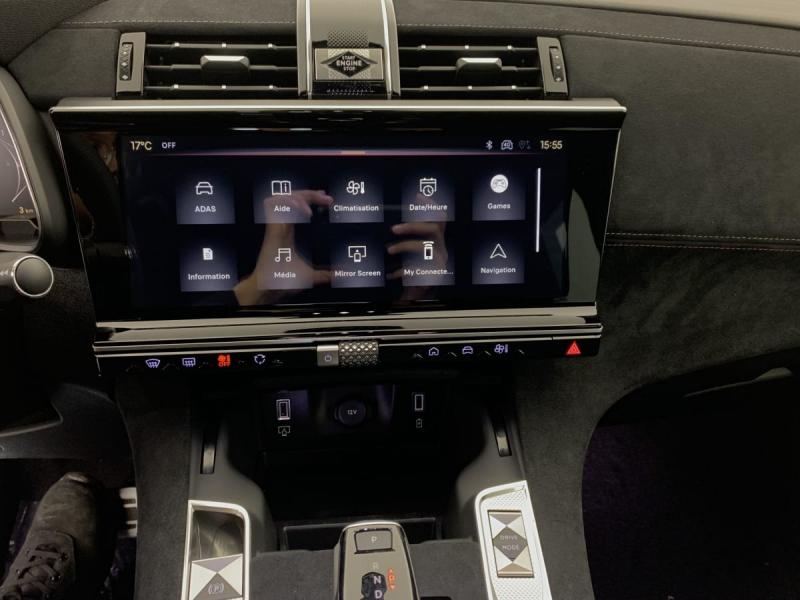 ABS avec répartiteur électronique de freinage (REF) et Aide au Freinage d'Urgence (AFU) + Aide au démarrage en penteAccès et démarrage mains libresAccoudoir central ARAccoudoir central en Toile DS avec rangementAide au stationnement AV et AR et Caméra de reculAirbags frontaux (passager déconnectable), latéraux AV, rideaux AV/ARAlerte Attention ConducteurAlerte de franchissement involontaire de ligneAllumage automatique des feux Avec commutation automatique des feux de routeBadge DS PALLAS spécifique sur le capotBanquette AR 2/3 - 1/3Barres de toit noir brillantBlack PackBoîte à gants ventiléeCeintures conducteur et passager à enrouleur pyrotechnique, réglage en hauteur avec limitation d'effort et prétensionCentre de roue Noir brillantCiel de pavillon SombreClimatisation automatique bi-zoneCombiné numérique 12.3" HDContrôle électronique de stabilité de l'attelageContrôle dynamique de stabilité (ESP) avec antipatinage des roues (ASR)Détection de sous-gonflageDouble antennesDS IRIS SYSTEM Système d'infotainment personnalisable de dernière générationDS LIGHT VEIL Feux de jour à LEDDS PIXEL LED VISION 3.0DS Wings noir brillantEclairage d'accueil et d'accompagnementEclairage d'ambiance à LEDEcran tactile capacitif 12’’ HDEntourage des vitres latérales Noir BrillantEssuie-vitre AV à déclenchement et cadencement automatiques + Buses de lavageFeux AR 3D (traitement écailles) Avec indicateur de changement de direction défilantFixations ISOFIX à la place passager AV et aux places latérales AR Inclut TOP TEATHERFrein de stationnement électrique automatiqueFreinage d'urgence automatique piloté par caméra et radarGrille de calandre noir brillant avec pampilles chroméesIntérieur Alcantara Noir profond : Console centrale en Alcantara Noir Profond Panneaux de portes en Alcantara Noir Profond et surpiqûres Carmin et Or Planche de bord Alcantara Noir Profond et surpiqûres Carmin et Or Volant Cuir fleur perforé et coutures Carmin et Or Si&egrJantes alliage 19'' EDINBURGH, pneus 235/50 R19 VJonc supérieur de volet Noir brillant avec lettrage 'DS AUTOMOBILES' chroméJonc sur jupe AR chroméKit de dépannageLève-vitres AV/AR électriques, séquentiels et avec fonction antipincementLogo DS de calandre ChroméLunette AR chauffanteMirror Screen sans fil via Wifi Compatible Apple CarPlay et Android AutoMonogrammes AR chroméNavigation 3D Connectée Information trafic en temps réel, prix des carburants,parkings et Zones de Danger.3 ans inclusPédalier et le repose-pied aluminiumPalettes au volantPare-brise chauffantPare-brise teinté acoustiquePoignées extérieures couleur caissePrédisposition Plancher modulable à 2 positionsPrises 12 V 1 prise dans le rangement AV de la console centrale et 1 prise dans le coffrePrises USB 1 prise USB type C dans le rangement de la console centrale et 2 prises USB type A pour les passagers ARRégulateur/Limiteur de vitesseRétroviseur intérieur électrochrome sans cadreRétroviseurs extérieurs électriques dégivrants, rabattables électriquement Fonction électrochrome côté conducteur, Projection au sol du logo DS, Indexé à la marche AR côté passagerRétroviseurs extérieurs avec embase couleur caisse et coque noir brillantRadio numérique terrestre (DAB)Reconnaissance étendue des panneaux de signalisationSélecteur de mode de conduiteSabot AV chroméSeuil de coffre chroméSeuil de portes AVSièges AV électriques avec mémorisation du siège conducteurSièges AV chauffantsSurveillance d'angles mortsVérins d'ouverture et de maintien du capot moteurVitres AR et lunette AR surteintéesVolant réglable en hauteur et profondeur
