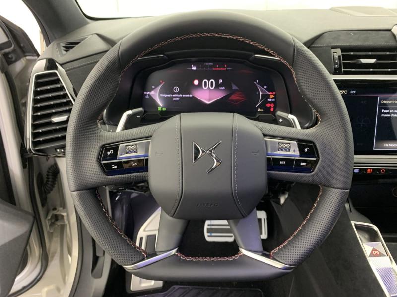 ABS avec répartiteur électronique de freinage (REF) et Aide au Freinage d'Urgence (AFU) + Aide au démarrage en penteAccès et démarrage mains libresAccoudoir central ARAccoudoir central en Toile DS avec rangementAide au stationnement AV et AR et Caméra de reculAirbags frontaux (passager déconnectable), latéraux AV, rideaux AV/ARAlerte Attention ConducteurAlerte de franchissement involontaire de ligneAllumage automatique des feux Avec commutation automatique des feux de routeBadge DS PALLAS spécifique sur le capotBanquette AR 2/3 - 1/3Barres de toit noir brillantBlack PackBoîte à gants ventiléeBoîte de vitesse automatique 8 vitessesCeintures conducteur et passager à enrouleur pyrotechnique, réglage en hauteur avec limitation d'effort et prétensionCentre de roue Noir brillantCiel de pavillon SombreClimatisation automatique bi-zoneCombiné numérique 12.3" HDContrôle électronique de stabilité de l'attelageContrôle dynamique de stabilité (ESP) avec antipatinage des roues (ASR)Détection de sous-gonflageDirection assistéeDouble antennesDS IRIS SYSTEM Système d'infotainment personnalisable de dernière générationDS LIGHT VEIL Feux de jour à LEDDS PIXEL LED VISION 3.0DS Wings noir brillantEclairage d'accueil et d'accompagnementEclairage d'ambiance à LEDEcran tactile capacitif 12’’ HDEntourage des vitres latérales Noir BrillantEssuie-vitre AV à déclenchement et cadencement automatiques + Buses de lavageFeux AR 3D (traitement écailles) Avec indicateur de changement de direction défilantFixations ISOFIX aux places latérales AR Inclut TOP TEATHERFrein de stationnement électrique automatiqueFreinage d'urgence automatique piloté par caméra et radarGrille de calandre noir brillant avec pampilles chroméesIntérieur Alcantara Noir profond : Console centrale en Alcantara Noir Profond Panneaux de portes en Alcantara Noir Profond et surpiqûres Carmin et Or Planche de bord Alcantara Noir Profond et surpiqûres Carmin et Or Volant Cuir fleur perforé et coutures Carmin et Or Si&egrJantes alliage 19'' EDINBURGH, pneus 235/50 R19 VJonc supérieur de volet Noir brillant avec lettrage 'DS AUTOMOBILES' chroméJonc sur jupe AR chroméKit de dépannageLève-vitres AV/AR électriques, séquentiels et avec fonction antipincementLogo DS de calandre ChroméLunette AR chauffanteMirror Screen sans fil via Wifi Compatible Apple CarPlay et Android AutoMonogrammes AR chroméNavigation 3D ConnectéePédalier et le repose-pied aluminiumPalettes au volantPare-brise chauffantPare-brise teinté acoustiquePoignées extérieures couleur caissePrédisposition Plancher modulable à 2 positionsPrises 12 V 1 prise dans le rangement AV de la console centrale et 1 prise dans le coffrePrises USB 1 prise USB type C dans le rangement de la console centrale et 2 prises USB type A pour les passagers ARRégulateur/Limiteur de vitesseRétroviseur intérieur électrochrome sans cadreRétroviseurs extérieurs électriques dégivrants, rabattables électriquement Fonction électrochrome côté conducteur, Projection au sol du logo DS, Indexé à la marche AR côté passagerRétroviseurs extérieurs avec embase couleur caisse et coque noir brillantRadio numérique terrestre (DAB)Reconnaissance étendue des panneaux de signalisationSélecteur de mode de conduiteSabot AV chroméSeuil de coffre chroméSeuil de portes AVSièges AV électriques avec mémorisation du siège conducteurSièges AV chauffantsSurveillance d'angles mortsVérins d'ouverture et de maintien du capot moteurVerrouillage centraliséeVitres AR et lunette AR surteintéesVolant réglable en hauteur et profondeur