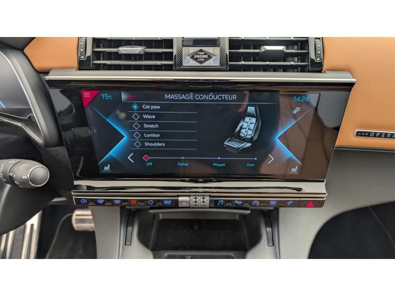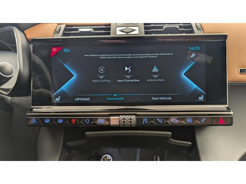 ABS avec répartiteur électronique de freinage (REF) et Aide au Freinage d'Urgence (AFU)Accès et démarrage mains libresAccoudoir central AV avec rangementAide au démarrage en penteAide au stationnement AV et AR avec Caméra de reculAirbags frontaux aux places AV avec désactivation par clé de l'airbag passagerAirbags latéraux de type "thorax" aux places AVAirbags rideaux aux places AV et ARAlerte Attention ConducteurAllumage automatique des feux de détresse en cas de forte décélérationAllumage automatique des projecteursAumônières de dos sur les sièges AVAvertisseur bi-tonBanquette AR 2/3 - 1/3 avec 3 appuie-têteBarres de toit aluminiumBoîte à gants réfrigéréeCâble de recharge mode 2 standard 1,8 kW (8 A)Chargeur embarqué de 7,4 kWChargeur sans filClignotants impulsionnels 3 coupsClimatisation avec aérateurs aux places ARCombiné numérique 12"Commutation automatique des feux de routeCondamnation automatique des portes, du hayon et de la trappe à carburant en roulantContrôle de stabilité de l'attelageContrôle de traction intelligentContrôle dynamique de stabilité (ESP) avec antipatinage des roues (ASR)Crochet d'arrimage dans le coffre au dessus du plancher de coffre x4Détection de sous-gonflageDirection à assistance variableDouble canule d'échappement chroméeDS ACTIVE LED VISION Comprend les projecteurs directionnels, les clignotants défilants à LED ainsi que 6 modes d’éclairagesEclairage à LEDEclairage d'accompagnement automatiqueEclairage d'accueil automatiqueEclairage d'ambiance intégral à LEDEcran tactile 12" avec menu spécifique E-TENSEEntourage des vitres latérales chroméEssuie-vitre AV à déclenchement et cadencement automatiquesFeux AR 3D (traitement écailles) Avec indicateur de changement de direction défilantFeux diurnes à LEDFiltre à pollenFixations ISOFIX aux places latérales ARFrein de stationnement électrique automatiqueJantes alliage 19" ROMAJonc sur volet et bouclier AR chroméKit de dépannage provisoire de pneumatiquesLève-vitres AV/AR électriques, séquentiels et avec fonction antipincementMirror ScreenMontre B.R.M. R180NAVIGATION avec radio numériquePédalier et le repose-pied aluminiumPack Modularité : Seuil de coffre chromé Prise 12 V Plancher de coffre modulable à 2 positions Rangements latéraux dans le coffrePack Sécurité Etendue avec freinage d’urgence automatique : Alerte Attention Conducteur par caméra Reconnaissance étendue des panneaux de circulation Surveillance Active d'Angle MortPack Sièges Electriques : Fonction mémoire et réglages lombaire côté conducteur Appuie-tête à réglages intégrés Banquette AR inclinable électriquement avec accoudoir Siège AV électrique conducteur Siège Palettes au volantPare-soleil rembourrés avec éclairage à LEDPlanche de coffre avec zone de rangement intégrée pour le câble de rechargePrise 12 VPrise USB Data à l'AVPrises USB x2 aux places ARProjecteurs antibrouillard à LEDRégulateur/Limiteur de vitesseReconnaissance vocaleSabot AV finition Gris AluminiumSièges AV avec réglages lombaires électriquesSOSSystème audio Analogique à 8 HP avec prise USB et BluetoothTémoin et alerte sonore de non-bouclage des ceintures de sécurité AV/ARVerrouillage automatique des portes en roulantVitres AR et lunette AR surteintéesVitres AV et AR surteintées et feuilletéesVolant Cuir gainé main avec commandes intégréesVolant réglable en hauteur et profondeur