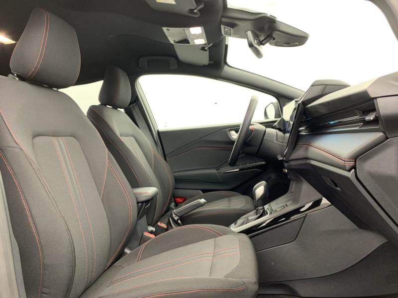 Aide au stationnement ARAir conditionné automatiqueAirbags frontaux et latéraux conducteur et passager AVAirbags rideauxAlerte de véhicule en approcheAllumage automatique des pharesArches de roue couleur carrosserieAssistance à la conduite économiqueAssistant de maintien dans la voieAssistant de pré collision avec freinage post collisionAvertisseur de conduite à contre-sensBadge ST-LineCaméra de reculCombiné d'instrumentalisation numérique 12.8"Console centrale avec accoudoir coulissantFeux AR à LEDFreins à disques AVJantes alliage 17" ST-LineJupes latérales couleur carrosserie avec enjoliveur de porte argentéKit carrosserie ST-Line (bouclier AV sport et diffuseur AR)Kit de réparation des pneumatiquesLecture des panneaux de signalisationMegabox (compartiment de rangement sous le plancher du coffre)Pédalier AluminiumPare-brise acoustiquePlanche de bord en vinyle PremiumPlaques de seuil de portes en aluminium avec logoPneus eco 215/55 R17Pommeau de levier de vitesse en SensicoPommeau de levier de vitesse gainé cuir avec surpiqures rougesProjecteurs LED avec feux de jour et commutateur de feux de route automatiqueRégulateur/limiteur de vitesseRétroviseur intérieur électrochromeRétroviseurs extérieurs électriques, chauffants avec répétiteur de clignotant et coque couleur carrosserieSélecteur de mode de conduiteSiège conducteur à réglage lombaireSiège conducteur à réglage manuel 2 positionsSiège conducteur à réglage manuel 4 positionsSiège SportSièges AV en tissu avec surpiqûres rougesSuspension SportSystème d'infodivertissement SYNC4 avec écran tactile 12" et commandes vocales, 2 ports USB, navigation, Apple CarPlay et Android auto, 6 haut-parleursSystème de contrôle de la trajectoire et de la stabilité avec assistant au freinage d'urgence et aide au démarrage en côteSystème de surveillance de la pression des pneusTambour ARVitres électriques AV et ARVitres AR surteintées