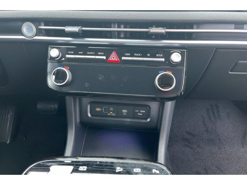 Accoudoir AV et central AR avec porte-gobeletsAide au démarrage en côteAide au stationnement ARAide au stationnement AVAirbag central AVAirbag passager déconnectableAirbags frontaux conducteur et passagerAirbags latéraux AVAirbags rideaux AV/ARAlarme périmétriqueAlerte de circulation transversale à l'AR avec fonction freinageAlerte de présence de passager AR avec capteur ultrasonAllumage automatique des feuxAntenne de toit type requinAppuie-têtes AV et AR réglables en hauteurAssistance à la sortie du véhiculeAssistance active à la conduite sur autorouteAssistance active au maintien de voieAssistance active au suivi de voieCalandre chromée "Parametric Dynamics"Caméra de recul avec lignes de guidage dynamiquesCapteur de désembuage automatique du pare-briseChargeur sans fil pour téléphone compatibleClignotants AV à LEDClimatisation automatique bi-zone avec désembuage automatiqueCompatibilité Apple CarPlay et Android Auto - connexion sans filCompteurs numériques 12.3"Connexion BluetoothConsole centrale avec bac de rangement sous l'accoudoir AVContrôle de la pression des pneumatiquesContrôle de trajectoire électronique ESP avec gestion de stabilité pour remorqueContrôle de vitesse en descenteDétection de fatigue du conducteurDirection assistée électrique asservie à la vitesseDossier AR rabattable 40/20/40 à distance avec commande depuis le coffreDrive ModeeCall : appel d'urgence automatique aux services de secours avec géolocalisation du véhiculeEclairage d'ambiance intérieur à LED personnalisableFeux AR à LED avec bandeau lumineuxFeux AV bi-LEDFeux de jour et de position AV à LED à effet miroirFeux de route intelligentsFiltre à particulesFrein de parking électrique avec fonction auto-holdFreinage anti multi-collisionsFreinage d'urgence autonome avec fonction intersectionsFreinage d'urgence autonome avec reconnaissance piétons et cyclistesFreinage régénératif intelligent modulable via palettes au volantGarantie constructeur 5 ans ramenée à 3 ansJonc de vitres chroméLimiteur de vitesse intelligentMises à jour sans fil à distance OTAPare-brise avec film acoustiquePare-brise et vitres AV athermiquesPare-soleil intégrés dans les portes ARPoches aumonières au dos des sièges AVPoignées de portes extérieures ton carroseriePoignées de portes intérieures grain métalPrise USB type C à l'AVPrises 12V (AV et coffre) et USB AV/ARProtections AV et AR grain métalProtections de seuils de portes grain métalRéception radio numérique terrestre (DAB)Régulateur de vitesse adaptatif intelligent (jusqu'à l'arrêt)Rétroviseurs électriques dégivrants, rabattables électriquement avec clignotants intégrésRétroviseurs extérieurs ton carrosserieRétroviseurs intérieur jour/nuit automatiqueRails de toitReconnaissance des panneaux de limitation de vitesseSellerie cuir/tissuServices connectés BlueLinkSiège conducteur avec support lombaire électriqueSiège passager AV réglable en hauteurSièges AR inclinablesSièges AV chauffantsSurveillance des angles morts avec assistance active au changement de voieSystème d'accès mains-libres et démarrage sans cléSystème de navigation Europe avec programme de mise à jour de la cartographieSystème ISOFIX pour siège enfant aux places latérales ARSystème multimédia avec écran couleur tactile 12,3" avec reconnaissance vocale en ligneTransmission à commande électriqueVerrouillage automatique des portes en roulantVide-poches dans portes AV/ARVitres AR surteintéesVitres AV/AR électriques séquentiellesVolant chauffantVolant et pommeau de levier de vitesses gainés de cuirVolant réglable en hauteur et en profondeur