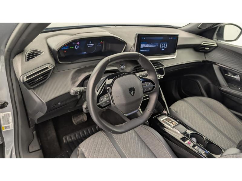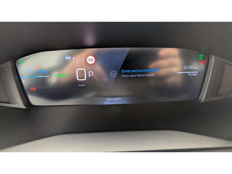 4 poignées de maintien (2 à l'AV et 2 à l'AR)6 airbags (Frontaux adaptatifs, latéraux AV, rideaux AV/AR)6 HPs (2 tweeters et 2 woofers à l'AV et 2 HPs à l'AR)Aide au stationnement AV/AR, graphique et sonoreAir conditionné automatique monozoneAppuis-tête réglables en hauteur AV (x2) et AR (x3)Banquette rabattable 1/3 - 2/3Barres de toit longitudinalesCâble électrique mode 3 triphasé 22 kWConsole haute avec accoudoir & frein de stationnement électrique 1 prise USB type C (Charge) et 1 prise USB type A (Charge) pour passagers AR, Sélecteur de mode de conduite Normal/Eco/SportDémarrage mains libresEléments de style éxterieur: Calandre haut de gamme Noir avec marquage vertical couleur caisse, larmes Dark Chrome, Décor de grille inférieure Gris Météor, Katana noir mat avec insert noir brillantEléments de style intérieur: Panneaux de portes AV avec décor Carbone et baguette Noir brillant avec tampographie Quartz, Accoudoirs de porte AV/AR tissu/TEP Isabella avec surpiqûre QuartzESP Déconnectable avec aide au démarrage en pente et détection de sous gonflage indirecteFixations ISOFIX aux 2 places latérales AR (Top Tether)Habitacle et ciel de pavillon NoirJantes alliage 17" diamantées KARAKOY bi-tons Noir Onyx et vernis brillantLève-vitres électriques AV/ AR et séquentiels avec anti-pincementPack Safety Plus Régulateur / Limiteur de vitesse : Alerte attention conducteur Régulateur / Limiteur de vitesse Reconnaissance étendue des panneaux de signalisation et préconisation de vitesse Alerte active de franchissement involontaire de ligne et bas côtéPack Visibilité : Allumage automatique des feux de croisement Eclairage extérieur d'accueil et d'accompagnement Essuie-vitre AV à déclenchement automatiquePare-brise teinté acoustiquePeugeot Connect SOSPeugeot i-Cockpit avec combiné tête haute 10" numériquePeugeot i-Connect: Radio DAB avec écran tactile couleur personnalisable 10" HD, Bluetooth, Mirror Screen sans fil (Apple CarPlay/Android Auto), Wifi, 1 prise USB type C ( Data+charge) et 1 prise USB type C (Charge) sur console AVProjecteurs Peugeot LED Technology avec feux diurnes à LED 3 griffesRétroviseur intérieur électrochromeRétroviseurs extérieurs dégivrants avec réglage et rabattement électriquesSellerie tissu CASUAL LOMSA embossé, accompagnement TEP Isabella, trimatière LOMSA et surpiqûres QuartzSiège conducteur avec réglage manuel en hauteurSiège passager AV avec réglage manuel en hauteurVitres latérales AR et lunette AR chauffante temporisée surteintéesVolant compact en croûte de cuir avec commandes multimédia intégrées