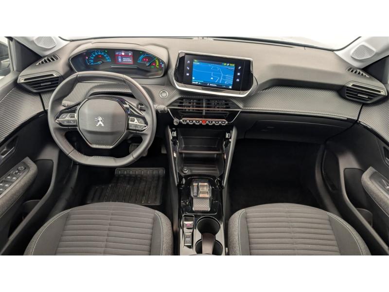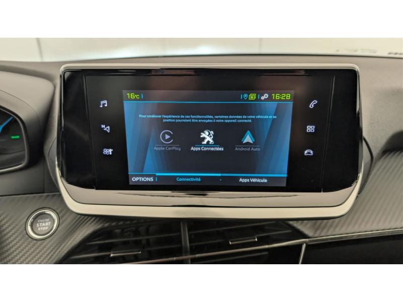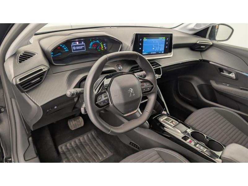 2 prises USB (Recharge type A) sur console basse pour passagers AR6 HP (2 tweeters et 2 woofers à l'AV et 2 larges bandes à l'AR)Aide graphique et sonore au stationnement ARAir conditionné automatique mono-zoneAirbags frontaux et latéraux conducteur et passager AV, rideauxAllumage automatique des feux de croisementAppuis-tête réglables en hauteur AV et AR (x3)Avertisseur de temps de conduiteBandeau entre feux AR Noir brillantBanquette AR rabattable 1/3-2/3Câble électrique mode 3, prises de charge T2/T2Calandre haut de gamme avec grille supérieure avec marquage couleur caisse et enjoliveur supérieur Noir BrillantCeinture de sécurité AR centrale 3 points, avec détection de non bouclageCeintures de sécurité AR latérales avec enrouleurs pyrotechniques, limiteurs d'effort et détection de non bouclageCeintures de sécurité AV conducteur et passager à enrouleurs pyrotechniques avec limiteurs d'effort et détection de non bouclageConsole haute avec accoudoir intégréCoques de rétroviseurs extérieurs Noir BrillantDécor panneaux de portes Noir et AzureDémarrage mains libres avec 2 télécommandes 3 boutonsDétection de sous-gonflage indirecteDirection assistée électriqueEclairage coffre à lampeEclairage intérieur à ampoules : plafonnier AV à 3 spots (1 lampe et 2 liseuses)Fixations suivant norme ISOFIX aux places latérales AR avec étiquettes de localisation, et Top TetherFonction "Mirror Screen" (Apple CarPlay / Android Auto )Fonction BluetoothFonction DAB (Radio Numérique Terrestre)Frein de stationnement électrique avec aide au démarrage en pente et serrage automatiqueJantes alliage 16" ELBORNJupes de pare-chocs AR inférieure et supérieure Noir grainéeKit de dépannage de pneumatiqueLève-vitres AR électriques et séquentiels avec antipincementLève-vitres AV électriques et séquentiels avec antipincementPack Safety : Reconnaissance étendue des panneaux de signalisation et préconisation de vitesse Alerte active de franchissement involontaire de ligne et bas côté Freinage d'urgence automatique (Active Safety Brake) avec alerte risque de collision (Distance Alert) AlerPassages de roue Noir brillantPEUGEOT Connect SOS & Assistance et TelemaintenancePeugeot i-Cockpit avec combiné tête haute analogique et matrice couleur 3,5"Planche de bord slush et panneaux de portes AV avec décors aspect carboneProgramme de Stabilité Electronique (ESC) avec ASR, ABS, REF, AFU, CDS et TSMProjecteurs 'Peugeot LED Technology', indicateurs de direction à ampoulesRégulateur / Limiteur de vitesseRétroviseur intérieur à réglage jour/nuit manuelRétroviseurs extérieurs dégivrants avec réglage et rabattement électriquesRadio avec écran tactile 7" couleur capacitif, 2 prises USB (DATA type A, recharge type C) sur console AVSellerie Tri matière Tissu PNEUMA 3D, surpiqûre Bleu AzureSiège conducteur avec réglage manuel en hauteurVerrouillage automatique de tous les ouvrants en roulantVitres latérales AR et lunette AR chauffante temporisée surteintéesVolant compact croute de cuir, Lion chromé et commandes multimédia sur volantVolant réglable en hauteur et en profondeur