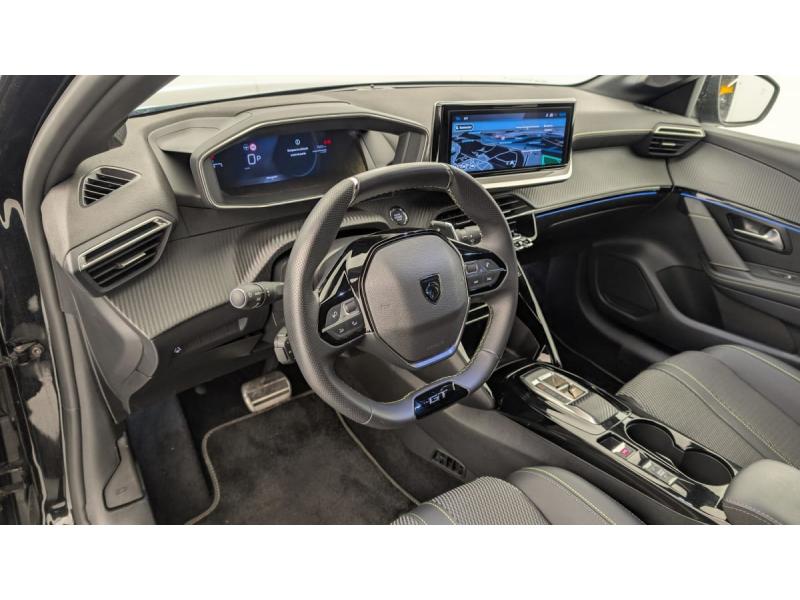 4 poignées de maintien rétractables (2 à l'AV et 2 à l'AR)6 Airbags (Frontaux auto-adaptatifs, latéraux AV et rideaux AV/AR)6 HP (2 tweeters et 2 woofers à l'AV et 2 larges bandes à l'AR)Accès et démarrage mains libres ProximityAccoudoirs sur portes AV et AR en TEP avec surpiqûre AdamiteAir conditionné automatique mono-zoneAntenne requinAppuis-tête réglables en hauteur AV (x2) et AR (x3)Banquette AR rabattable 1/3-2/3Becquet rapporté Noir BrillantCalandre haute de gamme noir grainée avec marquage couleur caisseCeinture de sécurité AR centrale 3 points, avec détection de non bouclageCeintures de sécurité AR latérales avec enrouleurs pyrotechniques, limiteurs d'effort et détection de non bouclageCeintures de sécurité AV conducteur et passager à enrouleurs pyrotechniques avec limiteurs d'effort et détection de non bouclageCommande d'ouverture des portes couleur caisseCommutation automatique des feux de route / feux de croisementConsole haute avec accoudoir & frein de stationnement électrique 1 prise USB type C (Charge) et 1 prise USB type A (Charge) pour passagers AR, Sélecteur de mode de conduite Normal/Eco/SportCoques de rétroviseurs extérieurs Noir BrillantDétection de sous-gonflage indirecteDirection assistée électriqueEclairage coffre à lampeEclairage intérieur Eclairager AV I-DOME à LED (1 plafonnier et 2 liseuses), 2 liseuses à LED AR, Miroir de courtoisie dans pare-soleil éclairé à LED, Eclairage à LED partie basse rangement et caves à piedsEclairage polyambiant 8 couleurs (Liés aux modes de conduite)Enjoliveur bas de calandre Noir BrillantEnjoliveur DRL Noir BrillantEnjoliveur entre feux AR noir brillantEnjoliveur supérieur de calandre Noir BrillantEnjoliveurs d'ailes Noir BrillantESP Déconnectable avec aide au démarrage en penteEssuie-vitre AV à déclenchement automatiqueEssuyage automatiqueFeux AR signature 3 griffes, stop, recul et indicateur de direction à LEDsFixations ISOFIX et Top Tether aux places latérales ARHabitacle et ciel de pavillon NoirJantes alliage 17" diamantées YANAKA bi--ton vernis brillant et Noir Orbital avec inserts Noir Orbital et vernis matJupes AR inférieure Noir brillantJupes AR supérieure Noir brillantLécheurs de vitres latérales Noir BrillantLève-vitres AR électriques et séquentiels avec antipincementLève-vitres AV électriques et séquentiels avec antipincementPédalier Sport aluminiumPack Safety Régulateur / Limiteur de vitesse : Alerte attention conducteur Régulateur / Limiteur de vitesse Reconnaissance étendue des panneaux de signalisation et préconisation de vitesse Alerte active de franchissement involontaire de ligne et bas côté FrePack Visibilité : Allumage automatique des feux de croisementPare-brise teintéPEUGEOT Connect SOSPeugeot i-Cockpit 3D avec combiné tête haute numérique 10''Peugeot i-Connect: Radio DAB avec écran tactile couleur personnalisable 10" HD, Bluetooth - Mirror Screen sans fil (Apple CarPlay/Android Auto) - Wifi - 1 prise USB type C ( Data+charge), 1 prise USB type C (Charge) sur console AVPlanche de bord Slush avec Décor Carbone TPE et double surpiqûres Adamite/Tramontane et baguette Noir brillante avec jonc chromé et jonc lumineuxPrise 12V et rangement pour smartphone en façade centraleProgramme de Stabilité Electronique (ESC) avec ASR, ABS, REF, AFU, CDS et TSMProjecteurs "Peugeot Full LED Technology" avec feux diurnes à LED 3 griffesRétroviseur intérieur électrochrome sans cadreRétroviseurs extérieurs dégivrants avec réglage et rabattement électriques, éclairage de seuilRecharge smartphone sans fil (15W)Roue de secours galetteSellerie tissu BELOMKA, accompagnement TEP Isabella, trimatière Uni Capy et surpiqûres Vert AdamiteSiège conducteur avec réglage manuel en hauteurVerrouillage automatique de tous les ouvrants en roulantVitres latérales AR et lunette AR chauffante temporisée surteintéesVolant compact cuir fleur avec commandes multimédia intégrées et badge GTVolant réglable en hauteur et en profondeur