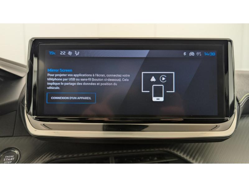 4 poignées de maintien rétractables (2 à l'AV et 2 à l'AR)6 Airbags (Frontaux auto-adaptatifs, latéraux AV et rideaux AV/AR)6 HP (2 tweeters et 2 woofers à l'AV et 2 larges bandes à l'AR)Accès et démarrage mains libres ProximityAccoudoirs sur portes AV et AR en TEP avec surpiqûre AdamiteAir conditionné automatique mono-zoneAntenne requinAppuis-tête réglables en hauteur AV (x2) et AR (x3)Banquette AR rabattable 1/3-2/3Becquet rapporté Noir BrillantCalandre haute de gamme noir grainée avec marquage couleur caisseCeinture de sécurité AR centrale 3 points, avec détection de non bouclageCeintures de sécurité AR latérales avec enrouleurs pyrotechniques, limiteurs d'effort et détection de non bouclageCeintures de sécurité AV conducteur et passager à enrouleurs pyrotechniques avec limiteurs d'effort et détection de non bouclageCommande d'ouverture des portes couleur caisseCommutation automatique des feux de route / feux de croisementConsole haute avec accoudoir & frein de stationnement électrique 1 prise USB type C (Charge) et 1 prise USB type A (Charge) pour passagers AR, Sélecteur de mode de conduite Normal/Eco/SportCoques de rétroviseurs extérieurs Noir BrillantDétection de sous-gonflage indirecteDirection assistée électriqueEclairage coffre à lampeEclairage intérieur Eclairager AV I-DOME à LED (1 plafonnier et 2 liseuses), 2 liseuses à LED AR, Miroir de courtoisie dans pare-soleil éclairé à LED, Eclairage à LED partie basse rangement et caves à piedsEclairage polyambiant 8 couleurs (Liés aux modes de conduite)Enjoliveur bas de calandre Noir BrillantEnjoliveur DRL Noir BrillantEnjoliveur entre feux AR noir brillantEnjoliveur supérieur de calandre Noir BrillantEnjoliveurs d'ailes Noir BrillantESP Déconnectable avec aide au démarrage en penteEssuie-vitre AV à déclenchement automatiqueEssuyage automatiqueFeux AR signature 3 griffes, stop, recul et indicateur de direction à LEDsFixations ISOFIX et Top Tether aux places latérales ARHabitacle et ciel de pavillon NoirJantes alliage 17" diamantées YANAKA bi--ton vernis brillant et Noir Orbital avec inserts Noir Orbital et vernis matJupes AR inférieure Noir brillantJupes AR supérieure Noir brillantLécheurs de vitres latérales Noir BrillantLève-vitres AR électriques et séquentiels avec antipincementLève-vitres AV électriques et séquentiels avec antipincementPédalier Sport aluminiumPack Safety Régulateur / Limiteur de vitesse : Alerte attention conducteur Régulateur / Limiteur de vitesse Reconnaissance étendue des panneaux de signalisation et préconisation de vitesse Alerte active de franchissement involontaire de ligne et bas côté FrePack Visibilité : Allumage automatique des feux de croisementPare-brise teintéPEUGEOT Connect SOSPeugeot i-Cockpit 3D avec combiné tête haute numérique 10''Peugeot i-Connect: Radio DAB avec écran tactile couleur personnalisable 10" HD, Bluetooth - Mirror Screen sans fil (Apple CarPlay/Android Auto) - Wifi - 1 prise USB type C ( Data+charge), 1 prise USB type C (Charge) sur console AVPlanche de bord Slush avec Décor Carbone TPE et double surpiqûres Adamite/Tramontane et baguette Noir brillante avec jonc chromé et jonc lumineuxPrise 12V et rangement pour smartphone en façade centraleProgramme de Stabilité Electronique (ESC) avec ASR, ABS, REF, AFU, CDS et TSMProjecteurs "Peugeot Full LED Technology" avec feux diurnes à LED 3 griffesRétroviseur intérieur électrochrome sans cadreRétroviseurs extérieurs dégivrants avec réglage et rabattement électriques, éclairage de seuilRecharge smartphone sans fil (15W)Roue de secours galetteSellerie tissu BELOMKA, accompagnement TEP Isabella, trimatière Uni Capy et surpiqûres Vert AdamiteSiège conducteur avec réglage manuel en hauteurVerrouillage automatique de tous les ouvrants en roulantVitres latérales AR et lunette AR chauffante temporisée surteintéesVolant compact cuir fleur avec commandes multimédia intégrées et badge GTVolant réglable en hauteur et en profondeur