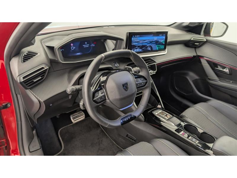 4 poignées de maintien rétractables (2 à l'AV et 2 à l'AR)6 Airbags (Frontaux auto-adaptatifs, latéraux AV et rideaux AV/AR)6 HP (2 tweeters et 2 woofers à l'AV et 2 larges bandes à l'AR)Accès et démarrage mains libres ProximityAccoudoirs sur portes AV et AR en TEP avec surpiqûre AdamiteAir conditionné automatique mono-zoneAntenne requinAppuis-tête réglables en hauteur AV (x2) et AR (x3)Banquette AR rabattable 1/3-2/3Becquet rapporté Noir BrillantCalandre haute de gamme noir grainée avec marquage couleur caisseCeinture de sécurité AR centrale 3 points, avec détection de non bouclageCeintures de sécurité AR latérales avec enrouleurs pyrotechniques, limiteurs d'effort et détection de non bouclageCeintures de sécurité AV conducteur et passager à enrouleurs pyrotechniques avec limiteurs d'effort et détection de non bouclageCommande d'ouverture des portes couleur caisseCommutation automatique des feux de route / feux de croisementConsole haute avec accoudoir & frein de stationnement électrique 1 prise USB type C (Charge) et 1 prise USB type A (Charge) pour passagers AR, Sélecteur de mode de conduite Normal/Eco/SportCoques de rétroviseurs extérieurs Noir BrillantDétection de sous-gonflage indirecteDirection assistée électriqueEclairage coffre à lampeEclairage intérieur Eclairager AV I-DOME à LED (1 plafonnier et 2 liseuses), 2 liseuses à LED AR, Miroir de courtoisie dans pare-soleil éclairé à LED, Eclairage à LED partie basse rangement et caves à piedsEclairage polyambiant 8 couleurs (Liés aux modes de conduite)Enjoliveur bas de calandre Noir BrillantEnjoliveur DRL Noir BrillantEnjoliveur entre feux AR noir brillantEnjoliveur supérieur de calandre Noir BrillantEnjoliveurs d'ailes Noir BrillantESP Déconnectable avec aide au démarrage en penteEssuie-vitre AV à déclenchement automatiqueEssuyage automatiqueFeux AR signature 3 griffes, stop, recul et indicateur de direction à LEDsFixations ISOFIX et Top Tether aux places latérales ARHabitacle et ciel de pavillon NoirJantes alliage 17" diamantées YANAKA bi--ton vernis brillant et Noir Orbital avec inserts Noir Orbital et vernis matJupes AR inférieure Noir brillantJupes AR supérieure Noir brillantLécheurs de vitres latérales Noir BrillantLève-vitres AR électriques et séquentiels avec antipincementLève-vitres AV électriques et séquentiels avec antipincementPédalier Sport aluminiumPack Safety Régulateur / Limiteur de vitesse : Alerte attention conducteur Régulateur / Limiteur de vitesse Reconnaissance étendue des panneaux de signalisation et préconisation de vitesse Alerte active de franchissement involontaire de ligne et bas côté FrePack Visibilité : Allumage automatique des feux de croisementPare-brise teintéPEUGEOT Connect SOSPeugeot i-Cockpit 3D avec combiné tête haute numérique 10''Peugeot i-Connect: Radio DAB avec écran tactile couleur personnalisable 10" HD, Bluetooth - Mirror Screen sans fil (Apple CarPlay/Android Auto) - Wifi - 1 prise USB type C ( Data+charge), 1 prise USB type C (Charge) sur console AVPlanche de bord Slush avec Décor Carbone TPE et double surpiqûres Adamite/Tramontane et baguette Noir brillante avec jonc chromé et jonc lumineuxPrise 12V et rangement pour smartphone en façade centraleProgramme de Stabilité Electronique (ESC) avec ASR, ABS, REF, AFU, CDS et TSMProjecteurs "Peugeot Full LED Technology" avec feux diurnes à LED 3 griffesRétroviseur intérieur électrochrome sans cadreRétroviseurs extérieurs dégivrants avec réglage et rabattement électriques, éclairage de seuilRecharge smartphone sans fil (15W)Roue de secours galetteSellerie tissu BELOMKA, accompagnement TEP Isabella, trimatière Uni Capy et surpiqûres Vert AdamiteSiège conducteur avec réglage manuel en hauteurVerrouillage automatique de tous les ouvrants en roulantVitres latérales AR et lunette AR chauffante temporisée surteintéesVolant compact cuir fleur avec commandes multimédia intégrées et badge GTVolant réglable en hauteur et en profondeur