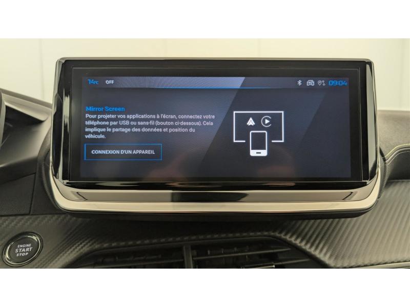 4 poignées de maintien rétractables (2 à l'AV et 2 à l'AR)6 Airbags (Frontaux auto-adaptatifs, latéraux AV et rideaux AV/AR)6 HP (2 tweeters et 2 woofers à l'AV et 2 larges bandes à l'AR)Accès et démarrage mains libres ProximityAccoudoirs sur portes AV et AR en TEP avec surpiqûre AdamiteAir conditionné automatique mono-zoneAntenne requinAppuis-tête réglables en hauteur AV (x2) et AR (x3)Banquette AR rabattable 1/3-2/3Becquet rapporté Noir BrillantCalandre haute de gamme noir grainée avec marquage couleur caisseCeinture de sécurité AR centrale 3 points, avec détection de non bouclageCeintures de sécurité AR latérales avec enrouleurs pyrotechniques, limiteurs d'effort et détection de non bouclageCeintures de sécurité AV conducteur et passager à enrouleurs pyrotechniques avec limiteurs d'effort et détection de non bouclageCommande d'ouverture des portes couleur caisseCommutation automatique des feux de route / feux de croisementConsole haute avec accoudoir & frein de stationnement électrique 1 prise USB type C (Charge) et 1 prise USB type A (Charge) pour passagers AR, Sélecteur de mode de conduite Normal/Eco/SportCoques de rétroviseurs extérieurs Noir BrillantDétection de sous-gonflage indirecteDirection assistée électriqueEclairage coffre à lampeEclairage intérieur Eclairager AV I-DOME à LED (1 plafonnier et 2 liseuses), 2 liseuses à LED AR, Miroir de courtoisie dans pare-soleil éclairé à LED, Eclairage à LED partie basse rangement et caves à piedsEclairage polyambiant 8 couleurs (Liés aux modes de conduite)Enjoliveur bas de calandre Noir BrillantEnjoliveur DRL Noir BrillantEnjoliveur entre feux AR noir brillantEnjoliveur supérieur de calandre Noir BrillantEnjoliveurs d'ailes Noir BrillantESP Déconnectable avec aide au démarrage en penteEssuie-vitre AV à déclenchement automatiqueEssuyage automatiqueFeux AR signature 3 griffes, stop, recul et indicateur de direction à LEDsFixations ISOFIX et Top Tether aux places latérales ARHabitacle et ciel de pavillon NoirJantes alliage 17" diamantées YANAKA bi--ton vernis brillant et Noir Orbital avec inserts Noir Orbital et vernis matJupes AR inférieure Noir brillantJupes AR supérieure Noir brillantLécheurs de vitres latérales Noir BrillantLève-vitres AR électriques et séquentiels avec antipincementLève-vitres AV électriques et séquentiels avec antipincementPédalier Sport aluminiumPack Safety Régulateur / Limiteur de vitesse : Alerte attention conducteur Régulateur / Limiteur de vitesse Reconnaissance étendue des panneaux de signalisation et préconisation de vitesse Alerte active de franchissement involontaire de ligne et bas côté FrePack Visibilité : Allumage automatique des feux de croisementPare-brise teintéPEUGEOT Connect SOSPeugeot i-Cockpit 3D avec combiné tête haute numérique 10''Peugeot i-Connect: Radio DAB avec écran tactile couleur personnalisable 10" HD, Bluetooth - Mirror Screen sans fil (Apple CarPlay/Android Auto) - Wifi - 1 prise USB type C ( Data+charge), 1 prise USB type C (Charge) sur console AVPlanche de bord Slush avec Décor Carbone TPE et double surpiqûres Adamite/Tramontane et baguette Noir brillante avec jonc chromé et jonc lumineuxPrise 12V et rangement pour smartphone en façade centraleProgramme de Stabilité Electronique (ESC) avec ASR, ABS, REF, AFU, CDS et TSMProjecteurs "Peugeot Full LED Technology" avec feux diurnes à LED 3 griffesRétroviseur intérieur électrochrome sans cadreRétroviseurs extérieurs dégivrants avec réglage et rabattement électriques, éclairage de seuilRecharge smartphone sans fil (15W)Roue de secours galetteSellerie tissu BELOMKA, accompagnement TEP Isabella, trimatière Uni Capy et surpiqûres Vert AdamiteSiège conducteur avec réglage manuel en hauteurVerrouillage automatique de tous les ouvrants en roulantVitres latérales AR et lunette AR chauffante temporisée surteintéesVolant compact cuir fleur avec commandes multimédia intégrées et badge GTVolant réglable en hauteur et en profondeur