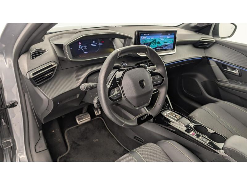 4 poignées de maintien rétractables (2 à l'AV et 2 à l'AR)6 Airbags (Frontaux auto-adaptatifs, latéraux AV et rideaux AV/AR)6 HP (2 tweeters et 2 woofers à l'AV et 2 larges bandes à l'AR)Accès et démarrage mains libres ProximityAccoudoirs sur portes AV et AR en TEP avec surpiqûre AdamiteAir conditionné automatique mono-zoneAntenne requinAppuis-tête réglables en hauteur AV (x2) et AR (x3)Banquette AR rabattable 1/3-2/3Becquet rapporté Noir BrillantCalandre haute de gamme noir grainée avec marquage couleur caisseCeinture de sécurité AR centrale 3 points, avec détection de non bouclageCeintures de sécurité AR latérales avec enrouleurs pyrotechniques, limiteurs d'effort et détection de non bouclageCeintures de sécurité AV conducteur et passager à enrouleurs pyrotechniques avec limiteurs d'effort et détection de non bouclageCommande d'ouverture des portes couleur caisseCommutation automatique des feux de route / feux de croisementConsole haute avec accoudoir & frein de stationnement électrique 1 prise USB type C (Charge) et 1 prise USB type A (Charge) pour passagers AR, Sélecteur de mode de conduite Normal/Eco/SportCoques de rétroviseurs extérieurs Noir BrillantDétection de sous-gonflage indirecteDirection assistée électriqueEclairage coffre à lampeEclairage intérieur Eclairager AV I-DOME à LED (1 plafonnier et 2 liseuses), 2 liseuses à LED AR, Miroir de courtoisie dans pare-soleil éclairé à LED, Eclairage à LED partie basse rangement et caves à piedsEclairage polyambiant 8 couleurs (Liés aux modes de conduite)Enjoliveur bas de calandre Noir BrillantEnjoliveur DRL Noir BrillantEnjoliveur entre feux AR noir brillantEnjoliveur supérieur de calandre Noir BrillantEnjoliveurs d'ailes Noir BrillantESP Déconnectable avec aide au démarrage en penteEssuie-vitre AV à déclenchement automatiqueEssuyage automatiqueFeux AR signature 3 griffes, stop, recul et indicateur de direction à LEDsFixations ISOFIX et Top Tether aux places latérales ARHabitacle et ciel de pavillon NoirJantes alliage 17" diamantées YANAKA bi--ton vernis brillant et Noir Orbital avec inserts Noir Orbital et vernis matJupes AR inférieure Noir brillantJupes AR supérieure Noir brillantLécheurs de vitres latérales Noir BrillantLève-vitres AR électriques et séquentiels avec antipincementLève-vitres AV électriques et séquentiels avec antipincementPédalier Sport aluminiumPack Safety Régulateur / Limiteur de vitesse : Alerte attention conducteur Régulateur / Limiteur de vitesse Reconnaissance étendue des panneaux de signalisation et préconisation de vitesse Alerte active de franchissement involontaire de ligne et bas côté FrePack Visibilité : Allumage automatique des feux de croisementPare-brise teintéPEUGEOT Connect SOSPeugeot i-Cockpit 3D avec combiné tête haute numérique 10''Peugeot i-Connect: Radio DAB avec écran tactile couleur personnalisable 10" HD, Bluetooth - Mirror Screen sans fil (Apple CarPlay/Android Auto) - Wifi - 1 prise USB type C ( Data+charge), 1 prise USB type C (Charge) sur console AVPlanche de bord Slush avec Décor Carbone TPE et double surpiqûres Adamite/Tramontane et baguette Noir brillante avec jonc chromé et jonc lumineuxPrise 12V et rangement pour smartphone en façade centraleProgramme de Stabilité Electronique (ESC) avec ASR, ABS, REF, AFU, CDS et TSMProjecteurs "Peugeot Full LED Technology" avec feux diurnes à LED 3 griffesRétroviseur intérieur électrochrome sans cadreRétroviseurs extérieurs dégivrants avec réglage et rabattement électriques, éclairage de seuilRecharge smartphone sans fil (15W)Roue de secours galetteSellerie tissu BELOMKA, accompagnement TEP Isabella, trimatière Uni Capy et surpiqûres Vert AdamiteSiège conducteur avec réglage manuel en hauteurVerrouillage automatique de tous les ouvrants en roulantVitres latérales AR et lunette AR chauffante temporisée surteintéesVolant compact cuir fleur avec commandes multimédia intégrées et badge GTVolant réglable en hauteur et en profondeur