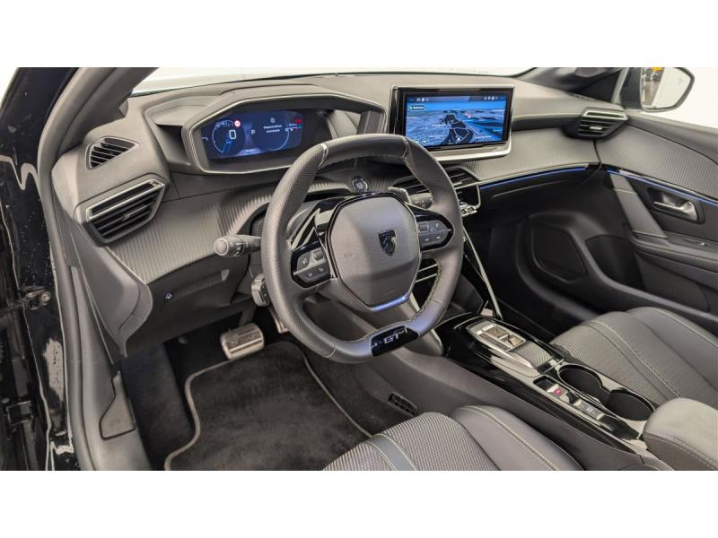 4 poignées de maintien rétractables (2 à l'AV et 2 à l'AR)6 Airbags (Frontaux auto-adaptatifs, latéraux AV et rideaux AV/AR)6 HP (2 tweeters et 2 woofers à l'AV et 2 larges bandes à l'AR)Accès et démarrage mains libres ProximityAccoudoirs sur portes AV et AR en TEP avec surpiqûre AdamiteAir conditionné automatique mono-zoneAntenne requinAppuis-tête réglables en hauteur AV (x2) et AR (x3)Banquette AR rabattable 1/3-2/3Becquet rapporté Noir BrillantCalandre haute de gamme noir grainée avec marquage couleur caisseCeinture de sécurité AR centrale 3 points, avec détection de non bouclageCeintures de sécurité AR latérales avec enrouleurs pyrotechniques, limiteurs d'effort et détection de non bouclageCeintures de sécurité AV conducteur et passager à enrouleurs pyrotechniques avec limiteurs d'effort et détection de non bouclageCommande d'ouverture des portes couleur caisseCommutation automatique des feux de route / feux de croisementConsole haute avec accoudoir & frein de stationnement électrique 1 prise USB type C (Charge) et 1 prise USB type A (Charge) pour passagers AR, Sélecteur de mode de conduite Normal/Eco/SportCoques de rétroviseurs extérieurs Noir BrillantDétection de sous-gonflage indirecteDirection assistée électriqueEclairage coffre à lampeEclairage intérieur Eclairager AV I-DOME à LED (1 plafonnier et 2 liseuses), 2 liseuses à LED AR, Miroir de courtoisie dans pare-soleil éclairé à LED, Eclairage à LED partie basse rangement et caves à piedsEclairage polyambiant 8 couleurs (Liés aux modes de conduite)Enjoliveur bas de calandre Noir BrillantEnjoliveur DRL Noir BrillantEnjoliveur entre feux AR noir brillantEnjoliveur supérieur de calandre Noir BrillantEnjoliveurs d'ailes Noir BrillantESP Déconnectable avec aide au démarrage en penteEssuie-vitre AV à déclenchement automatiqueEssuyage automatiqueFeux AR signature 3 griffes, stop, recul et indicateur de direction à LEDsFixations ISOFIX et Top Tether aux places latérales ARHabitacle et ciel de pavillon NoirJantes alliage 17" diamantées YANAKA bi--ton vernis brillant et Noir Orbital avec inserts Noir Orbital et vernis matJupes AR inférieure Noir brillantJupes AR supérieure Noir brillantLécheurs de vitres latérales Noir BrillantLève-vitres AR électriques et séquentiels avec antipincementLève-vitres AV électriques et séquentiels avec antipincementPédalier Sport aluminiumPack Safety Régulateur / Limiteur de vitesse : Alerte attention conducteur Régulateur / Limiteur de vitesse Reconnaissance étendue des panneaux de signalisation et préconisation de vitesse Alerte active de franchissement involontaire de ligne et bas côté FrePack Visibilité : Allumage automatique des feux de croisementPare-brise teintéPEUGEOT Connect SOSPeugeot i-Cockpit 3D avec combiné tête haute numérique 10''Peugeot i-Connect: Radio DAB avec écran tactile couleur personnalisable 10" HD, Bluetooth - Mirror Screen sans fil (Apple CarPlay/Android Auto) - Wifi - 1 prise USB type C ( Data+charge), 1 prise USB type C (Charge) sur console AVPlanche de bord Slush avec Décor Carbone TPE et double surpiqûres Adamite/Tramontane et baguette Noir brillante avec jonc chromé et jonc lumineuxPrise 12V et rangement pour smartphone en façade centraleProgramme de Stabilité Electronique (ESC) avec ASR, ABS, REF, AFU, CDS et TSMProjecteurs "Peugeot Full LED Technology" avec feux diurnes à LED 3 griffesRétroviseur intérieur électrochrome sans cadreRétroviseurs extérieurs dégivrants avec réglage et rabattement électriques, éclairage de seuilRecharge smartphone sans fil (15W)Roue de secours galetteSellerie tissu BELOMKA, accompagnement TEP Isabella, trimatière Uni Capy et surpiqûres Vert AdamiteSiège conducteur avec réglage manuel en hauteurVerrouillage automatique de tous les ouvrants en roulantVitres latérales AR et lunette AR chauffante temporisée surteintéesVolant compact cuir fleur avec commandes multimédia intégrées et badge GTVolant réglable en hauteur et en profondeur