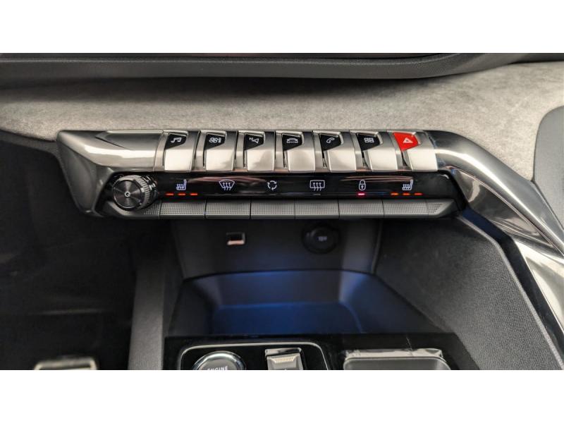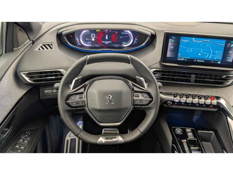 6 airbags (Frontaux adaptatifs, latéraux AV, rideaux AV/AR)Accès et démarrage mains libresAccoudoir central AV à ouverture papillonAir conditionné automatique bi-zone avec aérateurs aux places ARAppuis-tête à sécurité optimisée réglables en hauteur (conducteur, passager et AR x3)Avertisseur de temps de conduiteBanquette AR rabattable 1/3 - 2/3 avec accoudoir central, trappe à skis et commandes de rabattement depuis le coffreBarres de toit longitudinales en aluminiumCoques de rétroviseurs extérieurs Noir Perla NeraDétection de sous-gonflage indirecteDrive Mode : Choix de 2 modes de conduite (Eco ou Sport)Enjoliveur d'arc de pavillon en Inox BrillantEnjoliveurs d'ailes AV chromésEssuie-vitre AV avec système de lavage "Magic Wash"Feux AR à LED avec effet 3D, clignotants à défilementFixations ISOFIX (passager AV et aux places latérales AR)Fonction "Mirror Screen" (Apple CarPlay / Android Auto )Frein de stationnement électrique avec aide au démarrage en pente et serrage automatiqueGarnissage Tissu BELOMKA / TEPHabitacle et ciel de pavillon Noir MistralIndicateur de rapport conseilléJantes alliage 18" diamantées DETROIT bi-ton Noir Onyx brillant avec pneumatiques 225/55 R18 102 VKit de dépannage de pneumatiqueLécheurs de vitres, joncs de vitres latérales en Inox BrillantLève-vitres AV/AR électriques et séquentiels avec antipincementNavigation 3D connectée avec écran tactile capacitif 10" HD Connexion automatique et permanente via carte SIM intégrée au véhicule Avec reconnaissance vocale Cartographie EuropePédalier et repose-pied conducteur en aluminiumPack City 1 : Aide graphique et sonore au stationnement AV Pack City Aide au stationnement AR (Graphique et sonore) Visiopark 1 (Caméra de recul avec restitution sur l'écran tactile d'une vue AR et d'une vue de dessus de l'environnement AR du véhicule)Pack Drive Assist Plus Régulateur de vitesse adaptatif avec fonction Stop & GO Aide au maintien de la position dans la voie Système de surveillance d'angles mort : Régulateur de vitesse adaptatif avec fonction Stop&Go Système de surveillance d'angle mPack Eclairage d'ambiance - Eclairage à LED des caves à pied : Eclairage à LED des caves à piedPack Safety Plus Pack Safety : Alerte attention conducteur Commutation automatique des feux de route Alerte active de franchissement involontaire de ligne et bas côté Pack Safety Freinage d'urgence automatique et alerte risque de collisionPack Visibilité : Eclairage d'accompagnement automatique Allumage automatique des feux de croisement Essuie-vitre AV à déclenchement automatiquePEUGEOT Connect SOSPeugeot i-Cockpit avec combiné tête haute numérique, volant compact multi-fonctionsPoches aumonières au dos des sièges AVPrises USB de charge (x2) au 2ème rangProjecteurs "Peugeot Full LED Technology" avec correction automatique de site, fonction Eclairage Virage Statique,"Foggy Mode" et feux diurnes à LED sous projecteursRétroviseur intérieur photosensible sans cadreRétroviseurs extérieurs dégivrants avec réglage et rabattement électriquesReconnaissance étendue des panneaux de signalisationSécurité enfants électrique des vitres ARSabot de pare--chocs AV peint Gris LionSiège conducteur avec réglage lombaireSièges AV réglables en hauteurToggle Switches chromés (touches piano d'activation des fonctions de l'écran tactile)Toit "Black Diamond"Vitres latérales AR et lunette AR chauffante surteintéesVolant cuir fleur perforé Mistral avec bagues chromées et badge GT