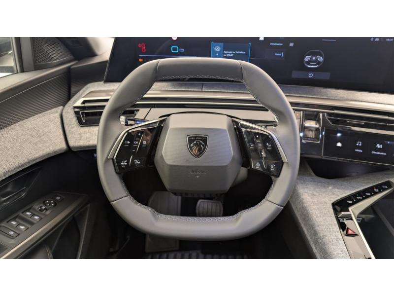 6 airbags: frontaux conducteur et passager auto-adaptatifs (passager neutralisable par clé), latéraux conducteur et passager AV (thorax et bassin), rideaux aux places AV et AR (tête et thorax)6 HP (2 tweeters et 2 woofers à l'AV et 2 larges bandes à l'AR)ABSAccès et démarrage mains libres ProximityAir conditionné automatique bi-zoneAllumage automatique des pharesBanquette AR avec dossier rabattable 40/20/40Boîte de vitesse automatique, séquentielle (6 rapports)Contrôle de tractionDétection de sous-gonflage indirecteDirection assistéeEclairage intérieur Plafonnier AV et liseuses AR à LED, Boite à gants et rangement de console éclairés à LED, Eclairage des caves à pieds AV à LEDESP avec aide au démarrage en penteEssuie-vitre AV à déclenchement automatiqueFeux AR 3 griffes à LEDFeux diurnes 3 griffes à LEDFixations ISOFIX et Top Tether aux places latérales ARFrein de stationnement électriqueJantes alliage 19" diamantées Lulea Noir Orbital, vernis brillantLève-vitres AV/AR électriques et séquentiels avec antipincementPack Safety Plus : Alerte attention conducteur Reconnaissance étendue des panneaux de signalisation et préconisation de vitesse Alerte active de franchissement involontaire de ligne et bas côté Freinage d'urgence automatique avec alerte risque de collision pilot&eacuPare-brise feuilleté acoustiquePEUGEOT i-Connect Radio DAB, Bluetooth (connexion 2 téléphones), Mirror Screen sans fil (Apple CarPlay / Android Auto), Peugeot Connect SOS, 1 prise USB C (Data & charge)Plancher de coffre modulable 2 positionsProjecteurs "Peugeot Led Technology"Rétroviseur intérieur électrochromeSellerie tissu CRISPY embossé, accompagnement TEP Isabella, écharpe tissu RIMINI chiné, surpiqûres QuartzSièges AV à réglage en hauteur manuelVitres AV électriquesVolant compact croûte de cuir avec commandes intégrées Noir laqué, décors Gris Stène