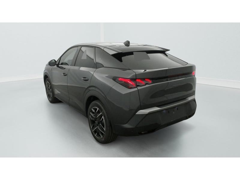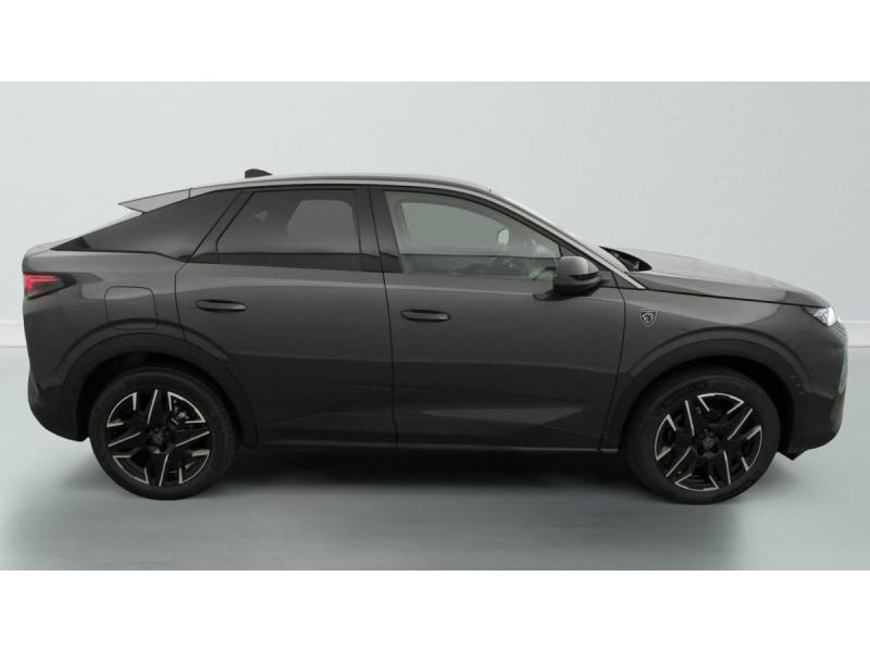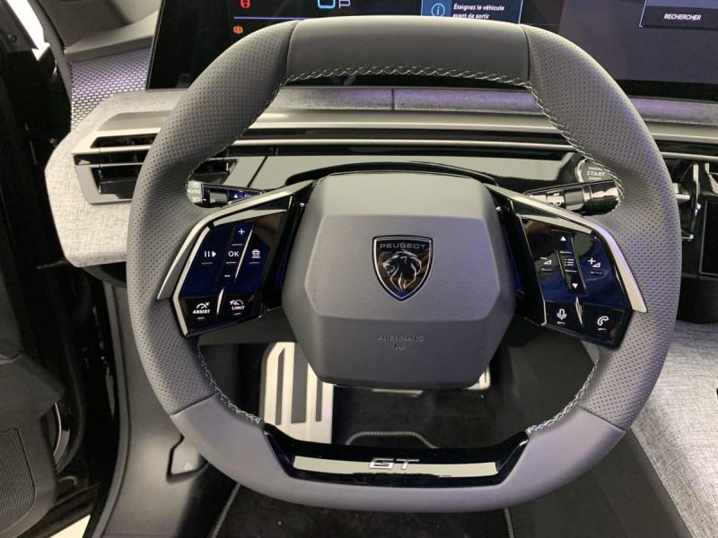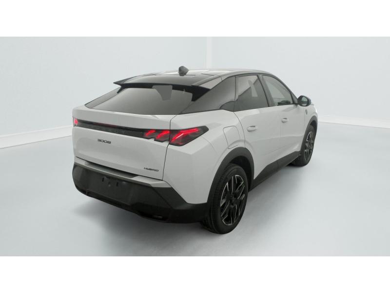 2 prises 12 V (Console centrale, coffre)4 poignées de maintien rétractables (2 à l'AV et 2 à l'AR)6 airbags: frontaux conducteur et passager auto-adaptatifs (passager neutralisable par clé), latéraux conducteur et passager AV (thorax et bassin), rideaux aux places AV et AR (tête et thorax)6 HP (2 tweeters et 2 woofers à l'AV et 2 larges bandes à l'AR)ABSAccès et démarrage mains libres Proximity 2 Télécommandes 3 boutons (verrouillage, coffre, déverrouillage)Accoudoir centralAir conditionné automatique bi-zoneAllumage automatique des pharesBanquette AR avec dossier rabattable 40/20/40Boîte de vitesse automatique, séquentielle (6 rapports)Commutation adaptative des projecteursCommutation automatique des feux de routeContrôle de tractionDétection de sous-gonflage indirecteDirection assistéeDrive Assist - Régulateur de vitesse adaptatif avec fonction Stop & GoEclairage d'ambiance indirect, jour & nuit sur la planche de bord, les panneaux de portes AV et sous l'écran panoramique 21'', associé aux modes de conduite, personnalisable en 8 couleursEclairage intérieur Miroirs de courtoisie conducteur et passager occultables éclairés à LEDEléments de style éxterieur Bandeau entre les projecteurs Noir laqué avec logo 3008. Calandre couleur caisse, écopes latérales Noir laqué, décor inférieur Gris Meteor, jupe inférieure Noir grainé. Vitres AR, vitres de custode et lESP avec aide au démarrage en penteEssuie-vitre AV à déclenchement automatiqueFeux AR 3 griffes à LED 3DFeux diurnes 3 griffes à LEDFixations ISOFIX et Top Tether aux places latérales ARFrein de stationnement électriqueHabitacle et ciel de pavillon NoirHayon motorisé avec accès mains libresJantes alliage 19" diamantées BREDA Noir Orbital, vernis brillantLève-vitres AV et AR électriques séquentiels avec antipincementMonogrammes ailes AV: 'blason PEUGEOT'Monogrammes AR 3008 et HybridMonogrammes AV: blason PEUGEOT et 3008Pédalier et repose pied aluminiumPack Safety Plus : Alerte attention conducteur Régulateur / Limiteur de vitesse Reconnaissance étendue des panneaux de signalisation et préconisation de vitesse Alerte active de franchissement involontaire de ligne et bas côté Freinage d'urgence automatique avPare-brise feuilleté acoustiquePEUGEOT i-Cockpit panoramique avec écran incurvé et flottant 21'' HDPEUGEOT i-Connect Advanced Navigation 3D connectée, 4 prises USB: 1 prise USB C (Data & charge) et 1 prise USB C (Charge) à l'AV, 2 prises USB C (Charge) à l'ARPEUGEOT i-Toggles virtuels avec 10 raccourcis personnalisablesPlancher de coffre modulable 2 positionsProjecteurs PEUGEOT PIXEL LED Eclairage adaptatif, commutation automatique des feux de route, feux de route avec fonctions anti éblouissement et boostRétroviseurs extérieurs dégivrants avec réglage et rabattement électriques, éclairage de seuilSellerie tissu NEW UZIRIS embossé, accompagnement TEP Isabella, écharpe tissu RIMINI chiné, surpiqûres Iced ClaySeuil de portes AV inox avec lettrage PEUGEOTSiège conducteur à réglage lombaire manuelSièges AV à réglage en hauteur manuelSièges AV chauffantsToit et becquet AR Black DiamondVisiopark 1 Caméra de recul & aide au stationnement AV et AR, graphique et sonoreVitres AV électriquesVolant chauffantVolant compact, cuir fleur lisse et perforé avec commandes intégrées Noir Laqué, décors Cast Iron, surpiqûres Iced Clay, insert Noir laqué avec badge ‘GT’