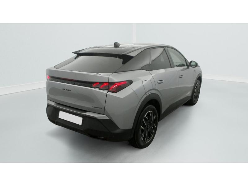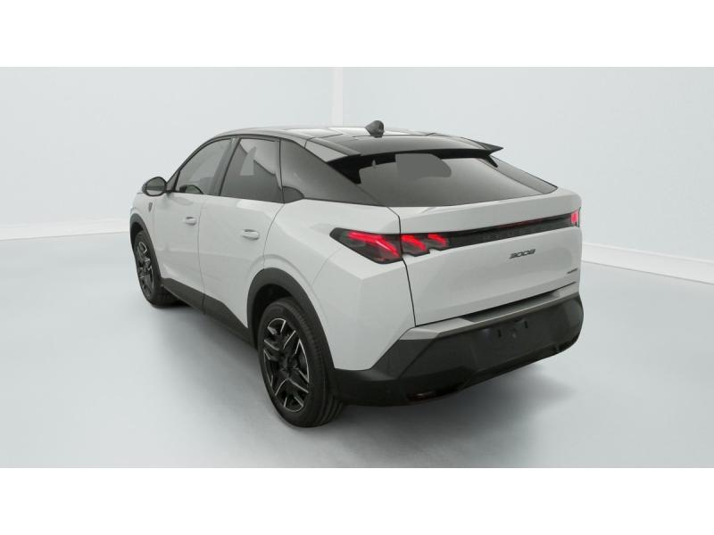 2 prises 12 V (Console centrale, coffre)4 poignées de maintien rétractables (2 à l'AV et 2 à l'AR)6 airbags: frontaux conducteur et passager auto-adaptatifs (passager neutralisable par clé), latéraux conducteur et passager AV (thorax et bassin), rideaux aux places AV et AR (tête et thorax)6 HP (2 tweeters et 2 woofers à l'AV et 2 larges bandes à l'AR)ABSAccès et démarrage mains libres Proximity 2 Télécommandes 3 boutons (verrouillage, coffre, déverrouillage)Accoudoir centralAir conditionné automatique bi-zoneAllumage automatique des pharesBanquette AR avec dossier rabattable 40/20/40Boîte de vitesse automatique, séquentielle (6 rapports)Commutation adaptative des projecteursCommutation automatique des feux de routeContrôle de tractionDétection de sous-gonflage indirecteDirection assistéeDrive Assist - Régulateur de vitesse adaptatif avec fonction Stop & GoEclairage d'ambiance indirect, jour & nuit sur la planche de bord, les panneaux de portes AV et sous l'écran panoramique 21'', associé aux modes de conduite, personnalisable en 8 couleursEclairage intérieur Miroirs de courtoisie conducteur et passager occultables éclairés à LEDEléments de style éxterieur Bandeau entre les projecteurs Noir laqué avec logo 3008. Calandre couleur caisse, écopes latérales Noir laqué, décor inférieur Gris Meteor, jupe inférieure Noir grainé. Vitres AR, vitres de custode et lESP avec aide au démarrage en penteEssuie-vitre AV à déclenchement automatiqueFeux AR 3 griffes à LED 3DFeux diurnes 3 griffes à LEDFixations ISOFIX et Top Tether aux places latérales ARFrein de stationnement électriqueHabitacle et ciel de pavillon NoirHayon motorisé avec accès mains libresJantes alliage 19" diamantées BREDA Noir Orbital, vernis brillantLève-vitres AV et AR électriques séquentiels avec antipincementMonogrammes ailes AV: 'blason PEUGEOT'Monogrammes AR 3008 et HybridMonogrammes AV: blason PEUGEOT et 3008Pédalier et repose pied aluminiumPack Safety Plus : Alerte attention conducteur Régulateur / Limiteur de vitesse Reconnaissance étendue des panneaux de signalisation et préconisation de vitesse Alerte active de franchissement involontaire de ligne et bas côté Freinage d'urgence automatique avPare-brise feuilleté acoustiquePEUGEOT i-Cockpit panoramique avec écran incurvé et flottant 21'' HDPEUGEOT i-Connect Advanced Navigation 3D connectée, 4 prises USB: 1 prise USB C (Data & charge) et 1 prise USB C (Charge) à l'AV, 2 prises USB C (Charge) à l'ARPEUGEOT i-Toggles virtuels avec 10 raccourcis personnalisablesPlancher de coffre modulable 2 positionsProjecteurs PEUGEOT PIXEL LED Eclairage adaptatif, commutation automatique des feux de route, feux de route avec fonctions anti éblouissement et boostRétroviseurs extérieurs dégivrants avec réglage et rabattement électriques, éclairage de seuilSellerie tissu NEW UZIRIS embossé, accompagnement TEP Isabella, écharpe tissu RIMINI chiné, surpiqûres Iced ClaySeuil de portes AV inox avec lettrage PEUGEOTSiège conducteur à réglage lombaire manuelSièges AV à réglage en hauteur manuelSièges AV chauffantsToit et becquet AR Black DiamondVisiopark 1 Caméra de recul & aide au stationnement AV et AR, graphique et sonoreVitres AV électriquesVolant chauffantVolant compact, cuir fleur lisse et perforé avec commandes intégrées Noir Laqué, décors Cast Iron, surpiqûres Iced Clay, insert Noir laqué avec badge ‘GT’