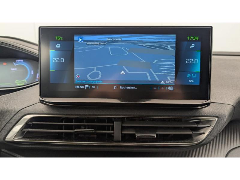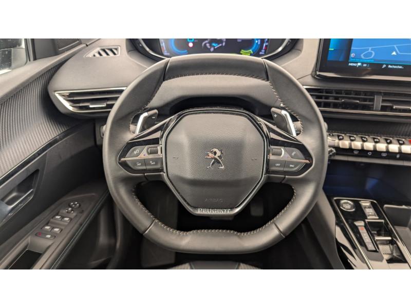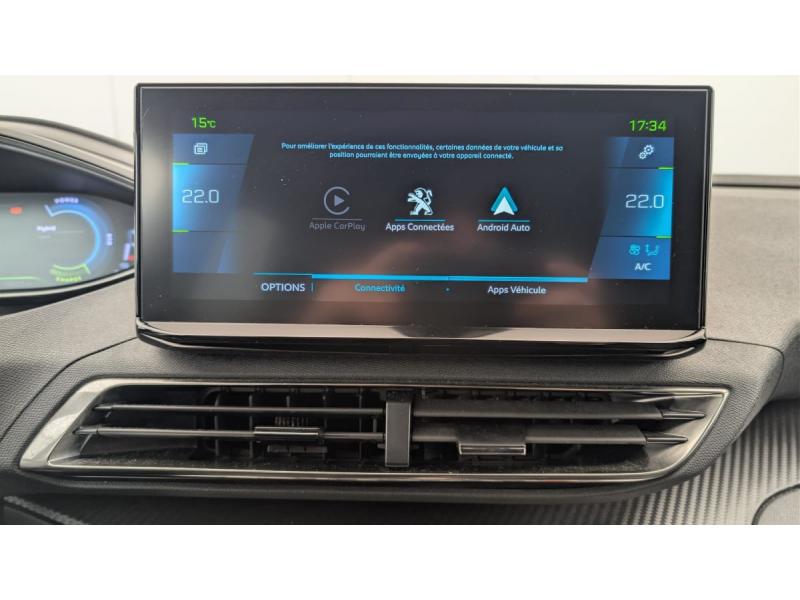6 airbags (Frontaux adaptatifs, latéraux AV, rideaux AV/AR)Accès et démarrage mains libresAccoudoir central AV à ouverture papillon, avec compartiment de rangement éclairé et réfrigérableAir conditionné automatique bi-zone avec aérateurs aux places ARAppuis-tête à sécurité optimisée réglables en hauteur (conducteur, passager et AR x3)Avertisseur de temps de conduiteAvertisseur sonore audible depuis l'extérieur pour la sécurité piétonsBanquette AR rabattable 1/3 - 2/3 avec accoudoir centralCâble de recharge T2 mode 2 (10 A / 2,3 kW)Calandre á damiers chromésCoques de rétroviseurs extérieurs Noir Perla NeraDétection de sous-gonflage indirecteDirection assistée électrique, colonne de direction réglable en hauteur et profondeur (mécanique)Enjoliveur d'arc de pavillon en Inox BrillantEnjoliveurs d'ailes AV chromésFeux AR à LED avec effet 3D, clignotants à défilementFixations ISOFIX (passager AV et aux places latérales AR)Fonction "Mirror Screen" (Apple CarPlay / Android Auto )Frein de stationnement électrique avec aide au démarrage en pente et serrage automatiqueGarnissage TEP avec Tissu Colyn MistralKit de dépannage de pneumatiqueLève-vitres AV/AR électriques et séquentiels avec antipincementNavigation 3D connectée avec écran tactile capacitif 10" HDPack City : Aide graphique et sonore au stationnement AR Visiopark 1 : caméra de recul avec restitution sur l'écran tactile d'une vue AR et d'une vue de dessus de l'environnement AR du véhiculePack Safety Plus : Alerte Risque de Collision (Distance Alert) Alerte attention conducteur Commutation automatique des feux de route / feux de croisement Alerte active de franchissement involontaire de ligne et bas côté Freinage d'urgence automatique avec caméra & radarPack Visibilité : Eclairage d'accompagnement automatique Allumage automatique des feux de croisement Essuie-vitre AV à déclenchement automatiquePares-soleil avec miroirs de courtoisie éclairésPassages de roues rapportés Noir MatPEUGEOT Connect SOSPeugeot i-Cockpit avec combiné tête haute numérique, volant compact multi-fonctionsPlafonniers AV/AR à LED avec 2 spots de lecturePlancher de coffre fixe avec articulation pour accès au coffre de rangement du câble de rechargePoches/filets aumonières au dos des sièges AVPrise 12 V (x3 : zone connectique, AR de console et coffre)Projecteurs "Peugeot LED Technology" avec feux diurnes à LED sous projecteursRétroviseur intérieur photosensibleRétroviseurs extérieurs dégivrants avec réglage et rabattement électriquesReconnaissance étendue des panneaux de signalisationSécurité enfants électrique des vitres ARSélecteur de modes de conduite (Electric, Hybrid, Sport)Sièges AV réglables en hauteurTeintes métalliséesTrappe de recharge électrique avec indicateur d'état de chargeVitres latérales AR et lunette AR chauffante surteintées