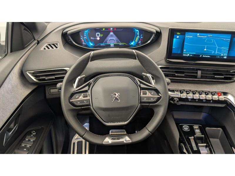 6 airbags (Frontaux adaptatifs, latéraux AV, rideaux AV/AR)Accès et démarrage mains libresAccoudoir central AV à ouverture papillon, avec compartiment de rangement éclairé et réfrigérableAir conditionné automatique bi-zone avec aérateurs aux places ARAppuis-tête à sécurité optimisée réglables en hauteur (conducteur, passager et AR x3)Avertisseur de temps de conduiteAvertisseur sonore audible depuis l'extérieur pour la sécurité piétonsBadge "HYBRID" sur ailes AV et volet de coffreBanquette AR rabattable 1/3 - 2/3 avec accoudoir central, trappe à skis et commandes de rabattement depuis le coffreBarres de toit longitudinales en aluminiumCâble de recharge T2 mode 2 (10 A / 2,3 kW)Calandre avec design évolutif chroméCanules d'echappement de style chroméesCommandes de lève-vitres avec inserts chromésContrôle de la charge de la batterie à distanceCoques de rétroviseurs extérieurs Noir Perla NeraDétection de sous-gonflage indirecteEnjoliveurs d'ailes AV chromésEssuie-vitre AV avec système de lavage "Magic Wash"Feux AR à LED avec effet 3D, clignotants à défilementFixations ISOFIX (passager AV et aux places latérales AR)Fonction "Mirror Screen" (Apple CarPlay / Android Auto )Frein de stationnement électrique avec aide au démarrage en pente et serrage automatiqueGarnissage Tissu BELOMKA / TEPHabitacle et ciel de pavillon Noir MistralIndicateur de rapport conseilléJantes alliage 18" diamantées DETROIT bi-ton Noir Onyx brillantKit de dépannage de pneumatiqueLécheurs de vitres, joncs de vitres latérales en Inox BrillantLève-vitres AV/AR électriques et séquentiels avec antipincementNavigation 3D connectée avec écran tactile capacitif 10" HD Avec reconnaissance vocale, cartographie Europe, services de Navigation connectée TomTomPédalier et repose-pied conducteur en aluminiumPack City 1 : Aide graphique et sonore au stationnement AV Aide graphique et sonore au stationnement AR Visiopark 1 : caméra de recul avec restitution sur l'écran tactile d'une vue AR et d'une vue de dessus de l'environnement AR du véhiculePack Drive Assist Plus : Régulateur de vitesse adaptatif avec fonction Stop&Go Aide au maintien de la position dans la voie (Lane Positioning Assist)Pack Eclairage d'ambiance : Eclairage à LED des caves à pied, éclairage d'ambiance à LED sur panneaux de portes AVPack Safety Plus : Alerte Risque de Collision (Distance Alert) Alerte attention conducteur Commutation automatique des feux de route / feux de croisement Alerte active de franchissement involontaire de ligne et bas côté Freinage d'urgence automatique avec caméra & radarPack Visibilité : Eclairage d'accompagnement automatique Allumage automatique des feux de croisement Essuie-vitre AV à déclenchement automatiquePares-soleil avec miroirs de courtoisie éclairésPEUGEOT Connect SOS & Assistance et TeleservicesPeugeot i-Cockpit avec combiné tête haute numérique, volant compact multi-fonctionsPlafonniers AV/AR à LED avec 2 spots de lecturePrise 12 V (x3 : zone connectique, AR de console et coffre)Prises USB de charge (x2) au 2ème rangProjecteurs "Peugeot Full LED Technology" avec correction automatique de site, fonction Eclairage Virage Statique,"Foggy Mode" et feux diurnes à LED sous projecteursRétroviseur intérieur photosensible sans cadreRétroviseurs extérieurs dégivrants avec réglage et rabattement électriques, éclairage d'accueil à LED, témoin de surveillance d'angles mortsReconnaissance étendue des panneaux de signalisationSélecteur de modes de conduite (Electric, Hybrid, Sport)Siège conducteur avec réglage lombaireSièges AV réglables en hauteurToggle Switches chromés (touches piano d'activation des fonctions de l'écran tactile)Toit "Black Diamond"Trappe de recharge électrique avec indicateur d'état de chargeVitres latérales AR et lunette AR chauffante surteintéesVitres latérales AV feuilletées acoustiquesVolant cuir fleur perforé Mistral avec bagues chromées et badge GT