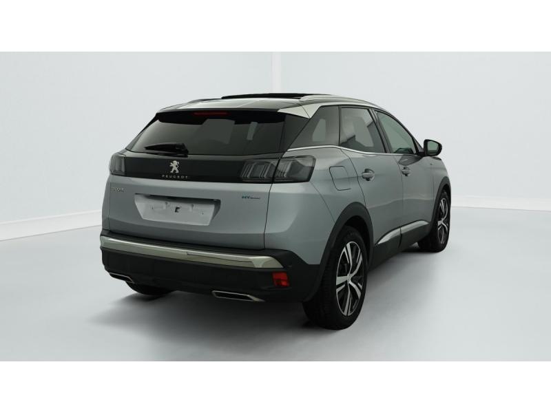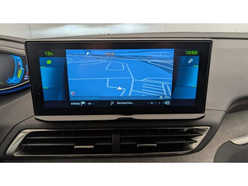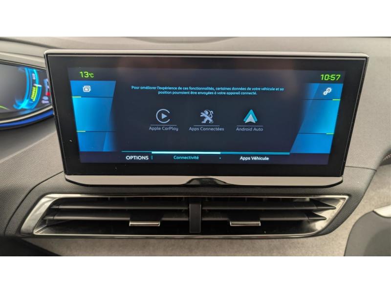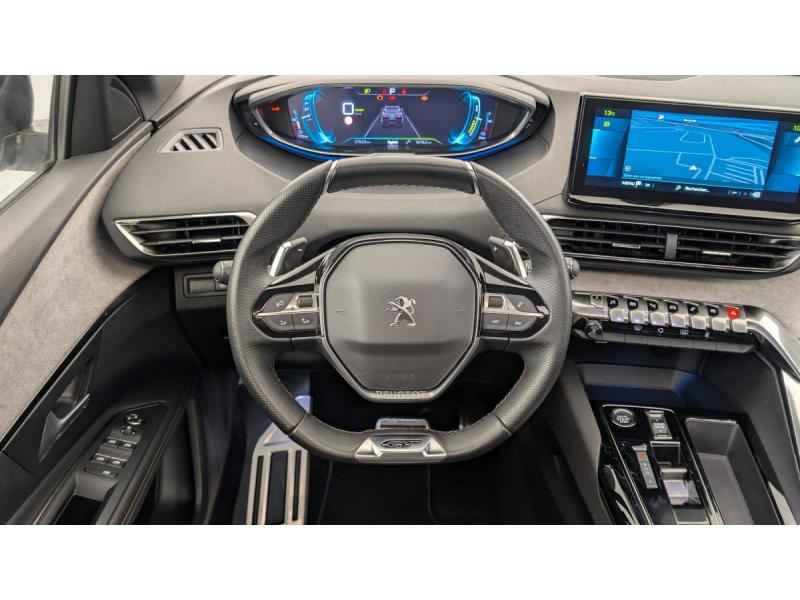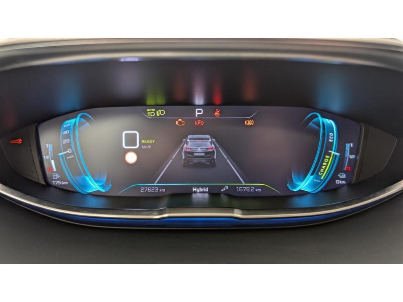 6 airbags (Frontaux adaptatifs, latéraux AV, rideaux AV/AR)Accès et démarrage mains libresAccoudoir central AV à ouverture papillon, avec compartiment de rangement éclairé et réfrigérableAir conditionné automatique bi-zone avec aérateurs aux places ARAppuis-tête à sécurité optimisée réglables en hauteur (conducteur, passager et AR x3)Avertisseur de temps de conduiteAvertisseur sonore audible depuis l'extérieur pour la sécurité piétonsBanquette AR rabattable 1/3 - 2/3 avec accoudoir central, trappe à skis et commandes de rabattement depuis le coffreBarres de toit longitudinales en aluminiumCâble de recharge T2 mode 2 (10 A / 2,3 kW)Calandre avec design évolutif chroméCanules d'echappement de style chroméesCommandes de lève-vitres avec inserts chromésCoques de rétroviseurs extérieurs Noir Perla NeraDécors de planche de bord et panneaux de portes Alcantara Gris GrevalDétection de sous-gonflage indirecteDirection assistée électrique, colonne de direction réglable en hauteur et profondeur (mécanique)Enjoliveur d'arc de pavillon en Inox BrillantEnjoliveurs d'ailes AV chromésEssuie-vitre AV avec système de lavage "Magic Wash"Fixations ISOFIX (passager AV et aux places latérales AR)Fonction "Mirror Screen" (Apple CarPlay / Android Auto )Frein de stationnement électrique avec aide au démarrage en pente et serrage automatiqueGarnissage Tissu BELOMKA / TEPIndicateur de rapport conseilléJantes alliage 18" diamantées DETROIT bi-ton Noir Onyx brillantKit de dépannage de pneumatiqueLécheurs de vitres, joncs de vitres latérales en Inox BrillantLève-vitres AV/AR électriques et séquentiels avec antipincementNavigation 3D connectée avec écran tactile capacitif 10" HD Avec reconnaissance vocale, cartographie EuropePédalier et repose-pied conducteur en aluminiumPack City 1 : Aide graphique et sonore au stationnement AV Pack CityPack Drive Assist Plus : Régulateur de vitesse adaptatif avec fonction Stop&Go Aide au maintien de la position dans la voie (Lane Positioning Assist)Pack Eclairage d'ambiance : Eclairage à LED des caves à pied, éclairage d'ambiance à LED sur panneaux de portes AVPack Safety Plus : Alerte attention conducteur Commutation automatique des feux de route / feux de croisement Alerte active de franchissement involontaire de ligne et bas côté Pack Safety avec Distance alert Système de surveillance d'angle mortPack Visibilité : Eclairage d'accompagnement automatique Allumage automatique des feux de croisement Essuie-vitre AV à déclenchement automatiquePares-soleil avec miroirs de courtoisie éclairésPassages de roues rapportés Noir MatPEUGEOT Connect SOSPeugeot i-Cockpit avec combiné tête haute numérique, volant compact multi-fonctionsPlafonniers AV/AR à LED avec 2 spots de lecturePlancher de coffre fixe avec articulation pour accès au coffre de rangement du câble de rechargePoches/filets aumonières au dos des sièges AVPrise 12 V (x3 : zone connectique, AR de console et coffre)Prises USB de charge (x2) au 2ème rangProjecteurs "Peugeot Full LED Technology" avec correction automatique de site, fonction Eclairage Virage Statique,"Foggy Mode" et feux diurnes à LED sous projecteursRétroviseur intérieur photosensible sans cadreRétroviseurs extérieurs dégivrants avec réglage et rabattement électriques, éclairage d'accueil à LED, témoin de surveillance d'angles mortsReconnaissance étendue des panneaux de signalisationSécurité enfants électrique des vitres ARSélecteur de modes de conduite (Electric, Hybrid, Sport)Sabot de pare-chocs AV peint MétallureSiège conducteur avec réglage lombaireSièges AV réglables en hauteurToggle Switches chromés (touches piano d'activation des fonctions de l'écran tactile)Toit "Black Diamond"Trappe de recharge électrique avec indicateur d'état de chargeVitres latérales AR et lunette AR chauffante surteintéesVitres latérales AV feuilletées acoustiquesVolant cuir fleur perforé Mistral avec bagues chromées et badge GT
