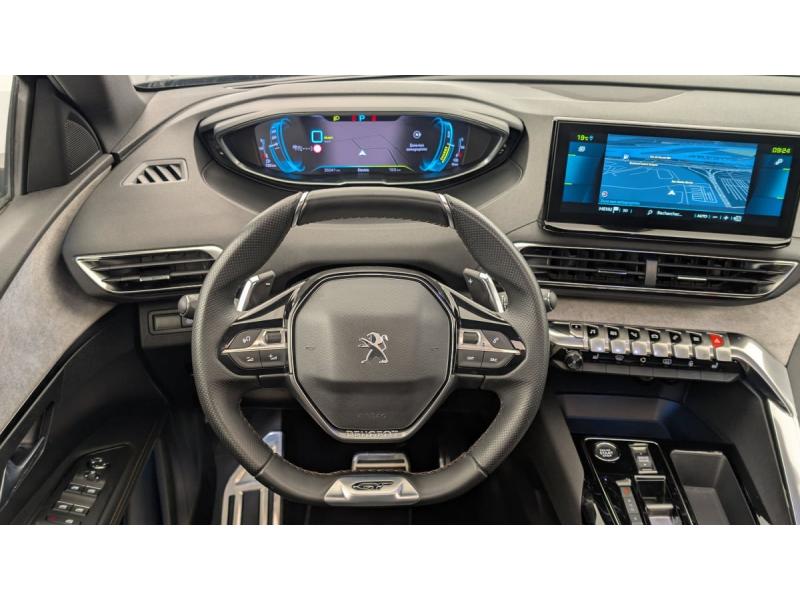 6 airbags (Frontaux adaptatifs, latéraux AV, rideaux AV/AR)Accès et démarrage mains libresAccoudoir central AV à ouverture papillon, avec compartiment de rangement éclairé et réfrigérableAir conditionné automatique bi-zone avec aérateurs aux places ARAppuis-tête à sécurité optimisée réglables en hauteur (conducteur, passager et AR x3)Avertisseur de temps de conduiteAvertisseur sonore audible depuis l'extérieur pour la sécurité piétonsBanquette AR rabattable 1/3 - 2/3 avec accoudoir central, trappe à skis et commandes de rabattement depuis le coffreBarres de toit longitudinales en aluminiumCâble de recharge T2 mode 2 (10 A / 2,3 kW)Calandre avec design évolutif chroméCanules d'echappement de style chroméesCommandes de lève-vitres avec inserts chromésCoques de rétroviseurs extérieurs Noir Perla NeraDécors de planche de bord et panneaux de portes Alcantara Gris GrevalDétection de sous-gonflage indirecteEnjoliveur d'arc de pavillon en Inox BrillantEnjoliveurs d'ailes AV chromésEssuie-vitre AV avec système de lavage "Magic Wash"Fixations ISOFIX (passager AV et aux places latérales AR)Fonction "Mirror Screen" (Apple CarPlay / Android Auto )Frein de stationnement électrique avec aide au démarrage en pente et serrage automatiqueGarnissage Tissu BELOMKA / TEPIndicateur de rapport conseilléJantes alliage 18" diamantées DETROIT bi-ton Noir Onyx brillant avec pneumatiques 225/55 R18 102 VKit de dépannage de pneumatique : compresseur 12 volts, flacon de produit de colmatage, anneau de remorquage, deux cales de roue, manivelle de frein de stationnement électriqueLécheurs de vitres, joncs de vitres latérales en Inox BrillantLève-vitres AV/AR électriques et séquentiels avec antipincementNavigation 3D connectée avec écran tactile capacitif 10" HD Avec reconnaissance vocale, cartographie EuropePédalier et repose-pied conducteur en aluminiumPack City 1 : Aide graphique et sonore au stationnement AV Aide graphique et sonore au stationnement AR Visiopark 1 : caméra de recul avec restitution sur l'écran tactile d'une vue AR et d'une vue de dessus de l'environnement AR du véhiculePack Drive Assist Plus : Régulateur de vitesse adaptatif avec fonction Stop&Go Aide au maintien de la position dans la voie (Lane Positioning Assist)Pack Eclairage d'ambiance : Eclairage à LED des caves à pied, éclairage d'ambiance à LED sur panneaux de portes AVPack Safety Plus : Alerte Risque de Collision (Distance Alert) Alerte attention conducteur Commutation automatique des feux de route / feux de croisement Alerte active de franchissement involontaire de ligne et bas côté Freinage d'urgence automatique avec caméra & radarPack Visibilité : Eclairage d'accompagnement automatique Allumage automatique des feux de croisement Essuie-vitre AV à déclenchement automatiquePares-soleil avec miroirs de courtoisie éclairésPassages de roues rapportés Noir MatPEUGEOT Connect SOSPeugeot i-Cockpit avec combiné tête haute numérique, volant compact multi-fonctionsPlafonniers AV/AR à LED avec 2 spots de lecturePlancher de coffre fixe avec articulation pour accès au coffre de rangement du câble de rechargePoches/filets aumonières au dos des sièges AVPrise 12 V (x3 : zone connectique, AR de console et coffre)Prises USB de charge (x2) au 2ème rangProjecteurs "Peugeot Full LED Technology" avec correction automatique de site, fonction Eclairage Virage Statique,"Foggy Mode" et feux diurnes à LED sous projecteursRétroviseur intérieur photosensible sans cadreRétroviseurs extérieurs dégivrants avec réglage et rabattement électriques, éclairage d'accueil à LED, témoin de surveillance d'angles mortsReconnaissance étendue des panneaux de signalisationSécurité enfants électrique des vitres ARSélecteur de modes de conduite (Electric, Hybrid, Sport, 4WD)Sabot de pare-chocs AV peint MétallureSiège conducteur avec réglage lombaireSièges AV réglables en hauteurToggle Switches chromés (touches piano d'activation des fonctions de l'écran tactile)Toit "Black Diamond"Trappe de recharge électrique avec indicateur d'état de chargeVitres latérales AR et lunette AR chauffante surteintéesVitres latérales AV feuilletées acoustiquesVolant cuir fleur perforé Mistral avec bagues chromées et badge GT