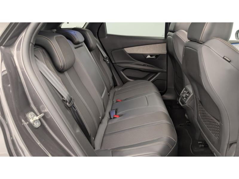 Accès et démarrage mains libresAccoudoir central AV à ouverture papillon, avec compartiment de rangementAir conditionné automatique bi-zone avec aérateurs aux places ARAirbags frontaux conducteur et passager adaptatifs (passager neutralisable par clé), airbags latéraux conducteur et passager AV.airbags rideaux de tête aux places AV/ARAppuis-tête à sécurité optimisée réglables en hauteur sur les sièges conducteur et passager AV ainsi que sur les places latérales ARBanquette rabattable 1/3 - 2/3Barres de toit longitudinalesContrôle dynamique de stabilité CDS avec antipatinage électronique ASRDétection de sous-gonflage indirecteDirection assistée électrique, colonne de direction réglable en hauteur et profondeur (mécanique)Essuie-vitre AR avec enclenchement automatique en marche AREssuie-vitre AV avec système de lavage "Magic Wash"Fonction "Mirror Screen" (Apple CarPlay / Android Auto )Frein de stationnement électrique avec aide au démarrage en penteGarnissage Tissu BELOMKA / TEPJantes alliage 18" "Detroit" bi-ton diamantées Noir OnyxKit de dépannage de pneumatiqueLève-vitres AV/AR électriques et séquentiels avec antipincementNavigation 3D connectée avec écran tactile capacitif 10" HD avec reconnaissance vocale & cartographie EuropePédalier et repose-pied conducteur en aluminiumPack Drive Assist Plus : Régulateur de vitesse adaptatif avec fonction Stop&Go Aide au maintien de la position dans la voie (Lane Positioning Assist) Active Safety Brake avec Distance AlertPack Eclairage d'ambiance : Eclairage à LED des caves à pieds AV et des bacs de portes AV LED d'ambiance dans plafonnier AVPack Safety Plus : Alerte attention conducteur Commutation automatique des feux de route / feux de croisement Alerte active de franchissement involontaire de ligne et bas côté Active Safety Brake avec Distance AlertPack Visibilité : Eclairage d'accompagnement automatique Allumage automatique des feux de croisement Essuie-vitre AV à déclenchement automatiquePEUGEOT Connect SOSPeugeot i-Cockpit avec combiné tête haute numérique haute qualité d'affichage, écran tactile capacitif 10" HD et volant compact multi-fonctionsPrise USB (dans la zone connectique)Prises USB de charge (x2) au 2ème rangProjecteurs "Peugeot Full LED Technology" avec correction automatique de site, fonction Eclairage Virage Statique,"Foggy Mode" et feux diurnes à LED prolongés dans les projecteursRétroviseur intérieur photosensible sans cadreRétroviseurs extérieurs dégivrants à réglage électriqueRétroviseurs extérieurs rabattables électriquement avec éclairage d'accueil à LEDReconnaissance étendue des panneaux de signalisationSécurité enfants électrique des vitres ARSélecteur de modes de conduite (Electric, Hybrid, Sport)Sabot de pare-chocs AV gris métalliséSiège conducteur mécanique avec réglage lombaireSièges AV mécaniques réglages en hauteurSystème d'antiblocage des roues ABS avec répartiteur électronique de freinage REF et assistance au freinage d’urgence AFUToggle Switches chromés (touches piano d'activation des fonctions de l'écran tactile)Toit "Black Diamond" (toit Noir Perla Nera)Vitres AV feuilletées acoustiquesVitres latérales AR et lunette AR surteintéesVolant cuir fleur perforé avec bagues chromées et badge GT