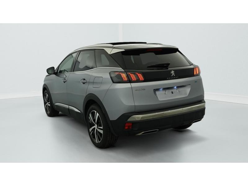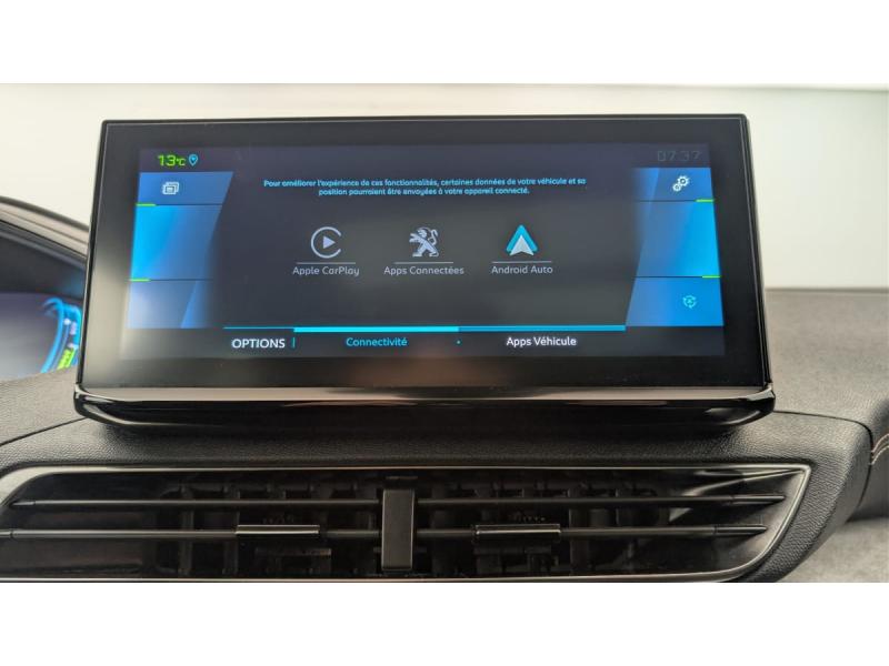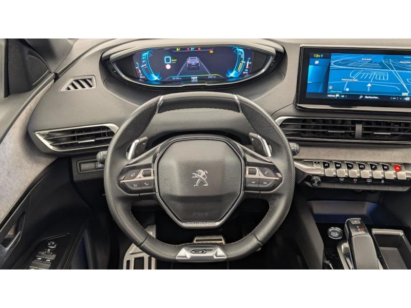Accès et démarrage mains libresAccoudoir central AV à ouverture papillon, avec compartiment de rangementAir conditionné automatique bi-zone avec aérateurs aux places ARAirbags frontaux conducteur et passager adaptatifs (passager neutralisable par clé), airbags latéraux conducteur et passager AV.airbags rideaux de tête aux places AV/ARAppuis-tête à sécurité optimisée réglables en hauteur sur les sièges conducteur et passager AV ainsi que sur les places latérales ARBanquette rabattable 1/3 - 2/3Barres de toit longitudinalesContrôle dynamique de stabilité CDS avec antipatinage électronique ASRDétection de sous-gonflage indirecteDirection assistée électrique, colonne de direction réglable en hauteur et profondeur (mécanique)Essuie-vitre AR avec enclenchement automatique en marche AREssuie-vitre AV avec système de lavage "Magic Wash"Fonction "Mirror Screen" (Apple CarPlay / Android Auto )Frein de stationnement électrique avec aide au démarrage en penteGarnissage Tissu BELOMKA / TEPJantes alliage 18" "Detroit" bi-ton diamantées Noir OnyxKit de dépannage de pneumatiqueLève-vitres AV/AR électriques et séquentiels avec antipincementNavigation 3D connectée avec écran tactile capacitif 10" HD avec reconnaissance vocale & cartographie EuropePédalier et repose-pied conducteur en aluminiumPack Drive Assist Plus : Régulateur de vitesse adaptatif avec fonction Stop&Go Aide au maintien de la position dans la voie (Lane Positioning Assist) Active Safety Brake avec Distance AlertPack Eclairage d'ambiance : Eclairage à LED des caves à pieds AV et des bacs de portes AV LED d'ambiance dans plafonnier AVPack Safety Plus : Alerte attention conducteur Commutation automatique des feux de route / feux de croisement Alerte active de franchissement involontaire de ligne et bas côté Active Safety Brake avec Distance AlertPack Visibilité : Eclairage d'accompagnement automatique Allumage automatique des feux de croisement Essuie-vitre AV à déclenchement automatiquePEUGEOT Connect SOSPeugeot i-Cockpit avec combiné tête haute numérique haute qualité d'affichage, écran tactile capacitif 10" HD et volant compact multi-fonctionsPrise USB (dans la zone connectique)Prises USB de charge (x2) au 2ème rangProjecteurs "Peugeot Full LED Technology" avec correction automatique de site, fonction Eclairage Virage Statique,"Foggy Mode" et feux diurnes à LED prolongés dans les projecteursRétroviseur intérieur photosensible sans cadreRétroviseurs extérieurs dégivrants à réglage électriqueRétroviseurs extérieurs rabattables électriquement avec éclairage d'accueil à LEDReconnaissance étendue des panneaux de signalisationSécurité enfants électrique des vitres ARSélecteur de modes de conduite (Electric, Hybrid, Sport)Sabot de pare-chocs AV gris métalliséSiège conducteur mécanique avec réglage lombaireSièges AV mécaniques réglages en hauteurSystème d'antiblocage des roues ABS avec répartiteur électronique de freinage REF et assistance au freinage d’urgence AFUToggle Switches chromés (touches piano d'activation des fonctions de l'écran tactile)Toit "Black Diamond" (toit Noir Perla Nera)Vitres AV feuilletées acoustiquesVitres latérales AR et lunette AR surteintéesVolant cuir fleur perforé avec bagues chromées et badge GT