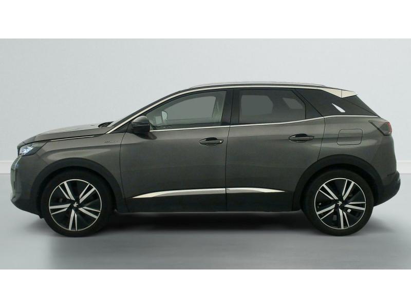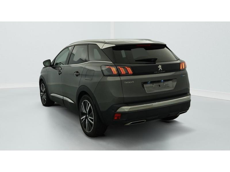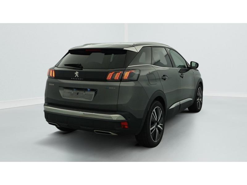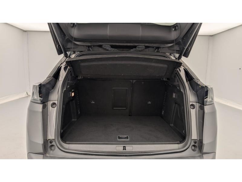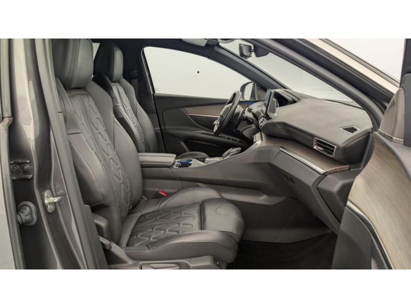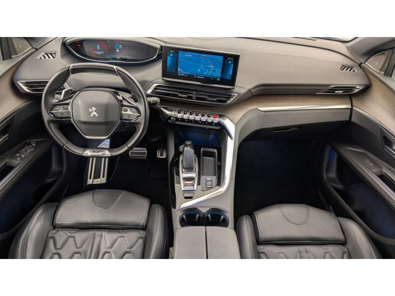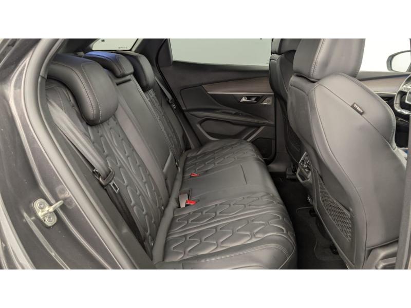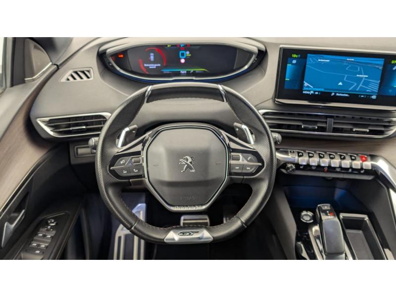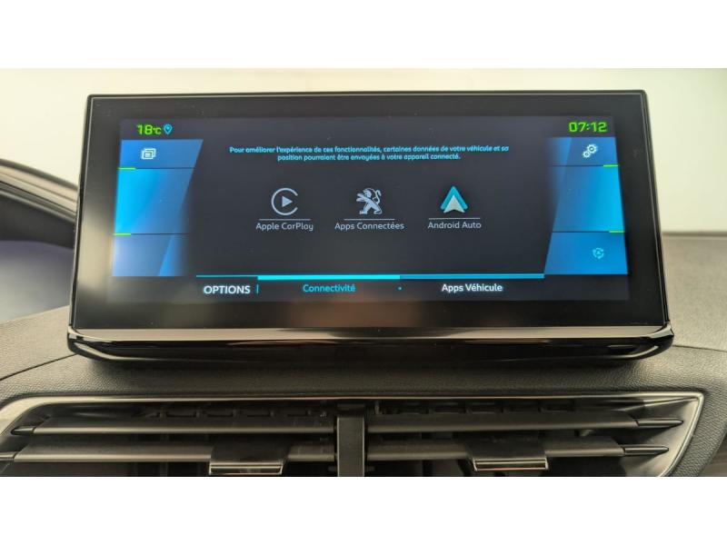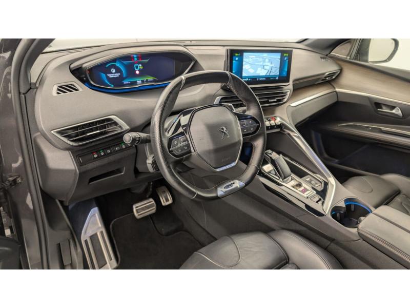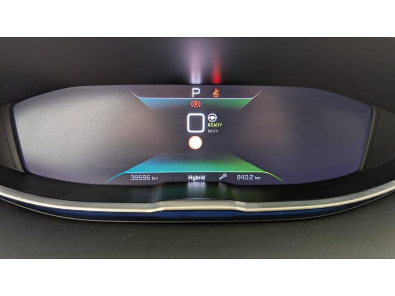"Toggle Switches" chromés (touches "piano" d'activation des fonctions de l'écran tactile)Accès et démarrage mains libresAide graphique et sonore au stationnement ARAir conditionné automatique bi-zone avec aérateurs aux places ARAirbags frontaux conducteur et passager adaptatifs (passager neutralisable par clé), airbags latéraux conducteur et passager AV.airbags rideaux de tête aux places AV/ARBanquette rabattable 1/3 - 2/3Barres de toit longitudinalesContrôle dynamique de stabilité CDS avec antipatinage électronique ASRDétection de sous-gonflage indirecteDirection assistée électrique, colonne de direction réglable en hauteur et profondeur (mécanique)Essuie-vitre AR avec enclenchement automatique en marche AREssuie-vitre AV avec système de lavage "Magic Wash"Fixations ISOFIX aux 3 places AR en rang 2Fonction "Mirror Screen" (Apple CarPlay / Android Auto )Frein de stationnement électrique avec aide au démarrage en penteHayon motorisé avec accès mains libresJantes alliage 19" 'San Francisco' bi-ton diamantées Noir Onyx matKit de dépannage de pneumatiqueLève-vitres AV/AR électriques et séquentiels avec antipincementLunette AR chauffante avec antennes sérigraphiéesMiroirs de courtoisie éclairésNavigation 3D connectée avec écran tactile capacitif 10" HD Avec reconnaissance vocalePédalier et repose-pied conducteur en aluminiumPack City 2 : Visiopark 2: caméras AV et de recul avec restitution sur l'écran tactile d'une vue AV ou AR et d'une vue de dessus de l'environnement du véhicule sur 360° Park Assist : assistance active au stationnement en créneau ou en bataillePack Drive Assist Plus : Régulateur de vitesse adaptatif avec fonction Stop&Go Aide au maintien de la position dans la voie (Lane Positioning Assist) Active Safety Brake avec Distance AlertPack Safety Plus : Alerte attention conducteur Commutation automatique des feux de route / feux de croisement Alerte active de franchissement involontaire de ligne et bas côté Active Safety Brake avec Distance Alert Système de surveillance d'angle mortPack Visibilité : Eclairage d'accompagnement automatique Allumage automatique des feux de croisement Essuie-vitre AV à déclenchement automatiquePEUGEOT Connect SOSPeugeot i-Cockpit avec combiné tête haute numérique haute qualité d'affichage, écran tactile capacitif 10" HD et volant compact multi-fonctionsPrise USB (dans la zone connectique)Projecteurs "Peugeot Full LED Technology" avec correction automatique de site, fonction Eclairage Virage Statique,"Foggy Mode" et feux diurnes à LED prolongés dans les projecteursRétroviseur intérieur photosensible sans cadreRétroviseurs extérieurs dégivrants à réglage électriqueRétroviseurs extérieurs rabattables électriquement avec éclairage d'accueil à LEDReconnaissance étendue des panneaux de signalisationSécurité enfants électrique des vitres ARSélecteur de modes de conduite (Electric, Hybrid, Sport)Sièges AV chauffantsSystème d'antiblocage des roues ABS avec répartiteur électronique de freinage REF et assistance au freinage d’urgence AFUSystème HI-FI Premium FOCALToit "Black Diamond" (toit Noir Perla Nera)Verrouillage automatique de tous les ouvrants en roulantVitres AV feuilletées acoustiquesVitres latérales AR et lunette AR surteintéesVolant cuir fleur perforé avec bagues chromées et badge GT