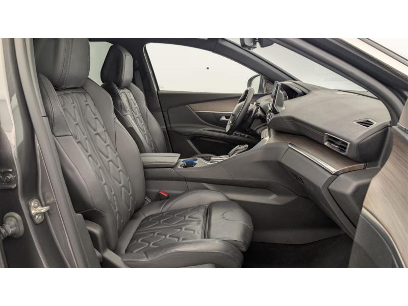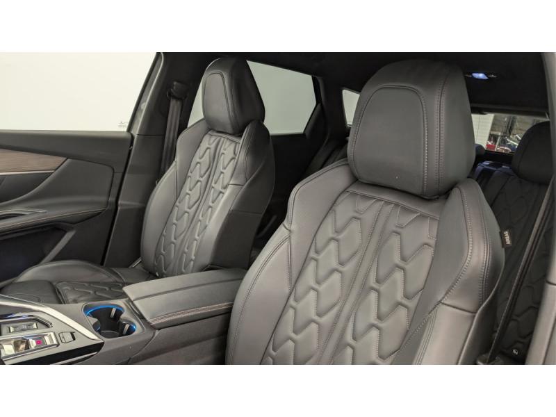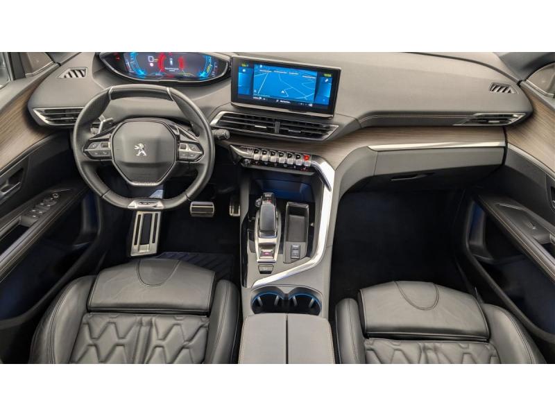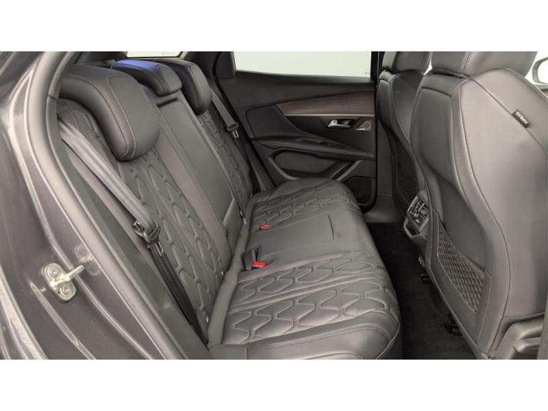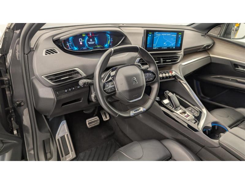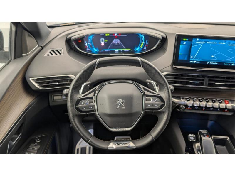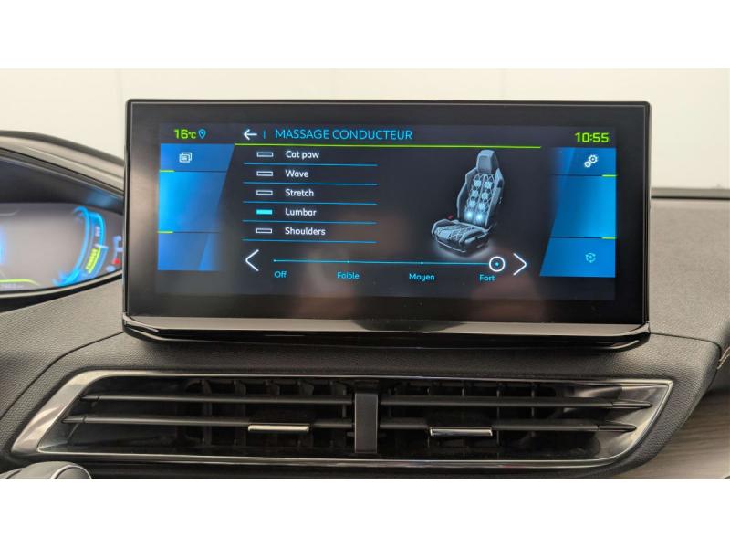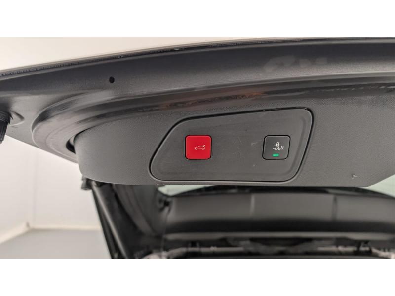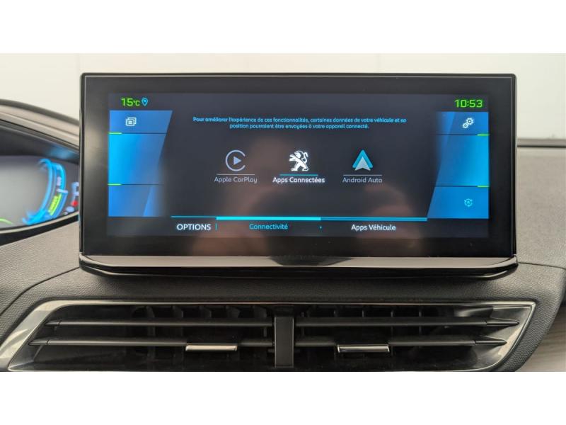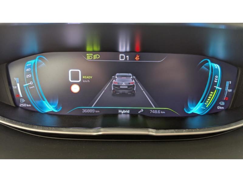 "Toggle Switches" chromés (touches "piano" d'activation des fonctions de l'écran tactile)Accès et démarrage mains libresAide graphique et sonore au stationnement ARAir conditionné automatique bi-zone avec aérateurs aux places ARAirbags frontaux conducteur et passager adaptatifs (passager neutralisable par clé), airbags latéraux conducteur et passager AV.airbags rideaux de tête aux places AV/ARBanquette rabattable 1/3 - 2/3Barres de toit longitudinalesContrôle dynamique de stabilité CDS avec antipatinage électronique ASRDétection de sous-gonflage indirecteDirection assistée électrique, colonne de direction réglable en hauteur et profondeur (mécanique)Essuie-vitre AR avec enclenchement automatique en marche AREssuie-vitre AV avec système de lavage "Magic Wash"Fixations ISOFIX aux 3 places AR en rang 2Fonction "Mirror Screen" (Apple CarPlay / Android Auto )Frein de stationnement électrique avec aide au démarrage en penteHayon motorisé avec accès mains libresJantes alliage 19" 'San Francisco' bi-ton diamantées Noir Onyx matKit de dépannage de pneumatiqueLève-vitres AV/AR électriques et séquentiels avec antipincementLunette AR chauffante avec antennes sérigraphiéesMiroirs de courtoisie éclairésNavigation 3D connectée avec écran tactile capacitif 10" HD Avec reconnaissance vocalePédalier et repose-pied conducteur en aluminiumPack City 2 : Visiopark 2: caméras AV et de recul avec restitution sur l'écran tactile d'une vue AV ou AR et d'une vue de dessus de l'environnement du véhicule sur 360° Park Assist : assistance active au stationnement en créneau ou en bataillePack Drive Assist Plus : Régulateur de vitesse adaptatif avec fonction Stop&Go Aide au maintien de la position dans la voie (Lane Positioning Assist) Active Safety Brake avec Distance AlertPack Safety Plus : Alerte attention conducteur Commutation automatique des feux de route / feux de croisement Alerte active de franchissement involontaire de ligne et bas côté Active Safety Brake avec Distance Alert Système de surveillance d'angle mortPack Visibilité : Eclairage d'accompagnement automatique Allumage automatique des feux de croisement Essuie-vitre AV à déclenchement automatiquePEUGEOT Connect SOSPeugeot i-Cockpit avec combiné tête haute numérique haute qualité d'affichage, écran tactile capacitif 10" HD et volant compact multi-fonctionsPrise USB (dans la zone connectique)Projecteurs "Peugeot Full LED Technology" avec correction automatique de site, fonction Eclairage Virage Statique,"Foggy Mode" et feux diurnes à LED prolongés dans les projecteursRétroviseur intérieur photosensible sans cadreRétroviseurs extérieurs dégivrants à réglage électriqueRétroviseurs extérieurs rabattables électriquement avec éclairage d'accueil à LEDReconnaissance étendue des panneaux de signalisationSécurité enfants électrique des vitres ARSélecteur de modes de conduite (Electric, Hybrid, Sport)Sièges AV chauffantsSystème d'antiblocage des roues ABS avec répartiteur électronique de freinage REF et assistance au freinage d’urgence AFUSystème HI-FI Premium FOCALToit "Black Diamond" (toit Noir Perla Nera)Verrouillage automatique de tous les ouvrants en roulantVitres AV feuilletées acoustiquesVitres latérales AR et lunette AR surteintéesVolant cuir fleur perforé avec bagues chromées et badge GT