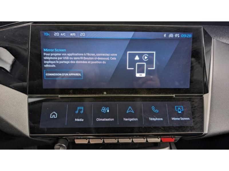 Accoudoir central AV avec compartiment de rangementAide au stationnement AV/ ARAir conditionné automatique bi-zoneAirbags frontaux conducteur et passager adaptatifs (passager neutralisable par clé), airbags latéraux conducteur et passager AV, airbags rideaux de tête aux places AV et ARAllumage automatique des feux de croisementBanquette AR rabattable 1/3-2/3Commutation automatique des feux de routeDémarrage mains libresDétection de sous gonflageDirection assistée électriqueEcran central tactile 10"ESP avec fonction Hill Assist (Aide au démarrage en pente)Essuie-vitre AV à déclenchement automatiqueFeux diurnes à LED sous projecteurs nouvelle signature PeugeotFixations ISOFIX aux 2 places latérales AR (Top Tether)Fonction Mirror Screen (Apple CarPlay/Android Auto) sans filFrein de stationnement électriqueGarnissage tri-matières TEP/Tissu Falgo, surpiqûres BleuJantes alliage 16"Kit de dépannage de pneumatiqueLève-vitres électriques AV et AR et séquentiels avec anti-pincementNavigation connectée avec écran central tactile 10'' et écran avec iToggles virtuels personnalisables. Reconnaissance vocale en langage naturel.Pack Drive Assist : Régulateur de vitesse adaptatif avec fonction 30 km/hPack Safety Plus : Active Safety Brake piloté par caméra et radarPare-brise teinté feuilleté acoustiquePeugeot i-Cockpit avec combiné d'instrumentation numérique 10'' personnalisableProjecteurs Peugeot LEDRéglage lombaire du siège conducteurRétroviseur intérieur photosensibleRétroviseurs extérieurs électriques, dégivrants et rabattables électriquement avec répétiteurs de feux clignotants à LEDReconnaissance étendue des panneaux de signalisationSélecteur mode de conduite EcoSiège conducteur réglable en hauteurSiège passager réglable en hauteurSystème Start & StopVitres latérales AR et lunette AR surteintéesVolant avec réglage manuel en hauteur et en profondeurVolant croûte de cuir