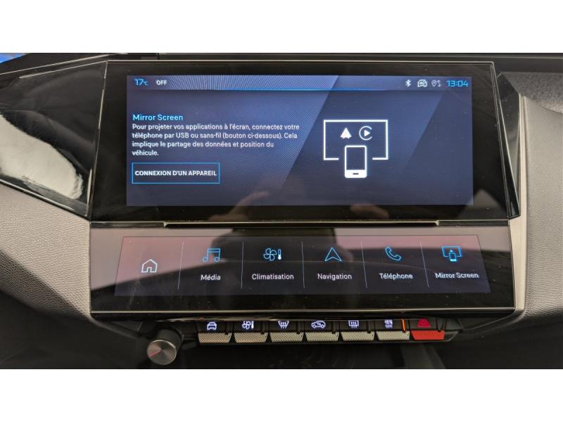 ABSAccoudoir central AV avec compartiment de rangementActive Safety Brake (freinage automatique d'urgence)Aide au stationnement ARAir conditionné automatique bi-zoneAirbags frontaux conducteur et passager adaptatifs (passager neutralisable par clé), airbags latéraux conducteur et passager AV.airbags rideaux de tête aux places AV/ARAlerte active de franchissement involontaire de ligne et bas côtéAlerte attention conducteurAllumage automatique des feux de croisementBanquette AR rabattable 40 - 20 - 40 déverrouillable depuis le coffreBoîte de vitesse automatique, séquentielle (6 rapports)Ceintures de sécurité AR 3 points à enrouleur (x3) avec prétensionneurs et limiteurs d'effort aux places latéralesCeintures de sécurité AV 3 points à enrouleur, avec prétensionneurs et limiteurs d'effortCommutation automatique des feux de routeContrôle de tractionDétection de sous gonflageDirection assistée électriqueEcran central tactile 10"ESP avec fonction Hill Assist (Aide au démarrage en pente)Essuie-vitre AV à déclenchement automatiqueFeux diurnes à LED sous projecteurs nouvelle signature PeugeotFixations pour 2 sièges enfants ISOFIX, aux places AR, inclus Top TetherFonction Mirror Screen (Apple CarPlay/Android Auto) sans filFrein de stationnement électriqueGarnissage tri-matières TEP/Tissu Falgo, surpiqûres BleuJantes alliage 17" Halong diamantéesLève-vitres électriques AV/ AR et séquentiels avec anti-pincementPack Drive Assist : Régulateur de vitesse adaptatif avec fonction Stop&GoPack Safety Plus : Active Safety Brake piloté par caméra et radarPare-brise teinté feuilleté acoustiquePeugeot i-Cockpit avec instrumentation numérique 10" personnalisableProjecteurs Peugeot LEDRéglage lombaire du siège conducteurRétroviseur intérieur photosensibleRétroviseurs extérieurs électriques, dégivrants et rabattables électriquement, avec répétiteurs de feux clignotants à LEDRétroviseurs extérieurs réglables électriquementReconnaissance étendue des panneaux de signalisationSélecteur mode de conduite Eco et SportSièges AV réglables en hauteurVitres AV électriquesVitres de custode AR et lunette AR chauffante temporisée surteintéesVitres latérales AR surteintéesVolant avec réglage manuel en hauteur et en profondeurVolant croûte de cuir