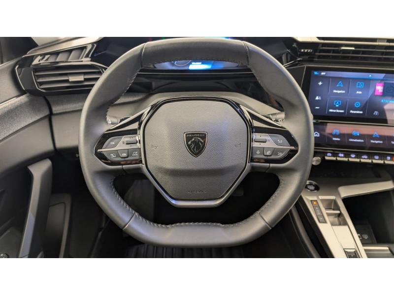 ABSAccoudoir central AV avec compartiment de rangementActive Safety Brake (freinage automatique d'urgence)Aide au stationnement ARAir conditionné automatique bi-zoneAirbags frontaux conducteur et passager adaptatifs (passager neutralisable par clé), airbags latéraux conducteur et passager AV.airbags rideaux de tête aux places AV/ARAlerte active de franchissement involontaire de ligne et bas côtéAlerte attention conducteurAllumage automatique des feux de croisementBanquette AR rabattable 40 - 20 - 40 déverrouillable depuis le coffreBoîte de vitesse automatique, séquentielle (6 rapports)Ceintures de sécurité AR 3 points à enrouleur (x3) avec prétensionneurs et limiteurs d'effort aux places latéralesCeintures de sécurité AV 3 points à enrouleur, avec prétensionneurs et limiteurs d'effortCommutation automatique des feux de routeContrôle de tractionDétection de sous gonflageDirection assistée électriqueEcran central tactile 10"ESP avec fonction Hill Assist (Aide au démarrage en pente)Essuie-vitre AV à déclenchement automatiqueFeux diurnes à LED sous projecteurs nouvelle signature PeugeotFixations pour 2 sièges enfants ISOFIX, aux places AR, inclus Top TetherFonction Mirror Screen (Apple CarPlay/Android Auto) sans filFrein de stationnement électriqueGarnissage tri-matières TEP/Tissu Falgo, surpiqûres BleuJantes alliage 17" Halong diamantéesLève-vitres électriques AV/ AR et séquentiels avec anti-pincementPack Drive Assist : Régulateur de vitesse adaptatif avec fonction Stop&GoPack Safety Plus : Active Safety Brake piloté par caméra et radarPare-brise teinté feuilleté acoustiquePeugeot i-Cockpit avec instrumentation numérique 10" personnalisableProjecteurs Peugeot LEDRéglage lombaire du siège conducteurRétroviseur intérieur photosensibleRétroviseurs extérieurs électriques, dégivrants et rabattables électriquement, avec répétiteurs de feux clignotants à LEDRétroviseurs extérieurs réglables électriquementReconnaissance étendue des panneaux de signalisationSélecteur mode de conduite Eco et SportSièges AV réglables en hauteurVitres AV électriquesVitres de custode AR et lunette AR chauffante temporisée surteintéesVitres latérales AR surteintéesVolant avec réglage manuel en hauteur et en profondeurVolant croûte de cuir