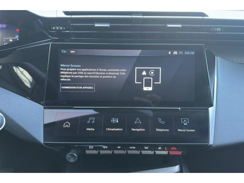 Accoudoir central AV avec rangementActive Safety Brake (freinage automatique d'urgence)Aide au stationnement ARAir conditionné automatique bi-zoneAirbags frontaux conducteur et passager adaptatifs (passager neutralisable par clé), airbags latéraux conducteur et passager AV.airbags rideaux de tête aux places AV/ARAlerte active de franchissement involontaire de ligne et bas côtéAlerte attention conducteurAllumage automatique des feux de croisementBanquette AR rabattable 40 - 20 - 40 déverrouillable depuis le coffreCeintures de sécurité AR 3 points à enrouleur (x3) avec prétensionneurs et limiteurs d'effort aux places latéralesCeintures de sécurité AV 3 points à enrouleur, avec prétensionneurs et limiteurs d'effortCommutation automatique des feux de routeDétection de sous gonflageDirection assistée électriqueEcran central tactile 10"ESP avec fonction Hill Assist (Aide au démarrage en pente)Essuie-vitre AV à déclenchement automatiqueFeux diurnes à LED sous projecteurs nouvelle signature PeugeotFixations pour 2 sièges enfants ISOFIX, aux places AR, inclus Top TetherFonction Mirror Screen (Apple CarPlay/Android Auto) sans filFrein de stationnement électriqueGarnissage tri-matières TEP/Tissu Falgo, surpiqûres BleuJantes alliage 16"Kit de dépannage de pneumatiqueLève-vitres électriques AV/ AR et séquentiels avec anti-pincementNavigation connectée avec écran central tactile 10'' et écran avec iToggles virtuels personnalisables. Reconnaissance vocale en langage naturel.Pack Drive Assist : Régulateur de vitesse adaptatif avec fonction 30 km/hPack Safety Plus : Active Safety Brake piloté par caméra et radarPare-brise teinté feuilleté acoustiquePeugeot i-Cockpit avec combiné d'instrumentation numérique 10'' personnalisablePlancher de coffre modulable 2 positionsProjecteurs Peugeot LEDRétroviseur intérieur photosensibleRétroviseurs extérieurs électriques, dégivrants et rabattables électriquement, avec répétiteurs de feux clignotants à LEDReconnaissance étendue des panneaux de signalisationSélecteur mode de conduite EcoVitres de custode AR et lunette AR chauffante temporisée surteintéesVitres latérales AR surteintéesVolant avec réglage manuel en hauteur et en profondeurVolant croûte de cuir