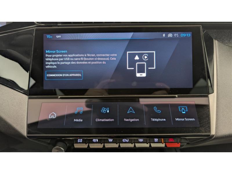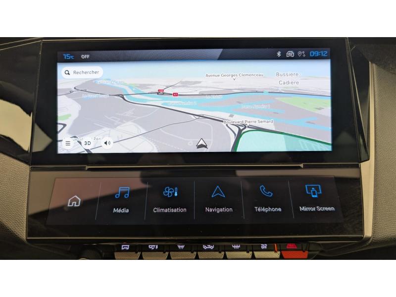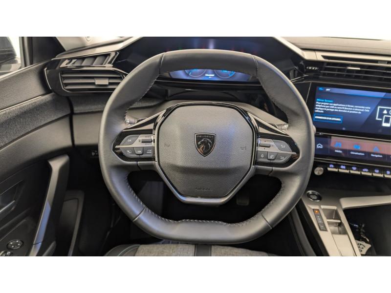 Accès et démarrage mains libresAccoudoir central avec rangement et porte gobeletActive Safety Brake piloté par caméra et radarAide au stationnement ARAir conditionné automatique bi-zoneAirbags frontaux conducteur et passager adaptatifs (passager neutralisable par clé), airbags latéraux conducteur et passager AV.airbags rideaux de tête aux places AV/ARBanquette AR rabattable 2/3-1/3Commutation automatique des feux de routeDétection de sous gonflageDirection assistée électriqueESP avec fonction Hill Assist (Aide au démarrage en pente)Essuie-vitre AV à déclenchement automatiqueFeux diurnes à LED sous projecteursFixations ISOFIX aux 2 places latérales AR (Top Tether)Fonction BluetoothFonction DAB (Radio Numérique Terrestre)Fonction Mirror Screen (Apple CarPlay / Android Auto ) sans filFrein de stationnement électriqueJantes alliage 17" SilexKit de dépannage de pneumatiqueLève-vitres AV/AR électriques et séquentiels avec antipincementNavigation connectée avec écran central tactile 10'' et i-Toggles virtuels personnalisablesPack Drive Assist : Régulateur de vitesse adaptatif avec fonction Stop&GoPack Safety Plus : Alerte attention conducteur Reconnaissance étendue des panneaux de signalisation et préconisation de vitesse Alerte active de franchissement involontaire de ligne et bas côté Freinage d'urgence automatique de jour et de nuit (caméra & raPare-brise teinté feuilleté acoustiquePeugeot i-Cockpit avec instrumentation numérique 10" personnalisableProjecteurs Peugeot LED TechnologyRéglage lombaire du siège conducteurRétroviseurs extérieurs électriques, dégivrants et rabattables électriquement, avec répétiteurs de feux clignotants à LEDReconnaissance vocale en langage naturelSélecteur mode de conduite Eco et SportSellerie Tri matières Tissus FRACTIL et BALADIN / TEPSièges AV réglables en hauteurSystème audio 6 HPVitres AV feuilletées acoustiquesVitres latérales AR et lunette AR chauffante temporisée surteintéesVolant avec réglage manuel en hauteur et en profondeurVolant croûte de cuir