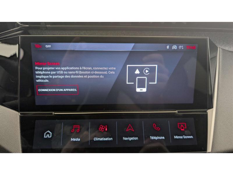 2 prises USB-C à l'AR2 prises USB-C à l'AV2 télécommandes 3 boutons4 poignées de maintienAccès et démarrage mains libresAccoudoir central avec rangement et porte gobeletActive Safety Brake piloté par caméra et radarAide au stationnement ARAir conditionné automatique bi-zoneAirbags frontaux conducteur et passager adaptatifs (passager neutralisable par clé), airbags latéraux conducteur et passager AV.airbags rideaux de tête aux places AV/ARBanquette AR rabattable 2/3-1/3Calandre avec grille chroméeCommutation automatique des feux de routeCoques de rétroviseurs extérieurs Noir BrillantDécors intérieurs textiles (planche de bord, panneaux de porte)Détection de sous gonflageDirection assistée électriqueESP avec fonction Hill Assist (Aide au démarrage en pente)Essuie-vitre AV à déclenchement automatiqueFeux diurnes à LED sous projecteursFixations ISOFIX aux 2 places latérales AR (Top Tether)Fonction BluetoothFonction DAB (Radio Numérique Terrestre)Fonction Mirror Screen (Apple CarPlay / Android Auto ) sans filFrein de stationnement électriqueJantes alliage 17" SilexLécheurs de vitres Noir BrillantLève-vitres AV/AR électriques et séquentiels avec antipincementNavigation connectée avec écran central tactile 10'' et i-Toggles virtuels personnalisablesPack Drive Assist - Régulateur de vitesse adaptatif avec fonction Stop&Go : Régulateur de vitesse adaptatif avec fonction Stop&GoPack Safety Plus - Freinage d'urgence automatique (Active Safety Brake ) avec alerte risque de collision - Freinage d'urgence automatique de jour et de nuit (caméra & radar) - Alerte active de franchissement involontaire de ligne et bas côté - Reconnaissance &Pare-brise teinté feuilleté acoustiquePeugeot i-Cockpit avec instrumentation numérique 10" personnalisablePrise 12 V à l'AVProjecteurs Peugeot LED TechnologyRéglage lombaire du siège conducteurRétroviseurs extérieurs électriques, dégivrants et rabattables électriquement, avec répétiteurs de feux clignotants à LEDReconnaissance vocale en langage naturelSélecteur mode de conduite Eco et SportSièges AV réglables en hauteurSièges dynamiques avec appuis tête AV deux voiesSystème audio 6 HPSystème stop & go couplé avec l'assistance au positionnement sur la voieVisioPark 1 (caméra de recul)Vitres latérales AR et lunette AR chauffante temporisée surteintéesVolant avec réglage manuel en hauteur et en profondeurVolant croûte de cuir