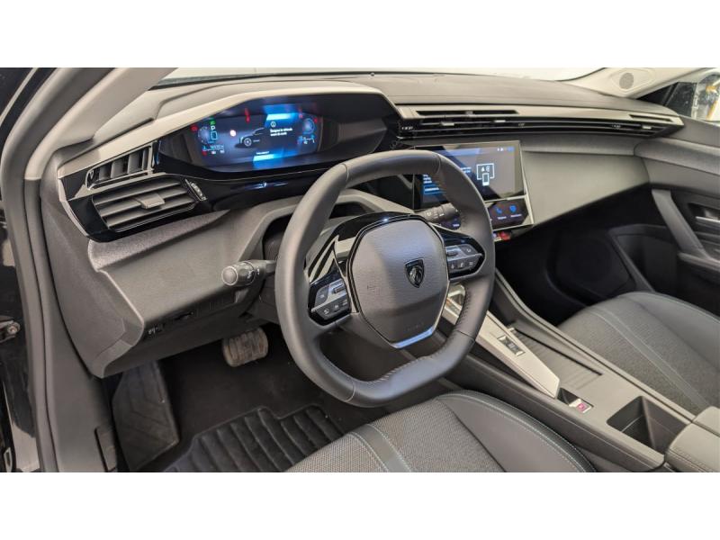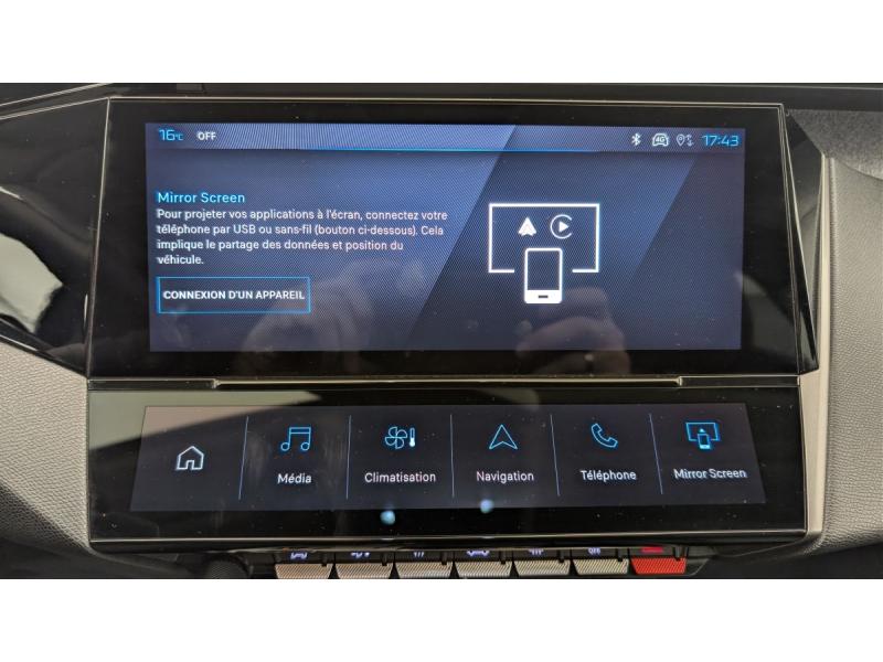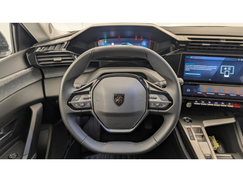Accès et démarrage mains libresAccoudoir central avec rangement et porte gobeletAide au stationnement ARAir conditionné automatique bi-zoneAirbags frontaux conducteur et passager adaptatifs (passager neutralisable par clé), airbags latéraux conducteur et passager AV.airbags rideaux de tête aux places AV/ARBanquette AR rabattable 2/3-1/3Commutation automatique des feux de routeDécors intérieurs textiles (planche de bord, panneaux de porte)Détection de sous gonflageDirection assistée électriqueEcran central tactile 10"ESP avec fonction Hill Assist (Aide au démarrage en pente)Essuie-vitre AV à déclenchement automatiqueFeux diurnes à LED sous projecteursFixations ISOFIX aux 2 places latérales AR (Top Tether)Fonction BluetoothFonction DAB (Radio Numérique Terrestre)Fonction Mirror Screen (Apple CarPlay / Android Auto ) sans filFrein de stationnement électriqueJantes alliage 17" SilexLève-vitres AV/AR électriques et séquentiels avec antipincementPack Drive Assist : Régulateur de vitesse adaptatif avec fonction Stop&GoPack Safety Plus : Alerte attention conducteur Reconnaissance étendue des panneaux de signalisation et préconisation de vitesse Alerte active de franchissement involontaire de ligne et bas côté Freinage d'urgence automatique de jour et de nuit (caméra & raPare-brise teinté feuilleté acoustiquePeugeot i-Cockpit avec instrumentation numérique 10" personnalisableProjecteurs Peugeot LED TechnologyRéglage lombaire du siège conducteurRétroviseur intérieur photosensibleRétroviseurs extérieurs électriques, dégivrants et rabattables électriquement, avec répétiteurs de feux clignotants à LEDSélecteur mode de conduite Eco et SportSellerie tri-matières TEP / Tissu Falgo, surpiqûres BleuSièges AV réglables en hauteurSystème audio 6 HPVéhicule livré sans kit de dépannage ni roue de secoursVitres latérales AR et lunette AR chauffante temporisée surteintéesVolant croûte de cuir