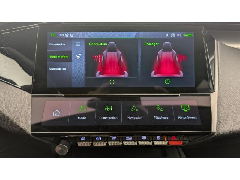 Accès et démarrage mains libresAccoudoir central avec rangement et porte gobeletAide au stationnement ARAide au stationnement AVAir conditionné automatique bi-zoneAirbags frontaux conducteur et passager adaptatifs (passager neutralisable par clé), airbags latéraux conducteur et passager AV.airbags rideaux de tête aux places AV/ARBanquette AR rabattable 2/3-1/3Commutation automatique des feux de routeDétection de sous gonflageDirection assistée électriqueESP avec fonction Hill Assist (Aide au démarrage en pente)Essuie-vitre AV à déclenchement automatiqueFeux AR spécifiques avec allumage dynamique griffe à griffeFeux diurnes à LED sous projecteursFixations ISOFIX aux 2 places latérales AR (Top Tether)Fonction BluetoothFonction DAB (Radio Numérique Terrestre)Fonction Mirror Screen (Apple CarPlay / Android Auto ) sans filFrein de stationnement électriqueJantes alliage 19" diamantées GRAPHITELève-vitres AV/AR électriques et séquentiels avec antipincementNavigation connectée avec écran central tactile 10'' et i-Toggles virtuels personnalisablesPédalier Sport et repose pied en aluminiumPack Drive Assist Plus : Régulateur de vitesse adaptatif avec fonction Stop&Go Conduite semi-autonome (niveau 2) Aide au maintien de la position dans la voiePack Safety Plus : Alerte attention conducteur Reconnaissance étendue des panneaux de signalisation et préconisation de vitesse Alerte active de franchissement involontaire de ligne et bas côté Freinage d'urgence automatique de jour et de nuit (caméra & raPare-brise teinté feuilleté acoustiquePeugeot Connect SOSPeugeot i-Cockpit avec instrumentation numérique 10" personnalisableProjecteurs Peugeot Matrix LED Technology Éclairage adaptatif en fonction des conditions extérieures et de la circulationRéglage lombaire du siège conducteurRétroviseur intérieur photosensibleRétroviseurs extérieurs électriques, dégivrants et rabattables électriquement, avec répétiteurs de feux clignotants à LEDSélecteur mode de conduite Eco et SportSeuils de portes AV aluminiumSièges AV réglables en hauteurSystème audio 6 HPVitres AV feuilletées acoustiquesVitres latérales AR et lunette AR chauffante temporisée surteintéesVolant chauffantVolant cuir perforéVolet motorisé avec accès bras chargés